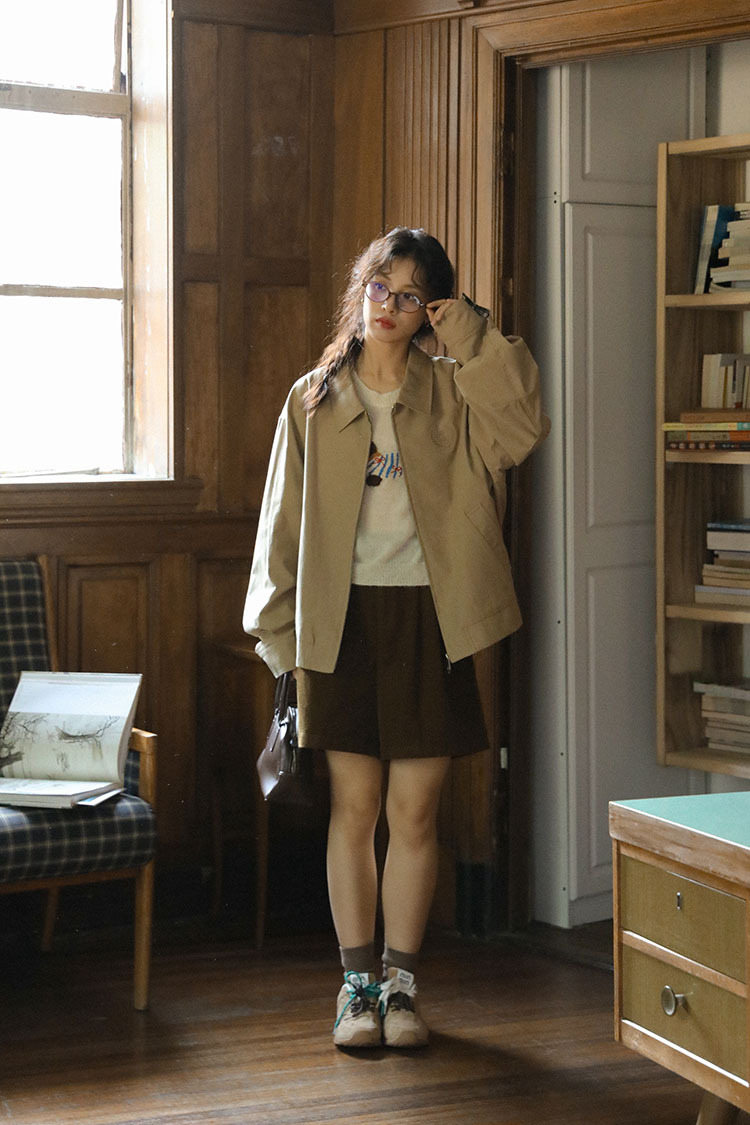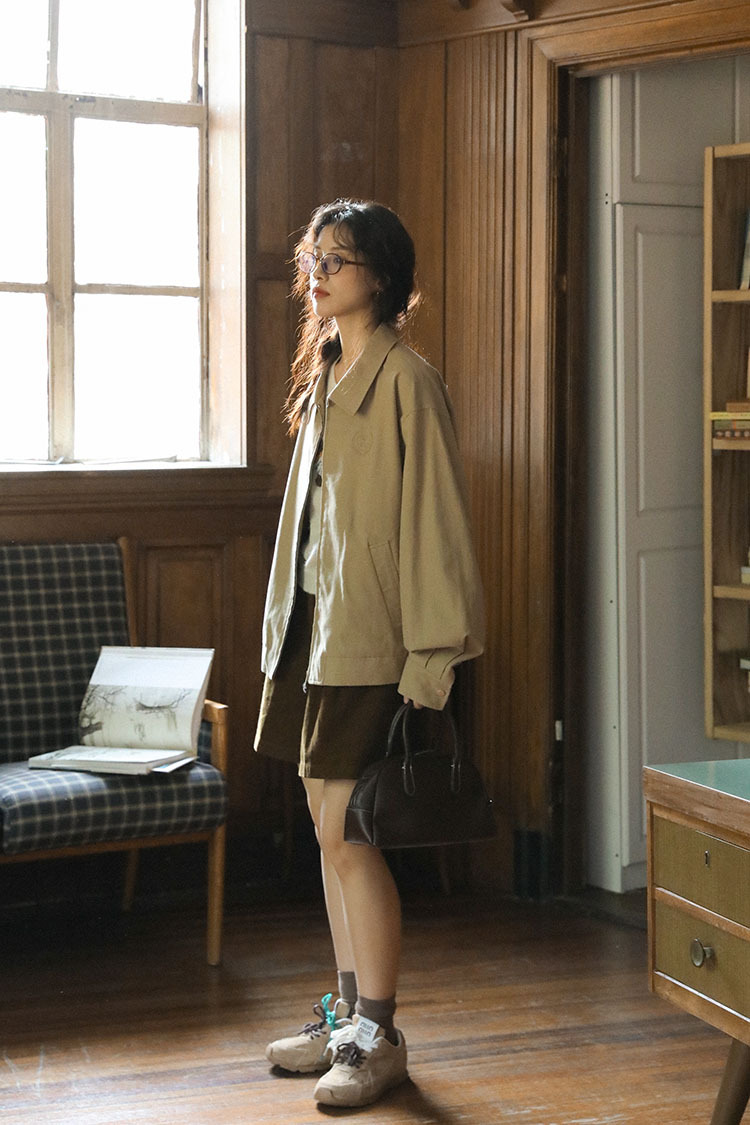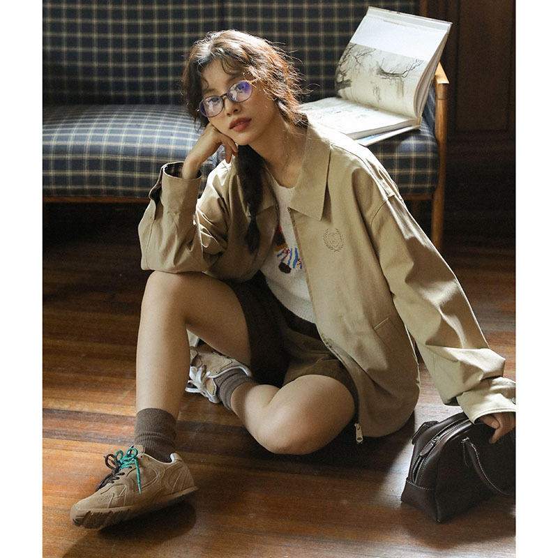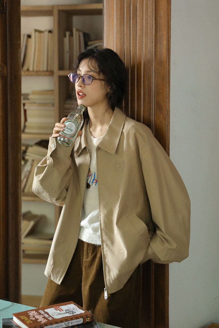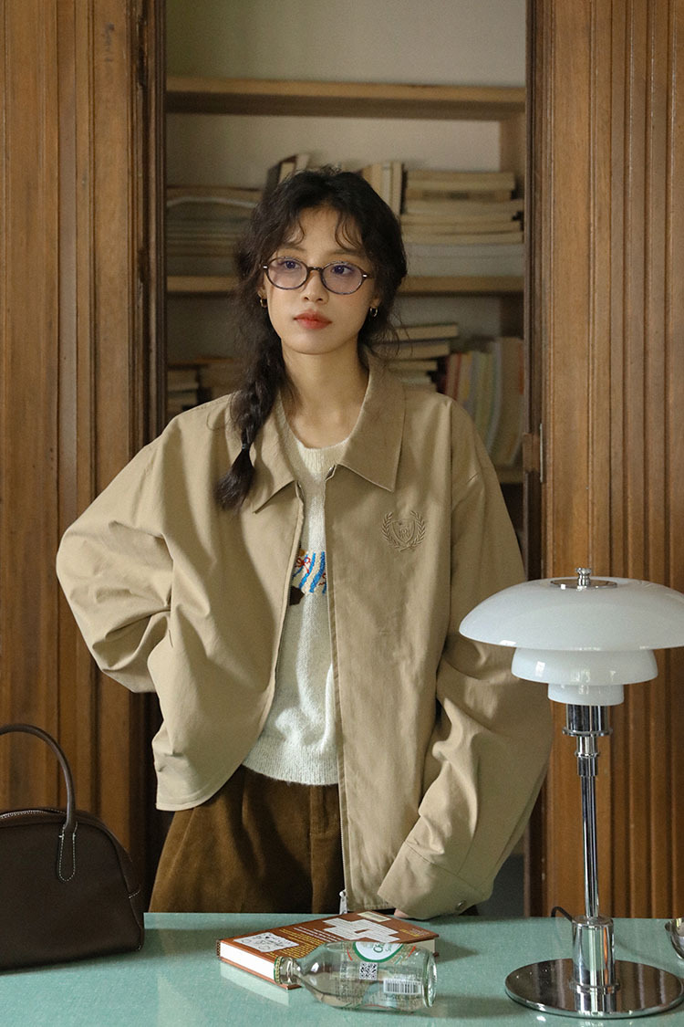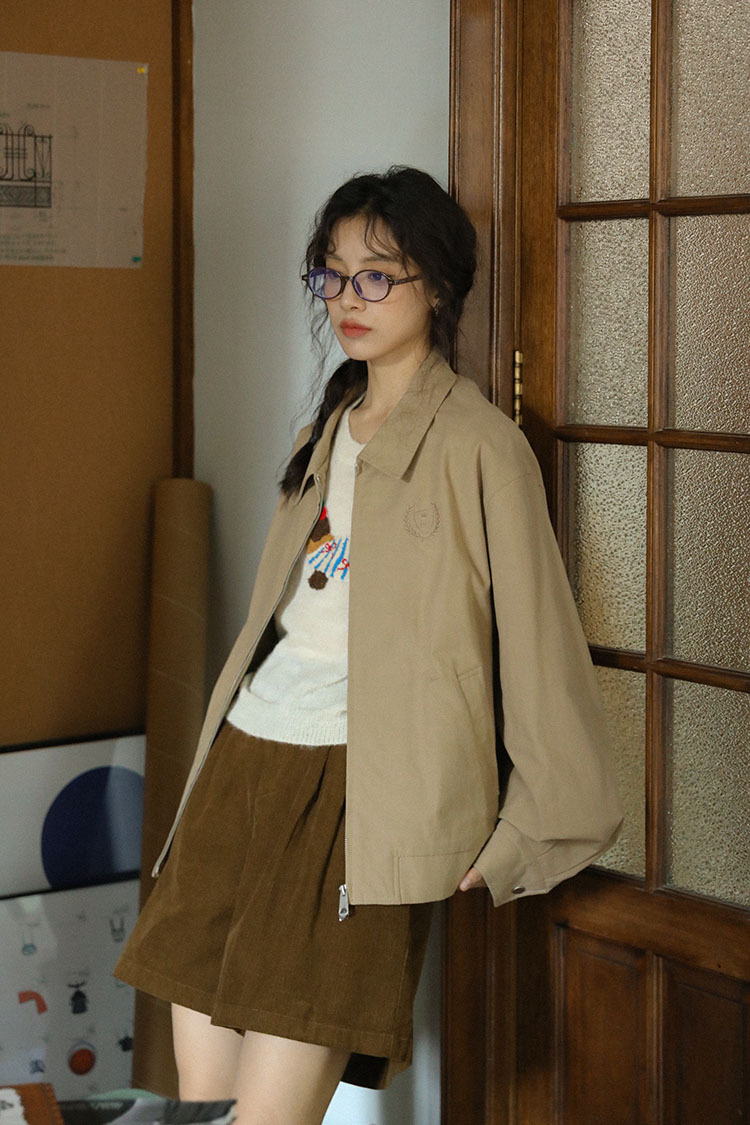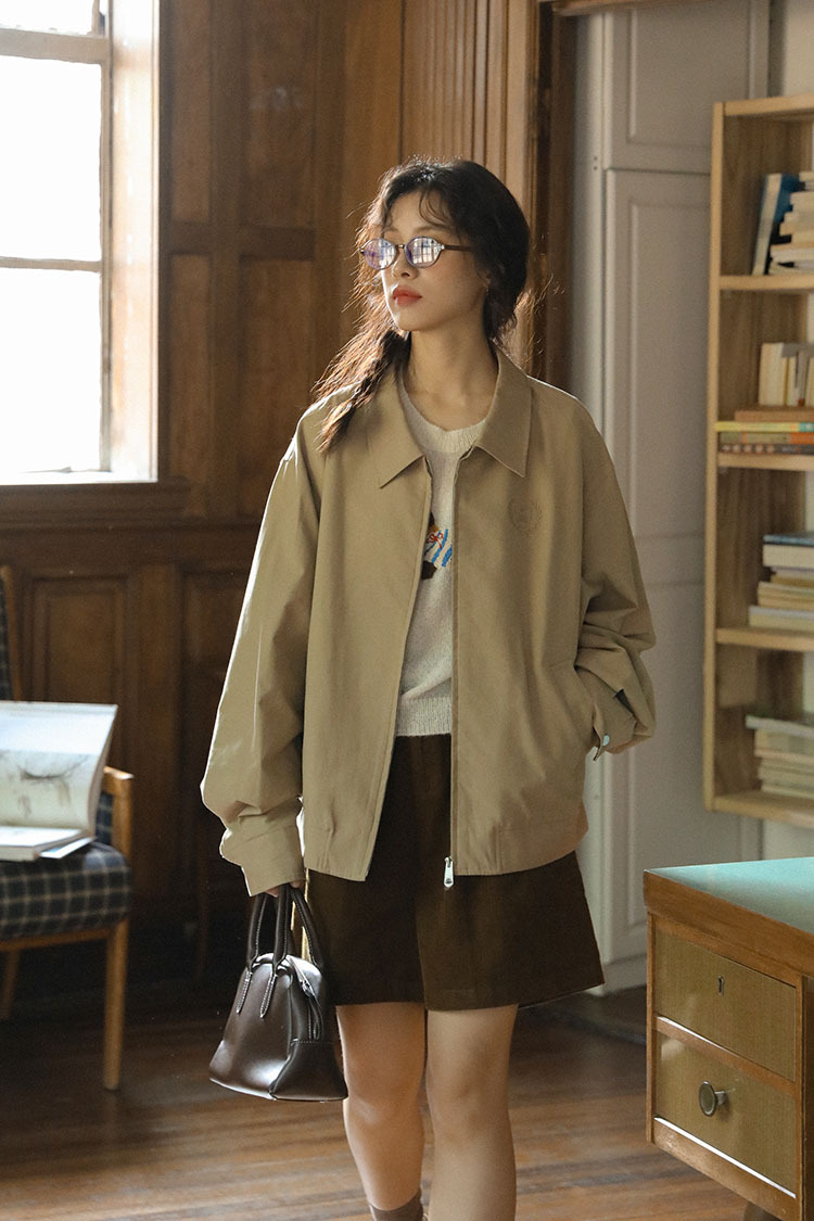 2025년 가을 일본 복고풍 문학 슬림 다용도 캐주얼 재킷 탑 여성용 작은 작업복 재킷의 실제 사진스토어 가기