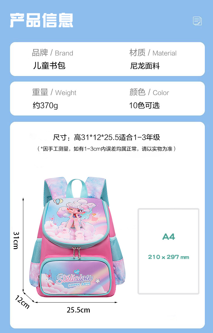 어린이 스쿨백 신형 대용량 유치원 한국식 만화 책가방 초등학생용 교차 경량형 스쿨백스토어 가기