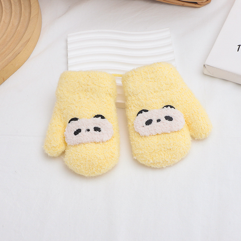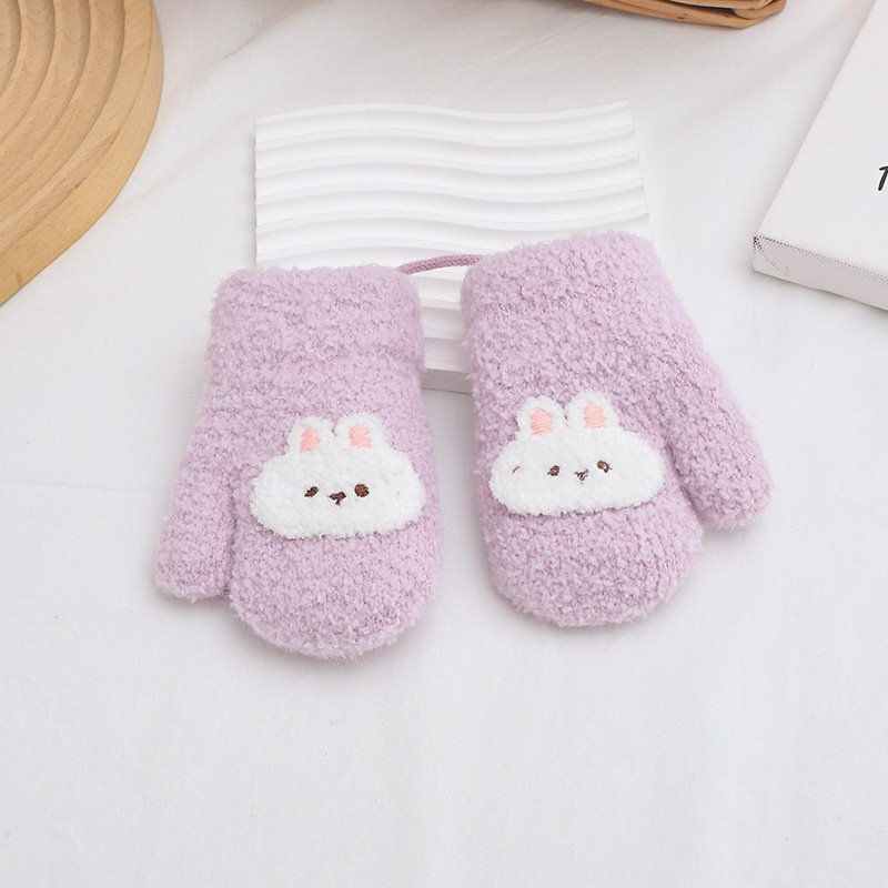 만화 귀여운 아기 장갑 겨울 감기 따뜻한 더블 레이어 기모 두꺼운 한국 패션 솔리드 컬러 핑거 백 커버