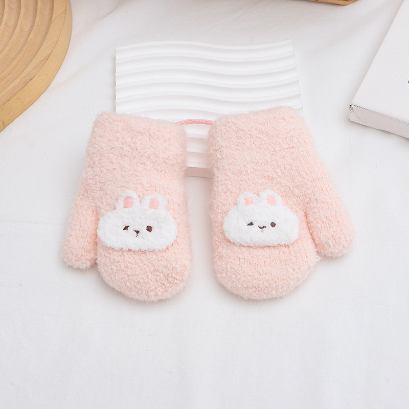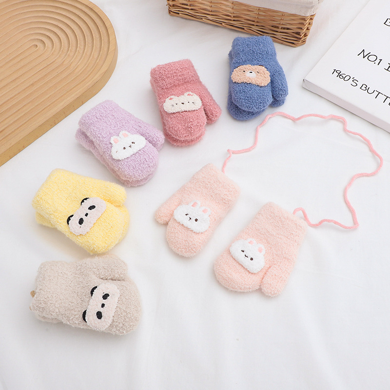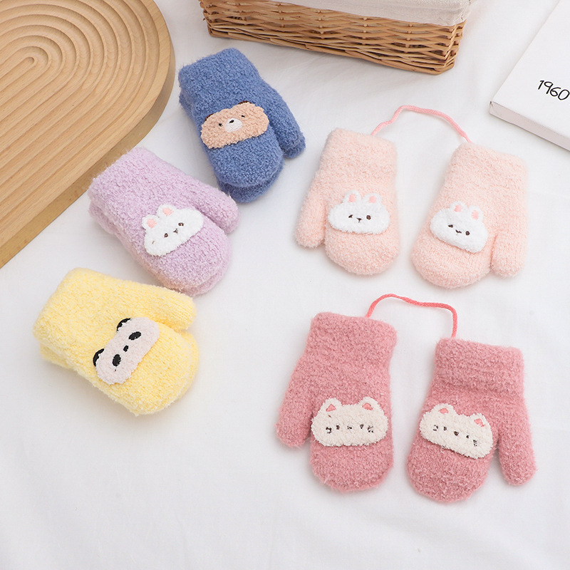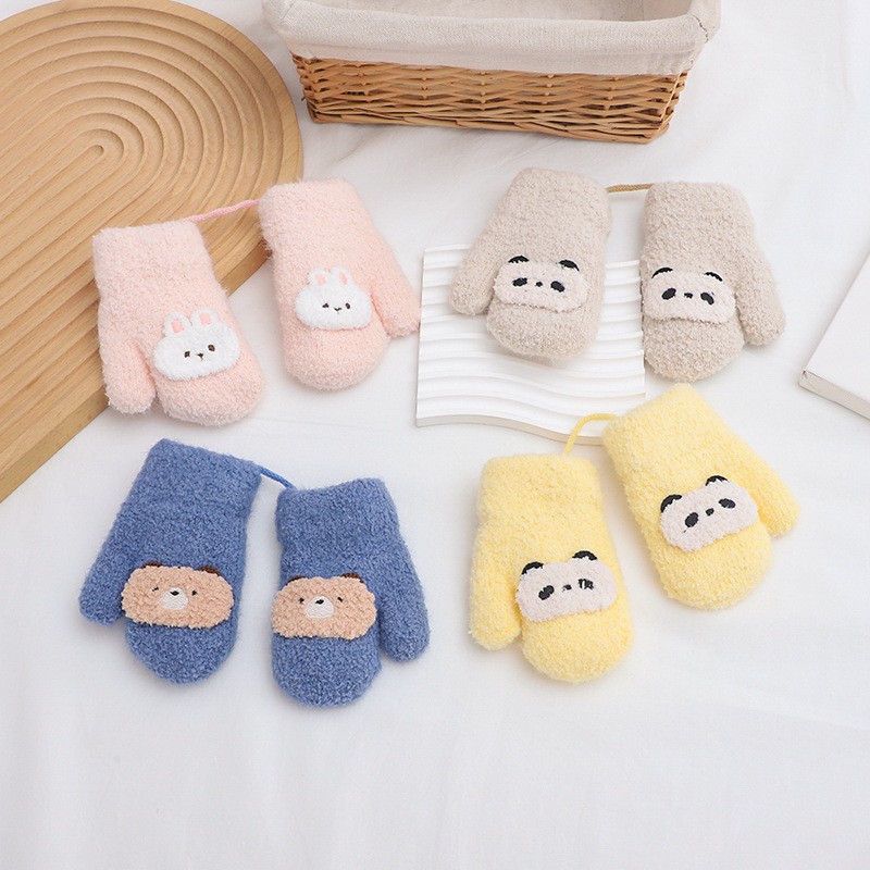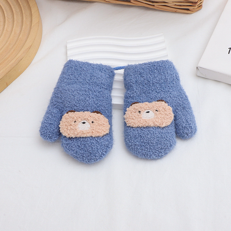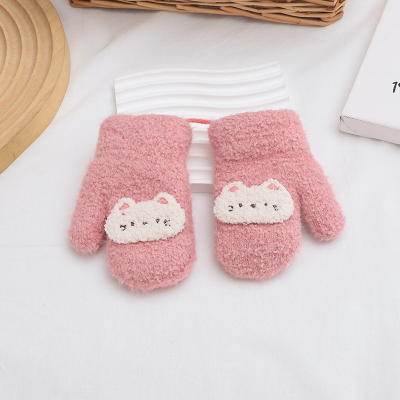 만화 귀여운 아기 장갑 겨울 감기 따뜻한 더블 레이어 기모 두꺼운 한국 패션 솔리드 컬러 핑거 백 커버스토어 가기