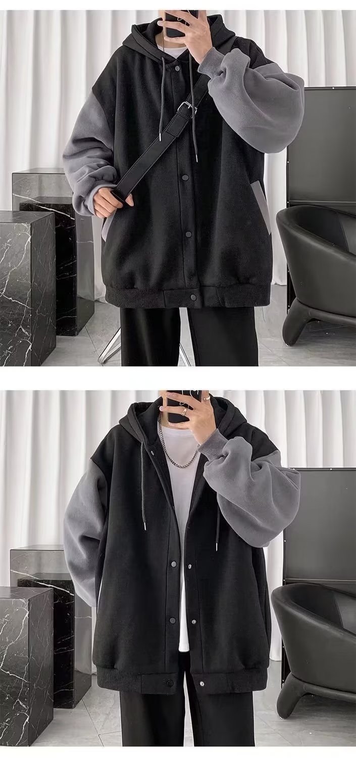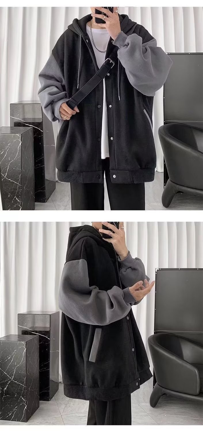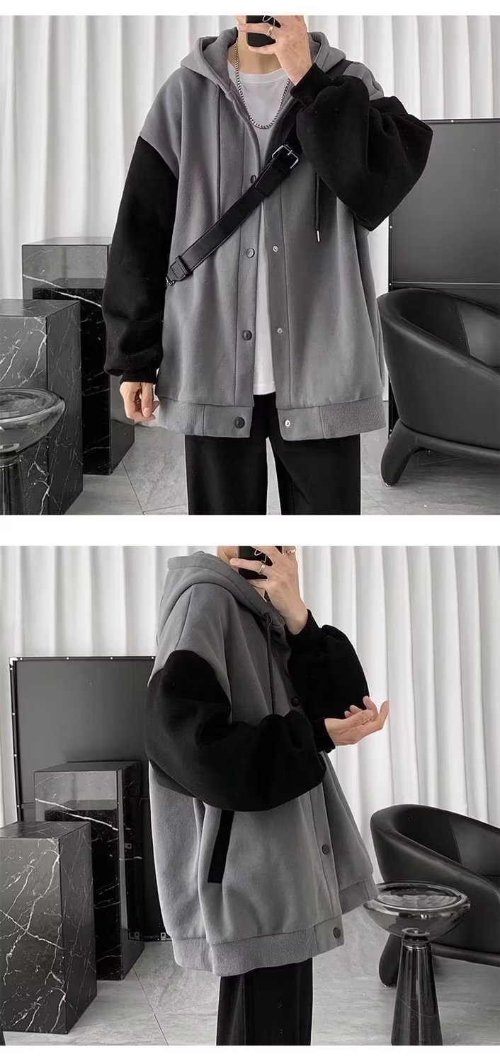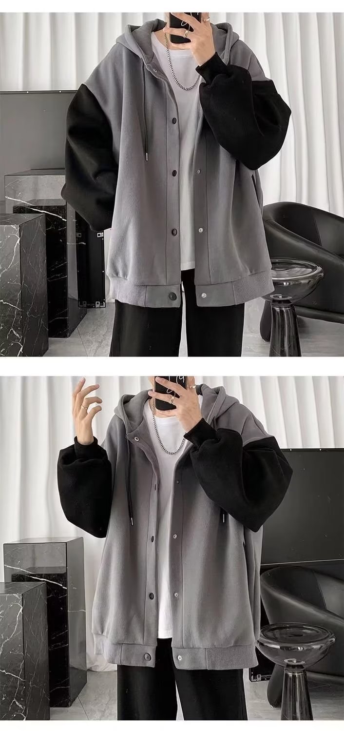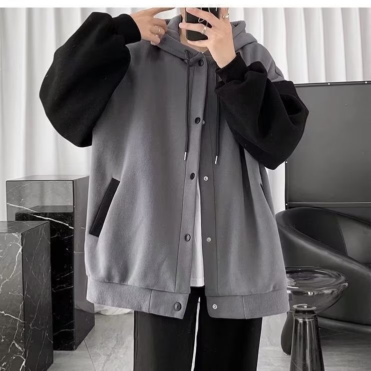 홍콩 스타일 올 매치 카디건 재킷 남자 2024 가을 새 한국 스타일 유행 바느질 느슨한 후드 스웨터 커플 옷스토어 가기