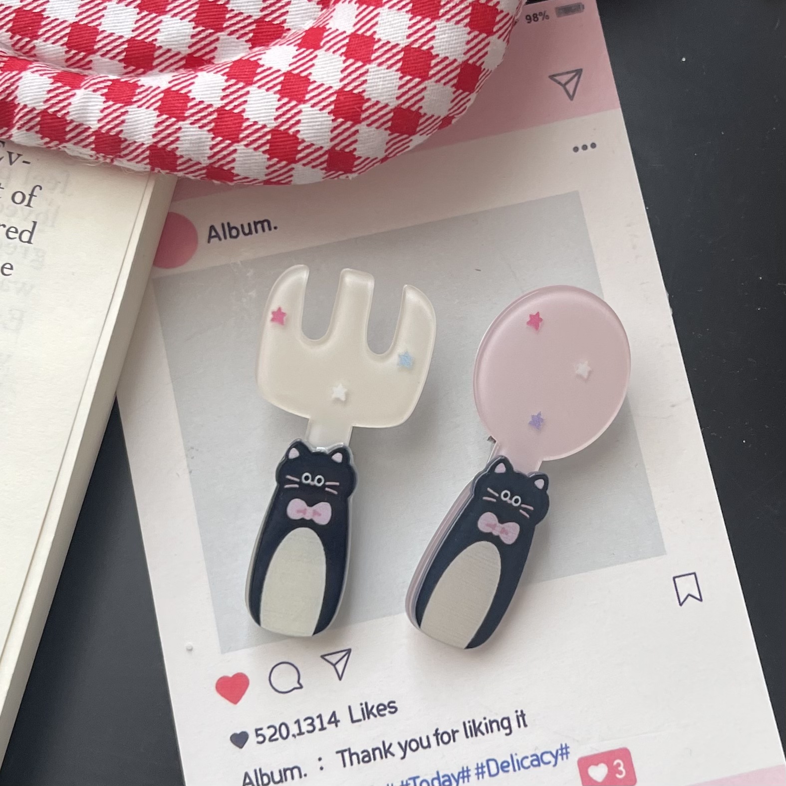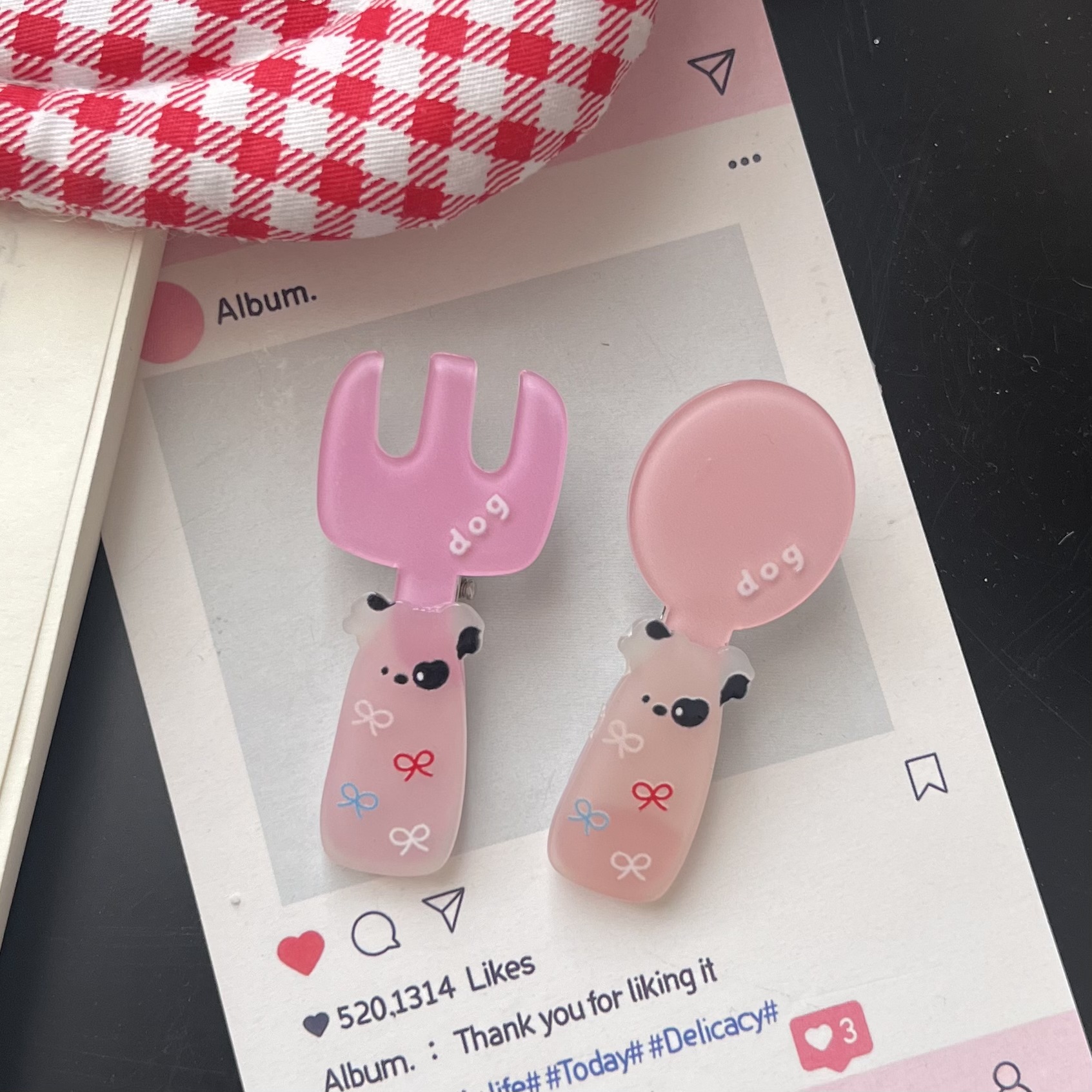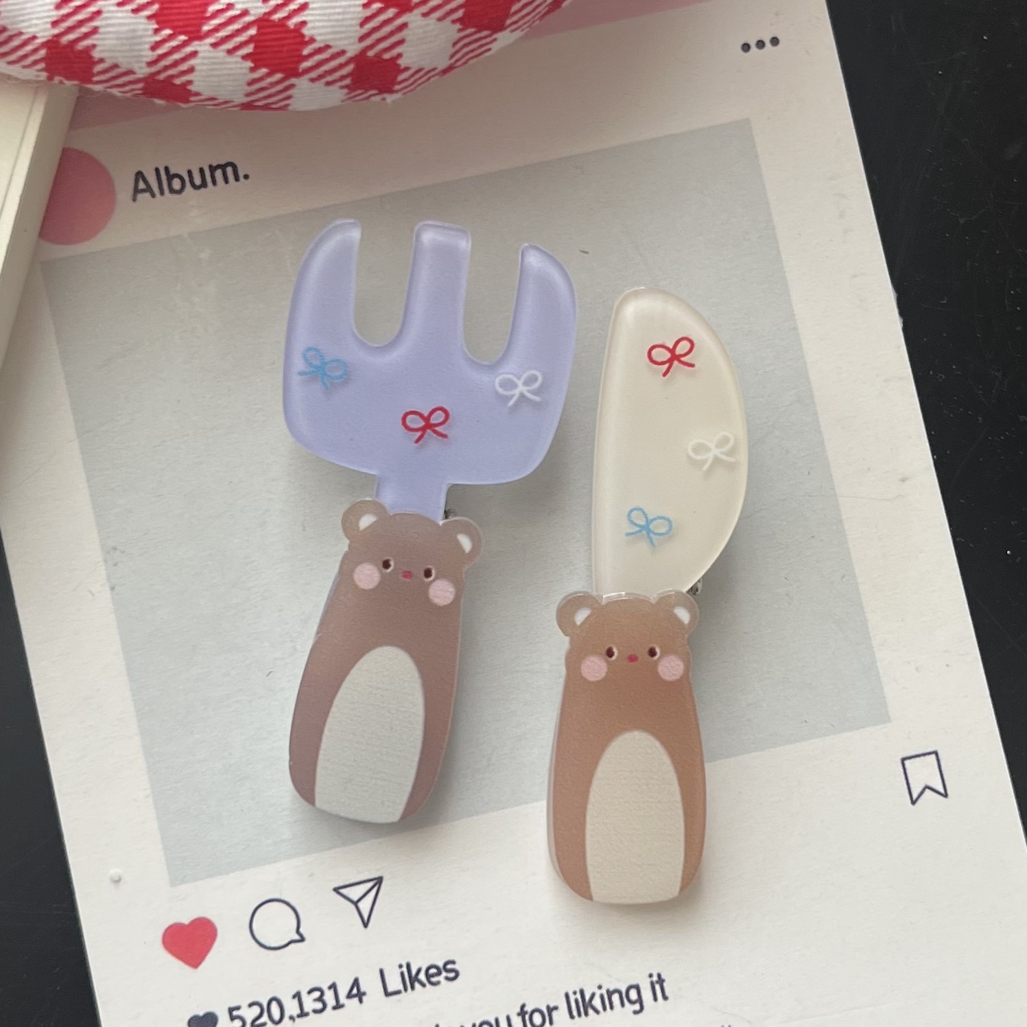[투피스 세트] 곰 키튼 포크 스푼 식기 아크릴 헤어핀 세트 인 소녀 올매치 헤어핀스토어 가기