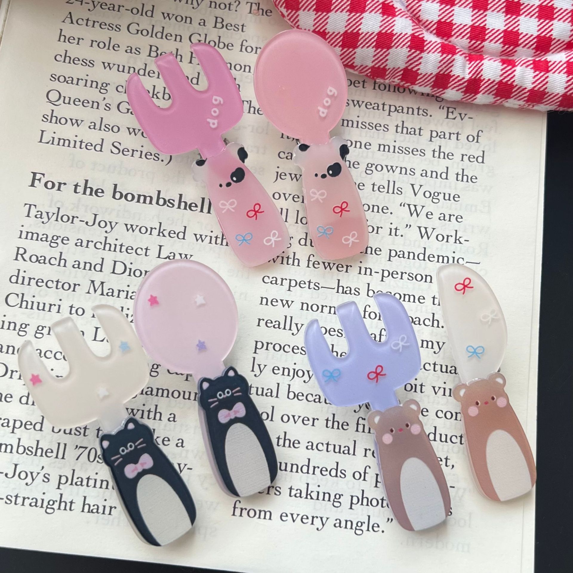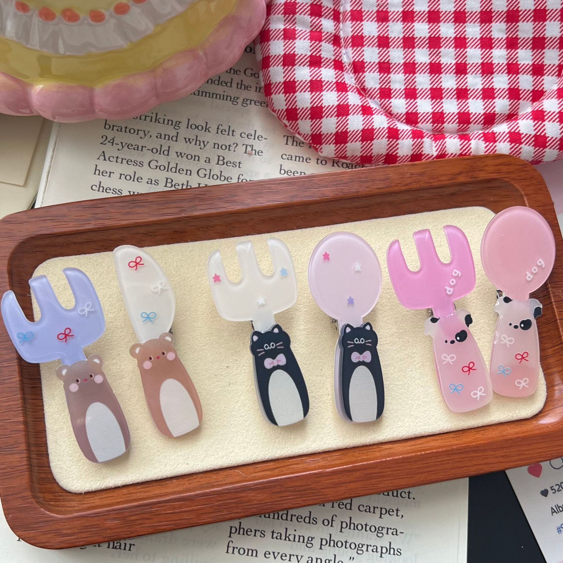 [투피스 세트] 곰 키튼 포크 스푼 식기 아크릴 헤어핀 세트 인 소녀 올매치 헤어핀