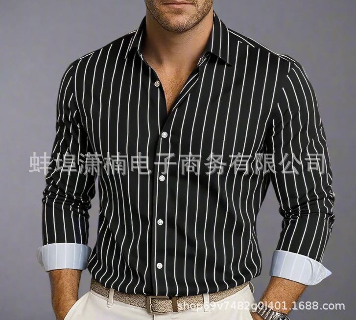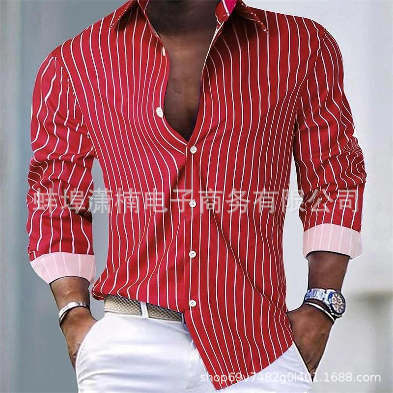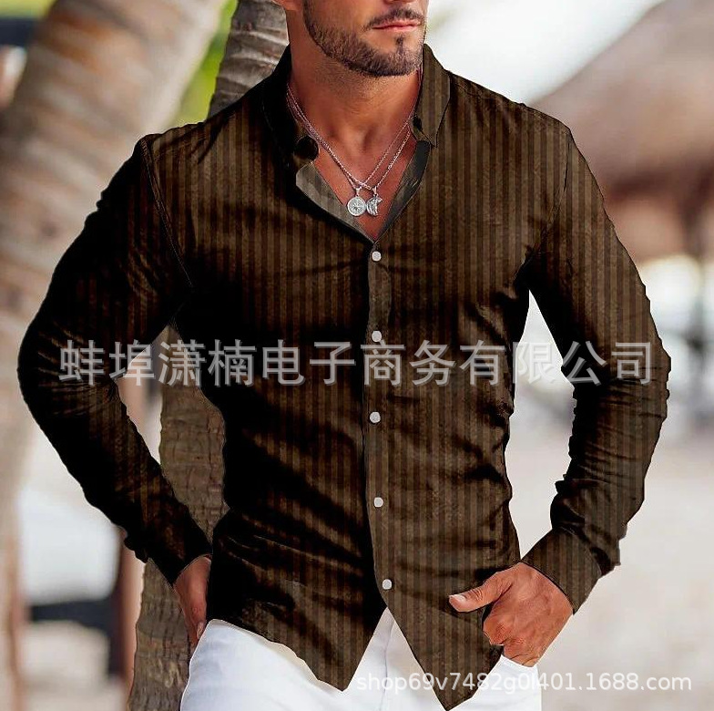 아마존 독립 역 유럽과 미국의 대외 무역 국경 가을과 겨울 남자 줄무늬 옷깃 카디건 폭발 스트라이프 긴 소매 셔츠
