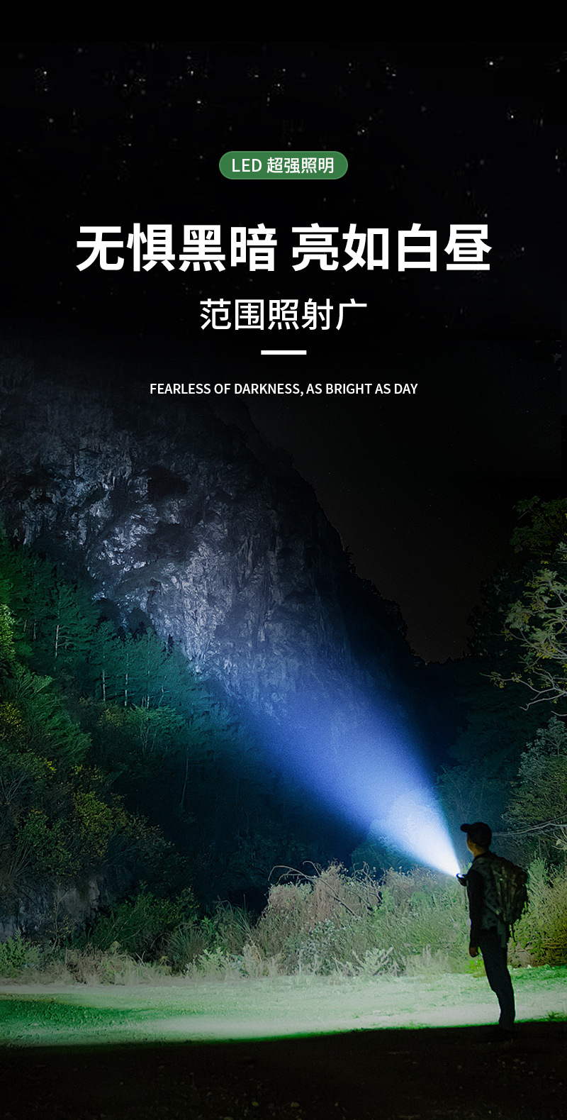 LED 손전등 충전식 휴대용 장거리 캠핑용 집중광 소방 비상등 야외 휴대용 강력 조명등스토어 가기