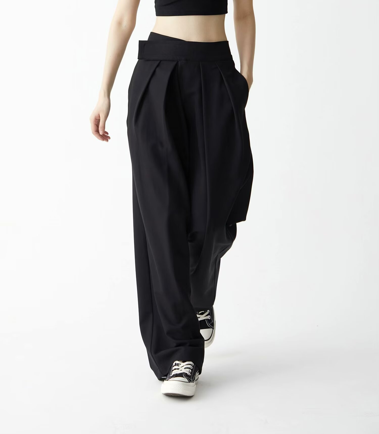 벨크로 디자인 센스 높은 허리 세트 바지 남자 검은 사무라이 느슨한 작업 바지 Yohji Yamamoto 넓은 다리 세트 트렌디 한 바지스토어 가기