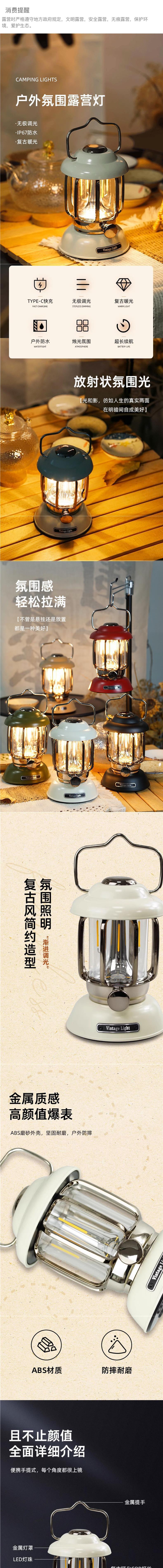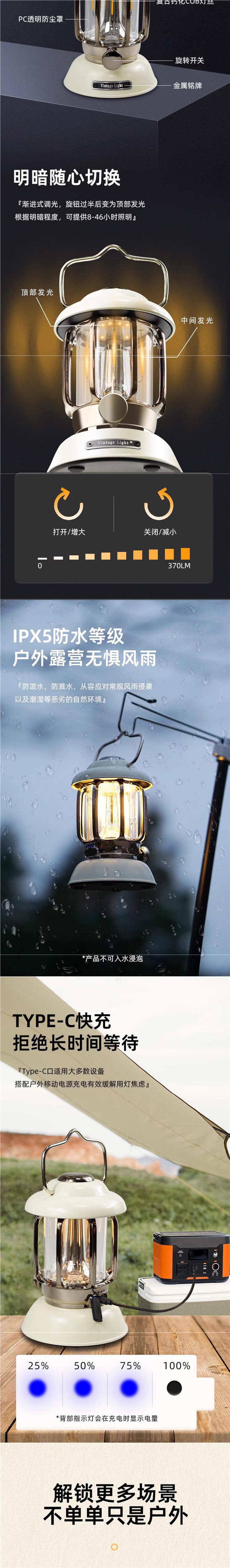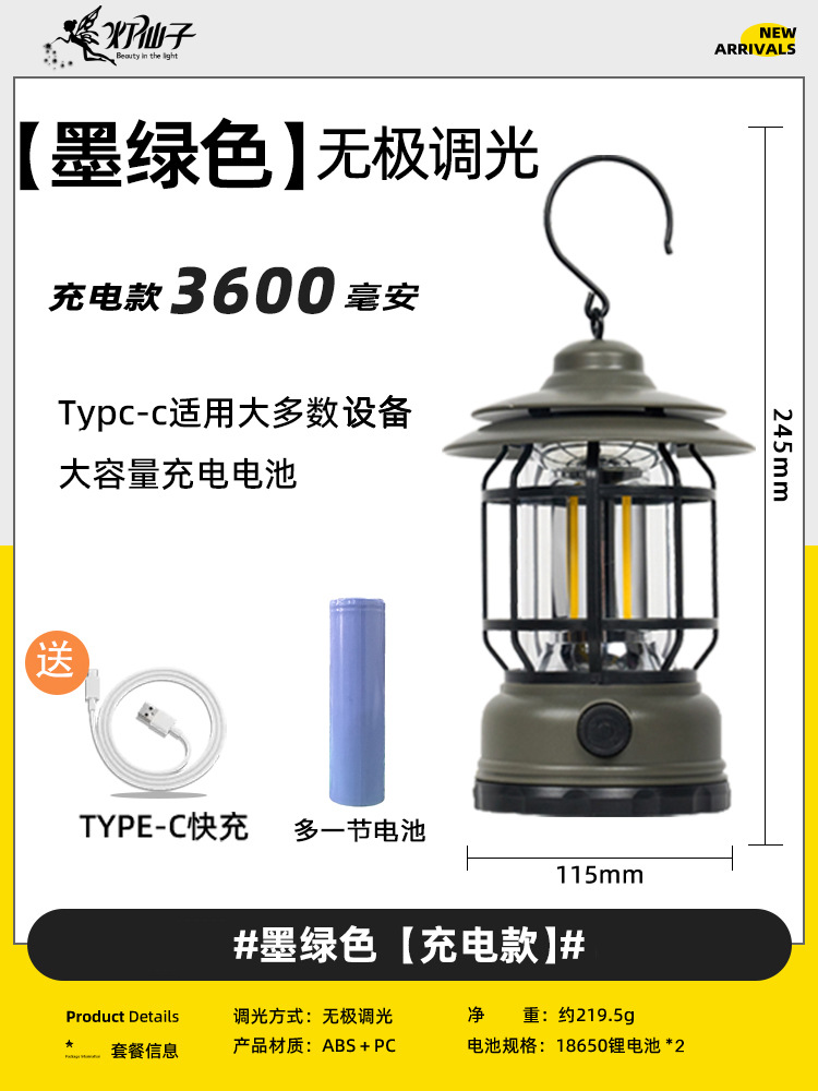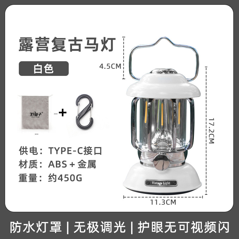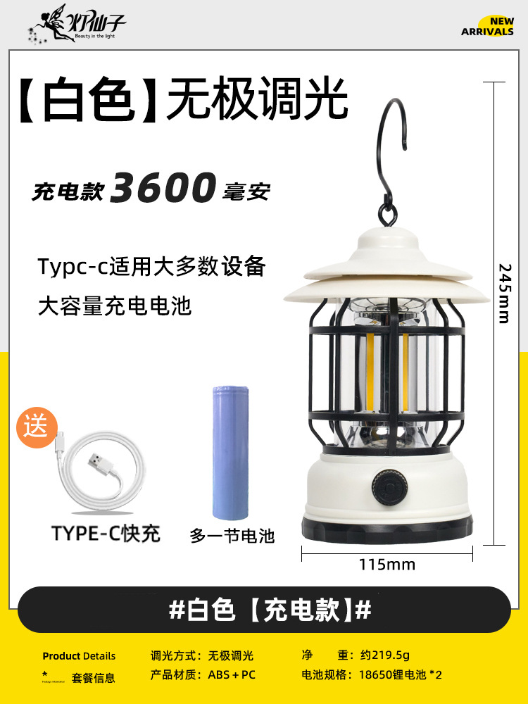 • 캠핑 레트로 램프 - 아이보리 화이트 [충전식 버전] 긴 배터리 수명/무단계 디밍