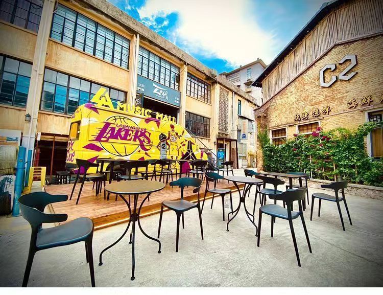 야외 테이블과 안뜰 외부 의자 플라스틱 야외 밀크 티 샵 야외 발코니 레저 3 피스 현대적인 간단한 테이블과 의자스토어 가기