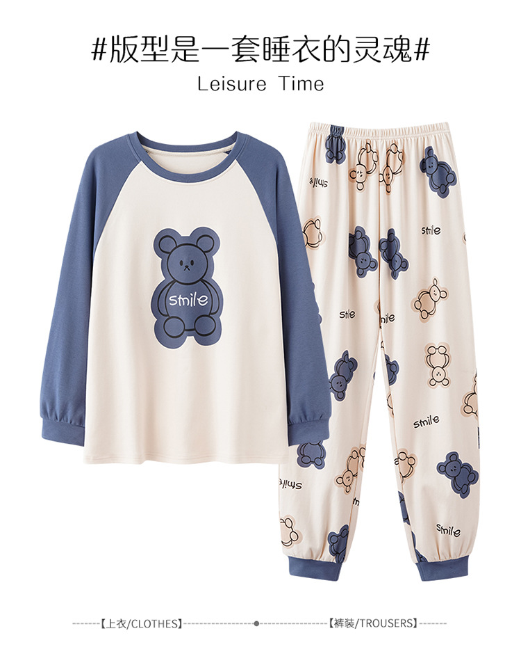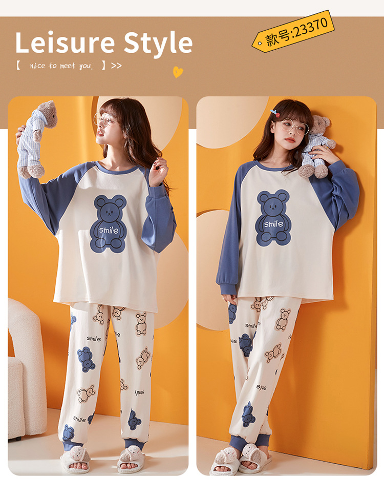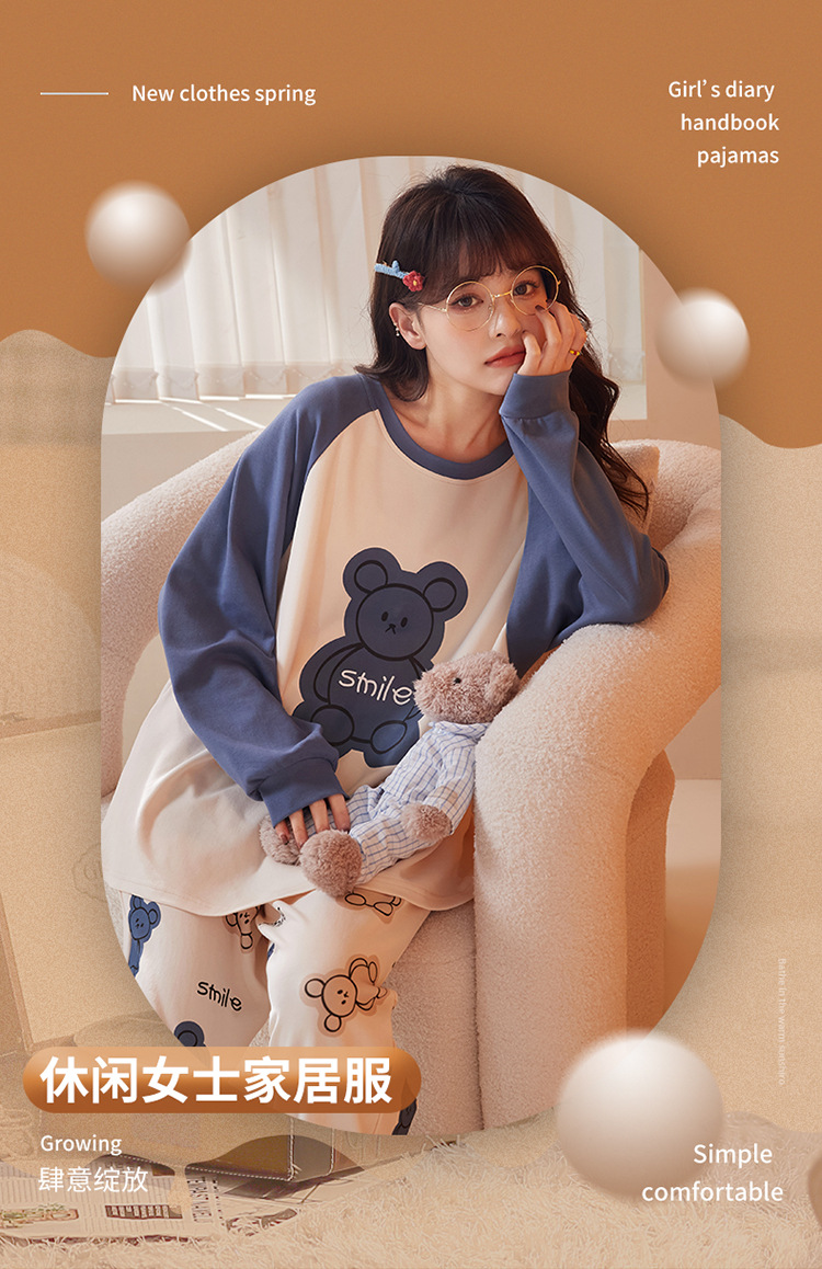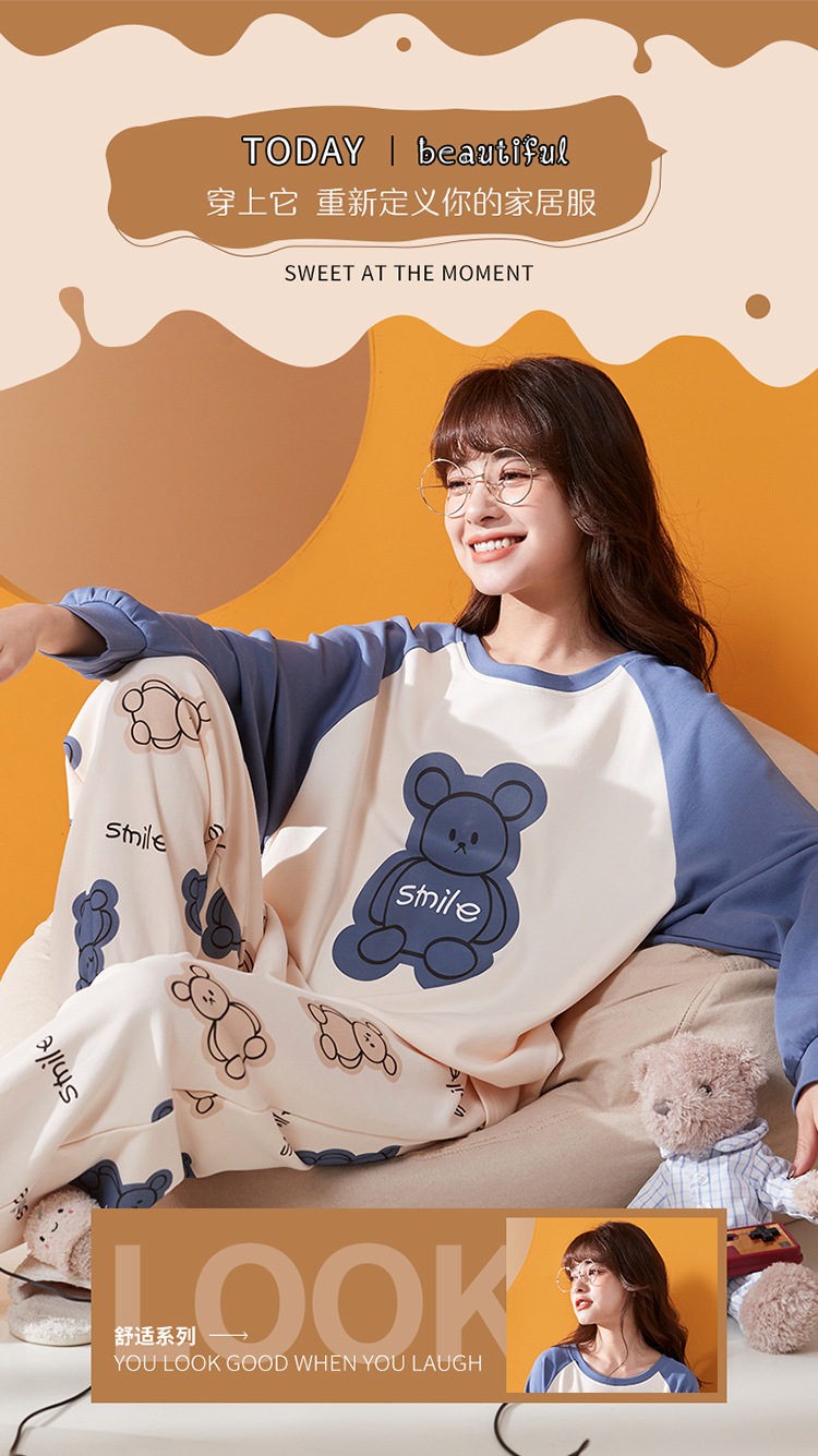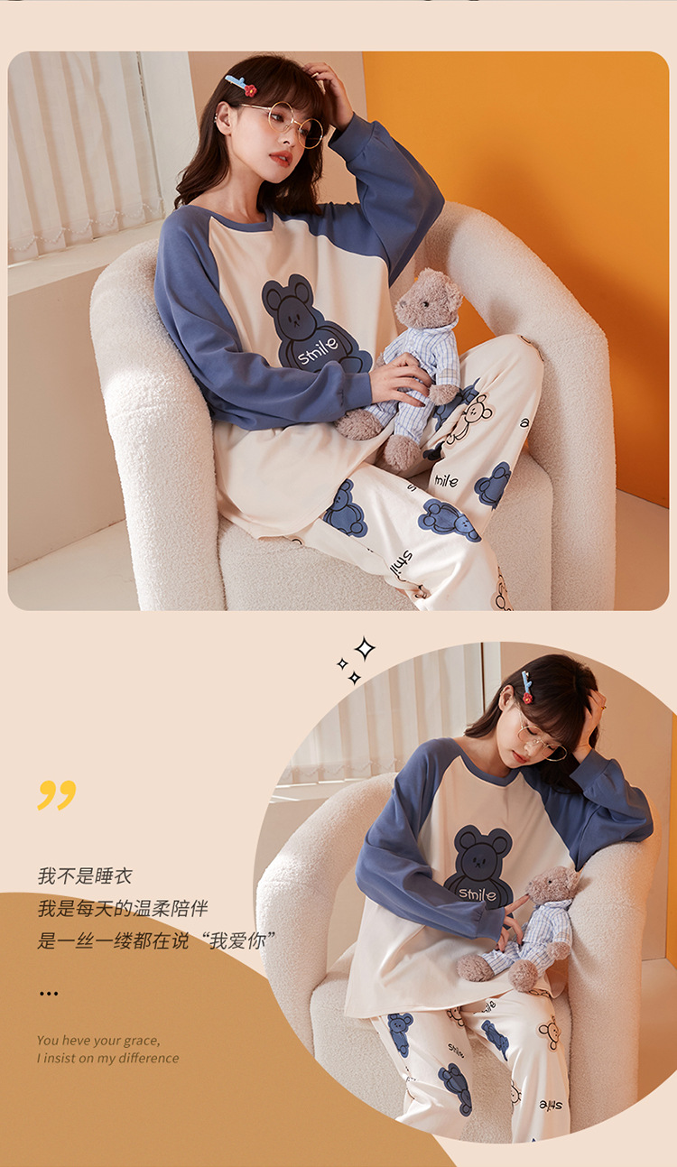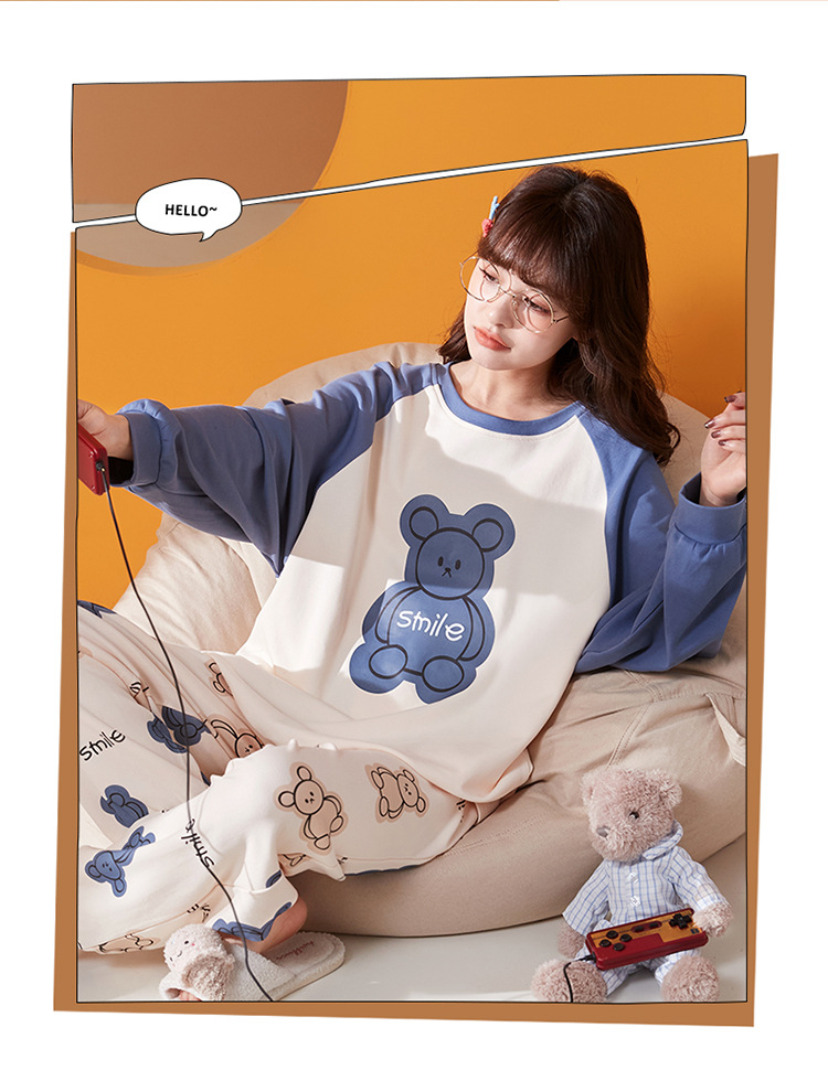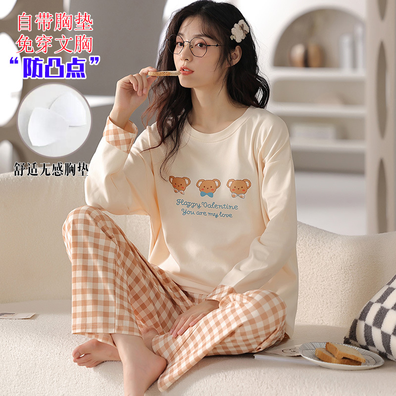 가슴 패드와 국경 간 파자마 여성의 봄과 가을 긴 소매 바지 달콤한 만화 홈 옷 느슨한 편안한 세트 외부 착용스토어 가기