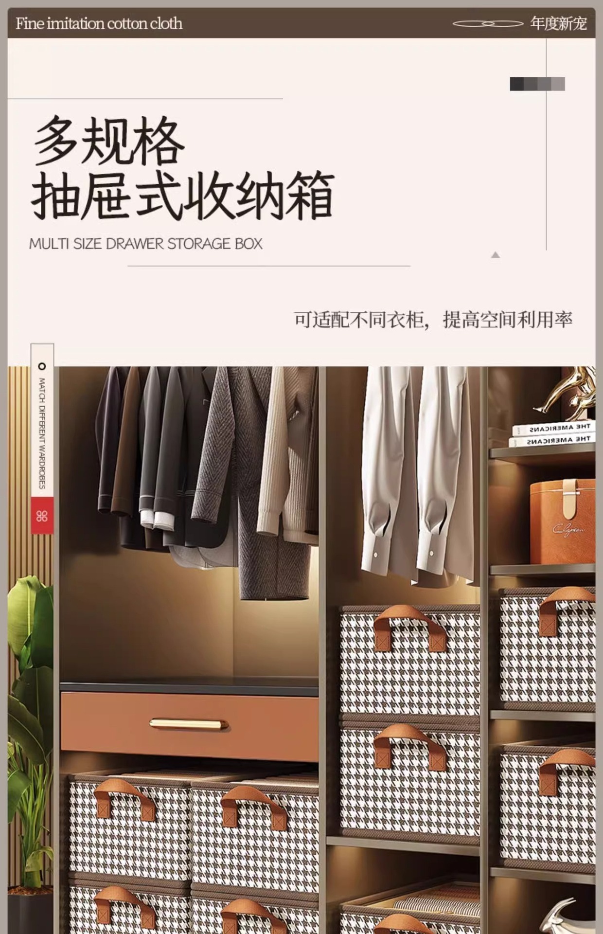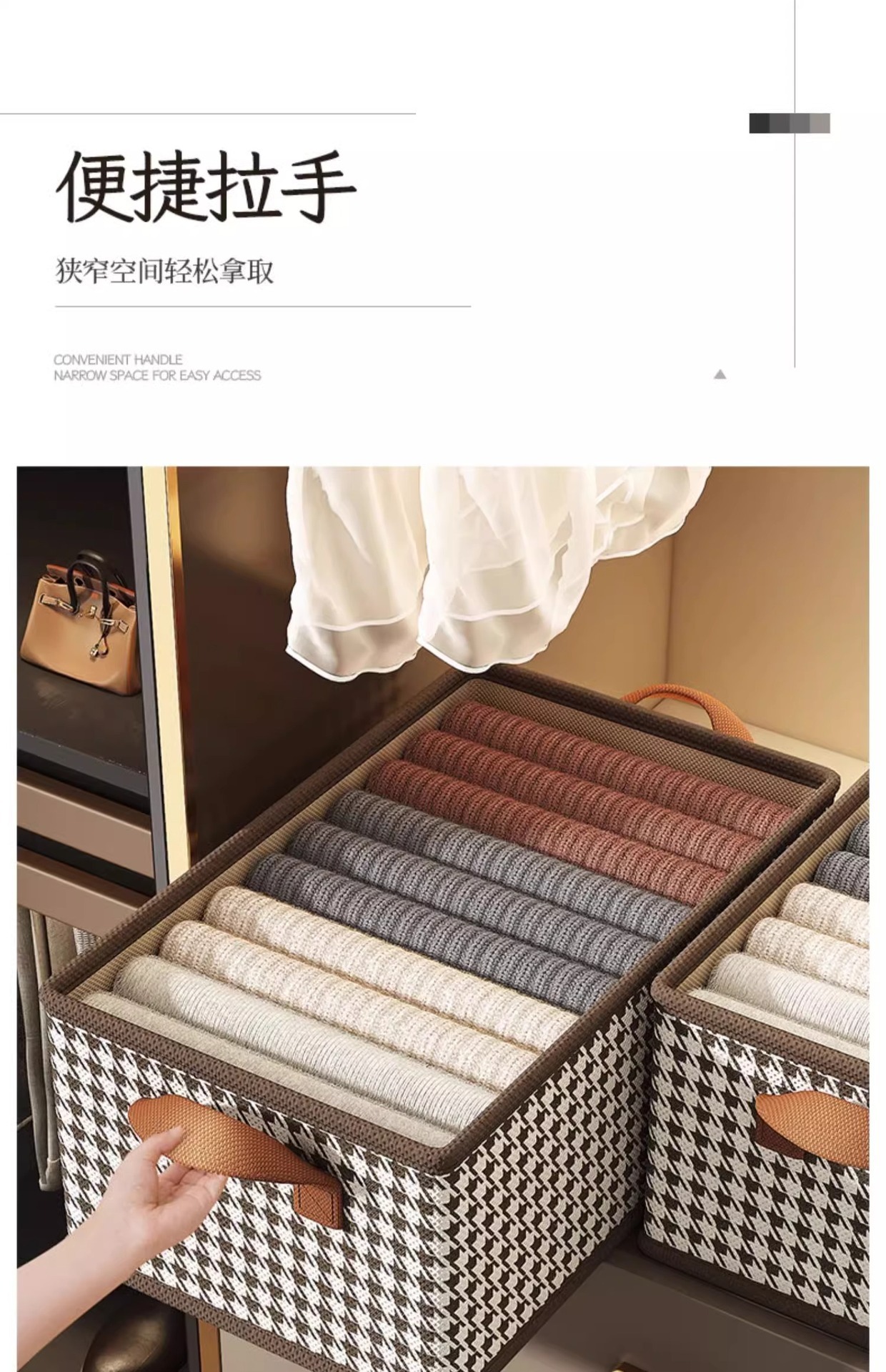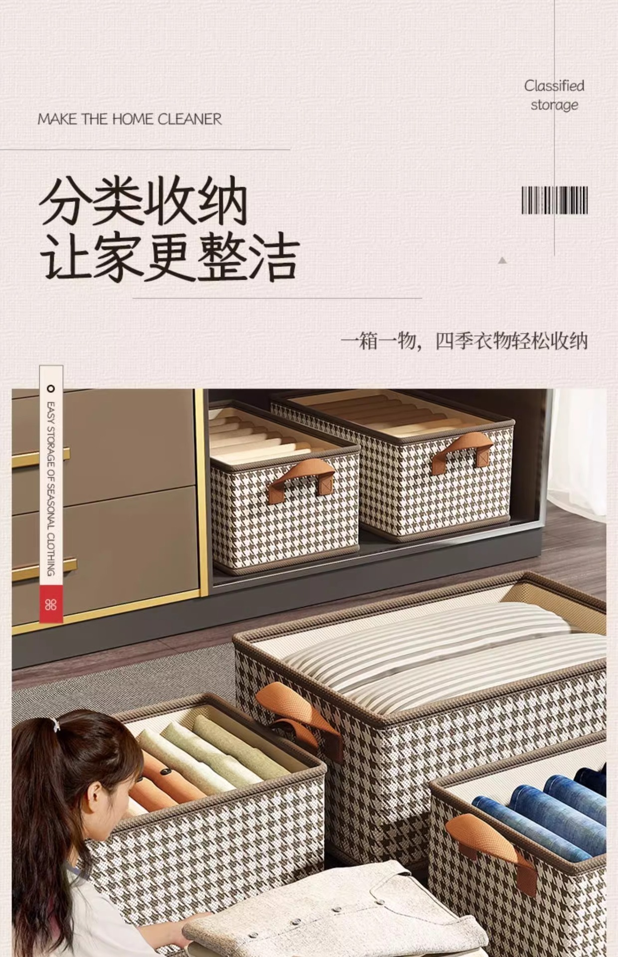 Houndstooth 스토리지 박스 의류 보관 아티팩트 가정용 옷장 접이식 스토리지 박스 내장 PP 보드 대용량 저장