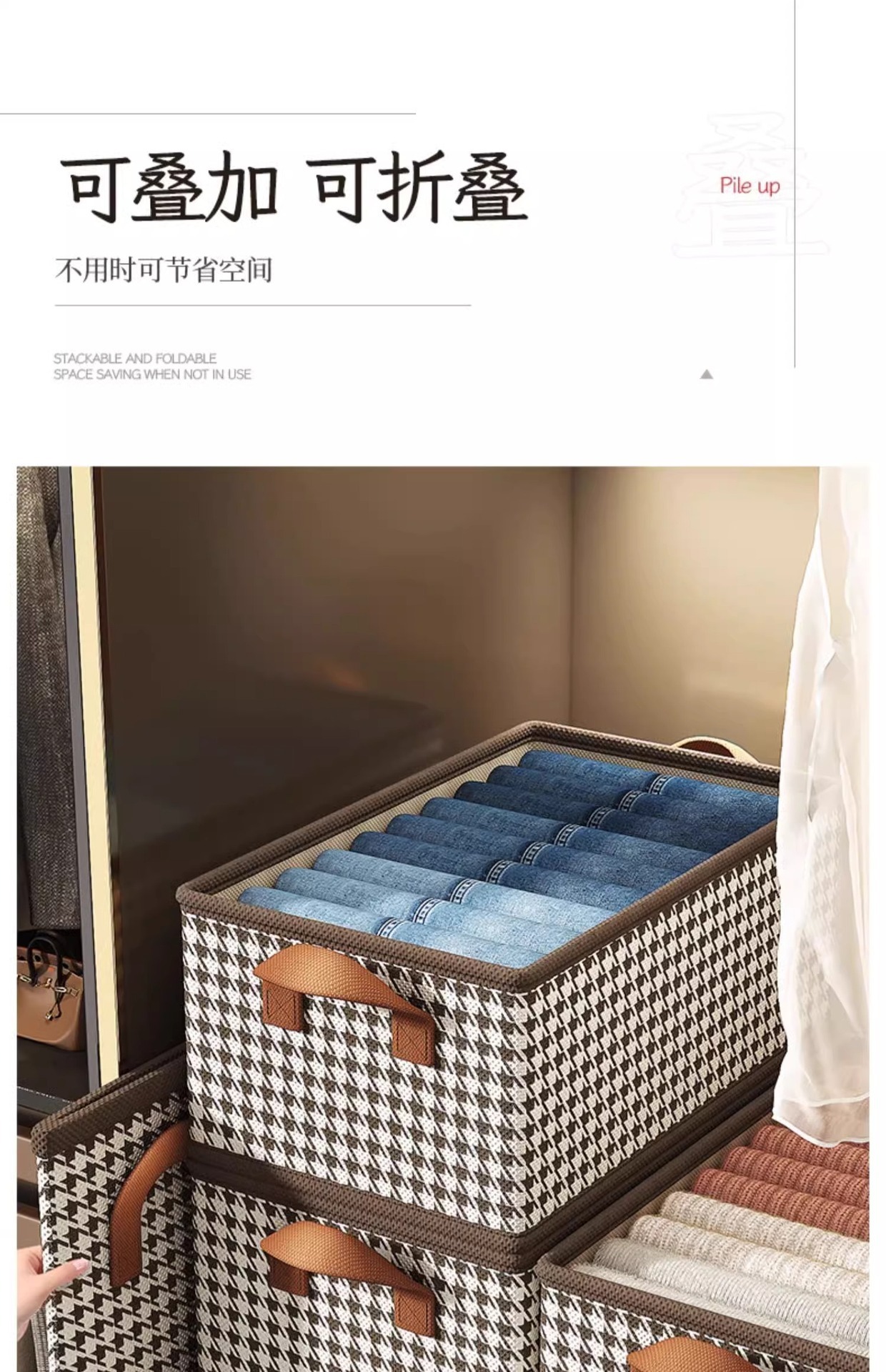 Houndstooth 스토리지 박스 의류 보관 아티팩트 가정용 옷장 접이식 스토리지 박스 내장 PP 보드 대용량 저장스토어 가기