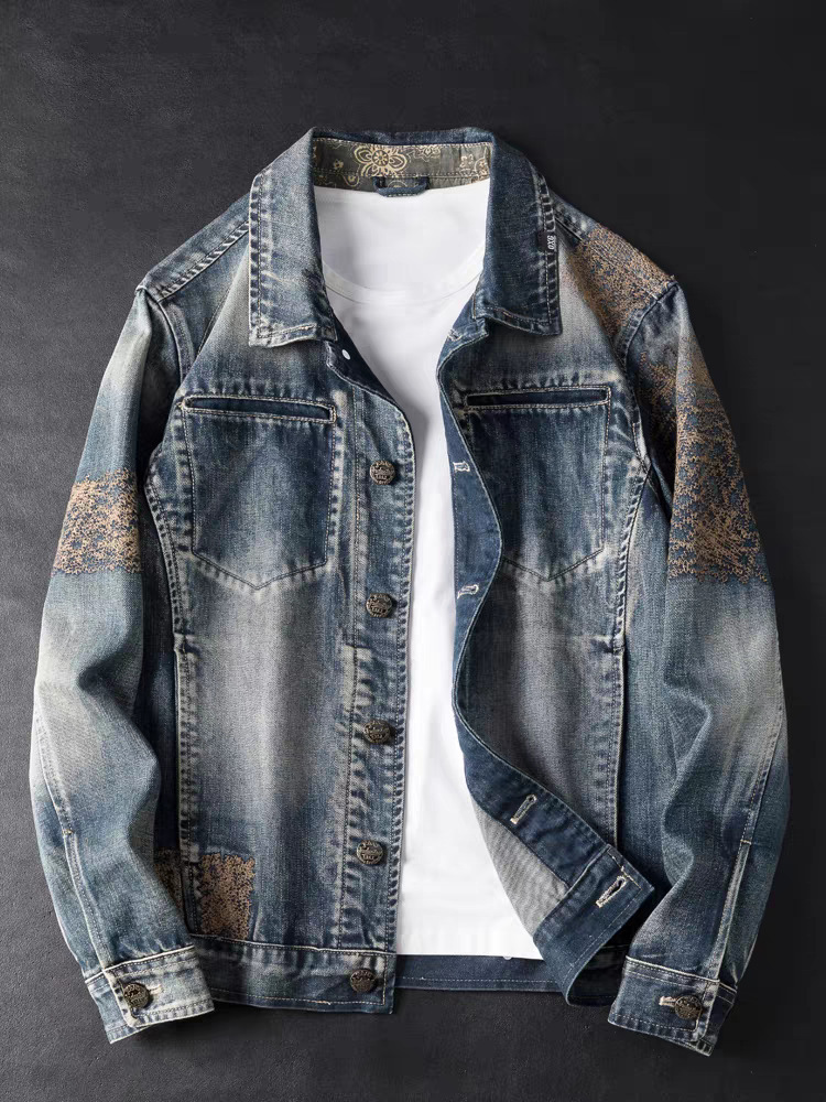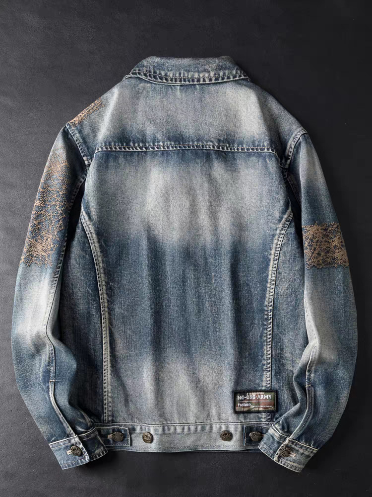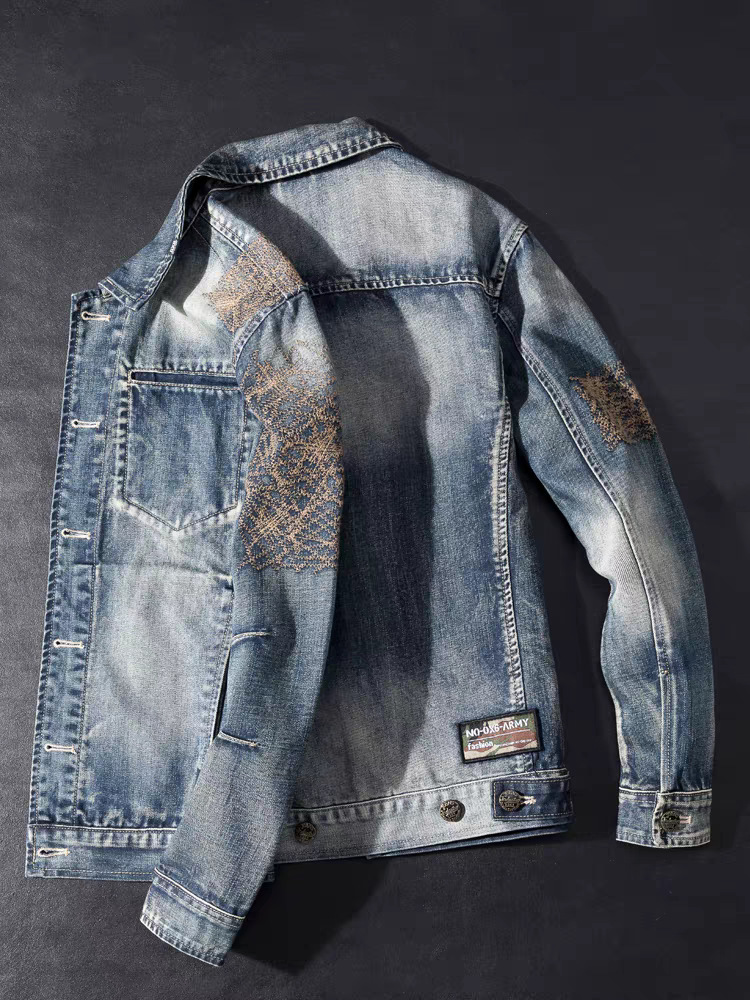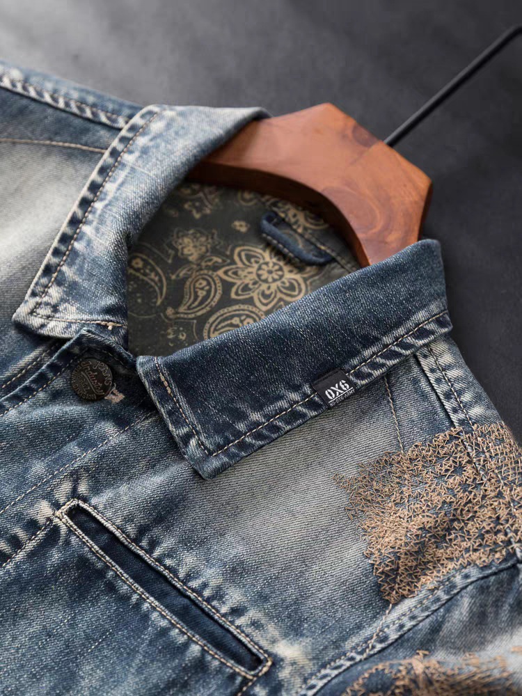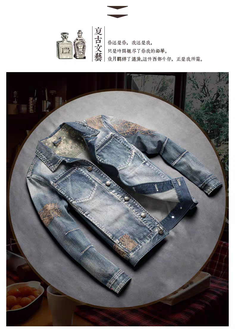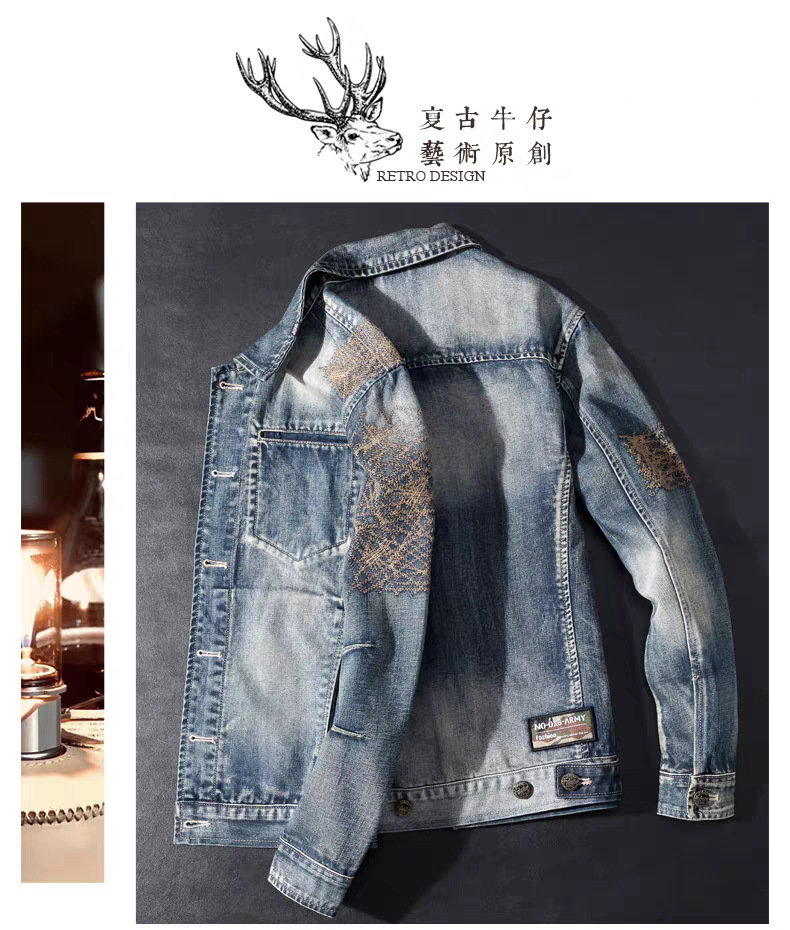 봄과 가을 새로운 데님 재킷 남성 아메리칸 스타일 레트로 슬림 재킷 스트리트 록 청소년 패션 밴드 자수 탑스토어 가기