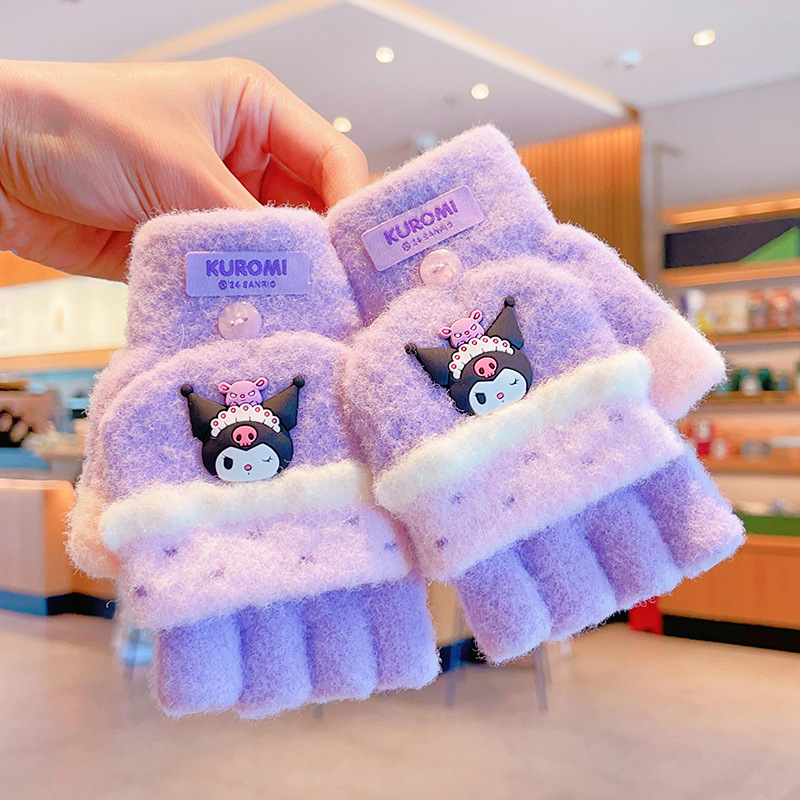 Kulomi 어린이 플립 장갑 가을과 겨울 귀여운 만화 기모 다섯 손가락 세트 소녀 방풍 따뜻한 손가락 세트