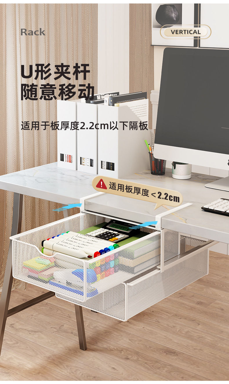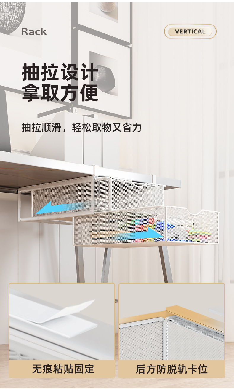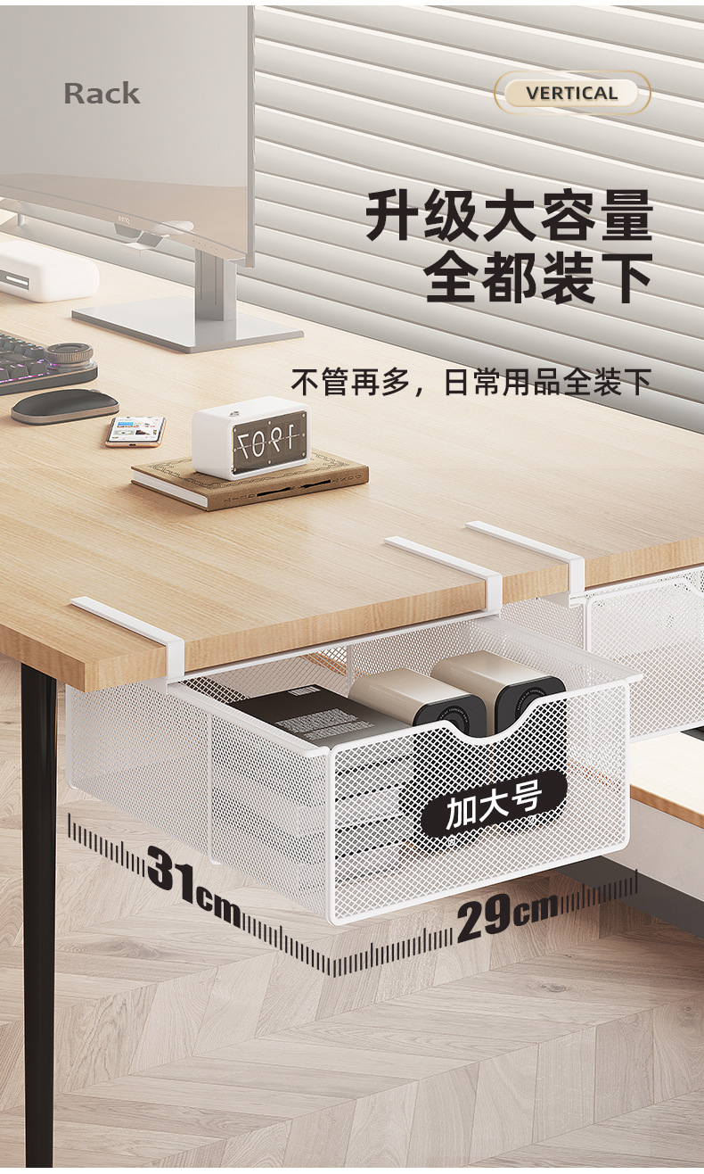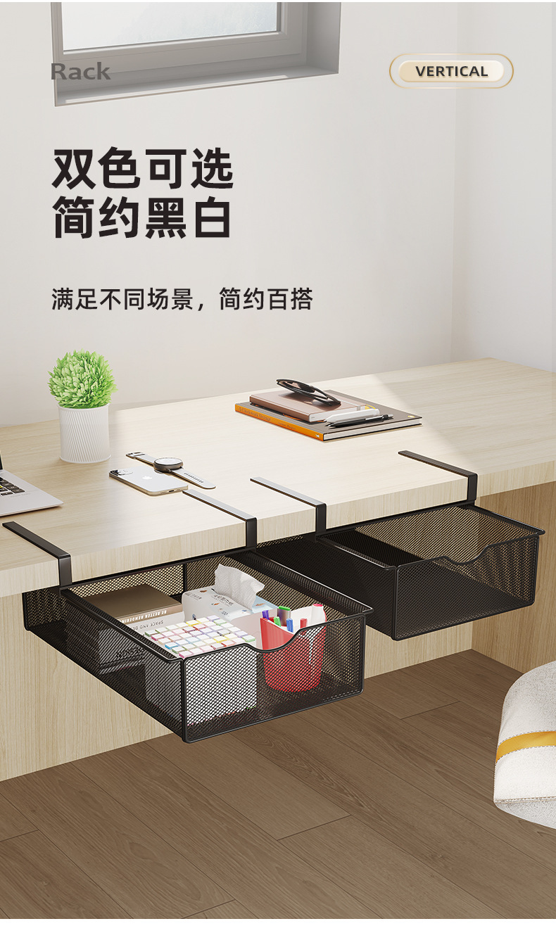 보이지 않는 테이블 보관 상자 기숙사 책상 서랍 보관 랙 스테이션 문구 배열 책상 아래에 매달려스토어 가기
