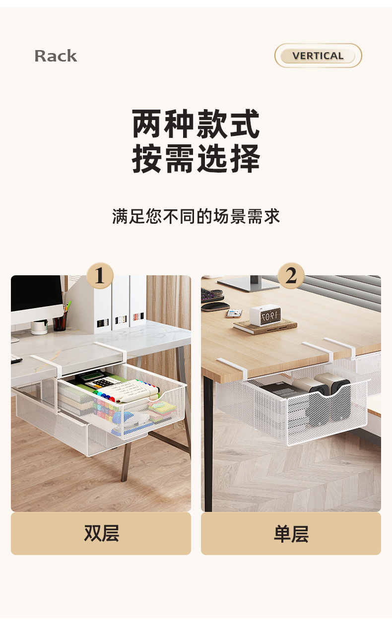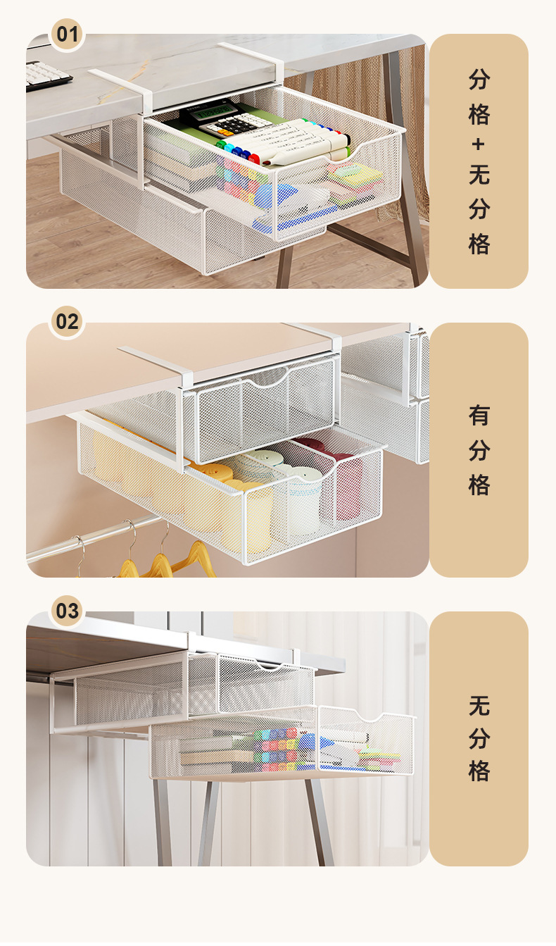 보이지 않는 테이블 보관 상자 기숙사 책상 서랍 보관 랙 스테이션 문구 배열 책상 아래에 매달려