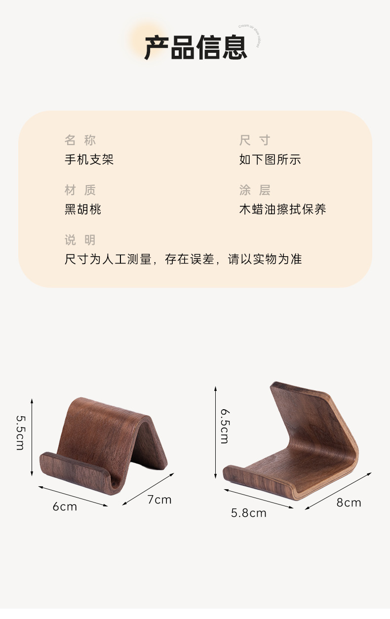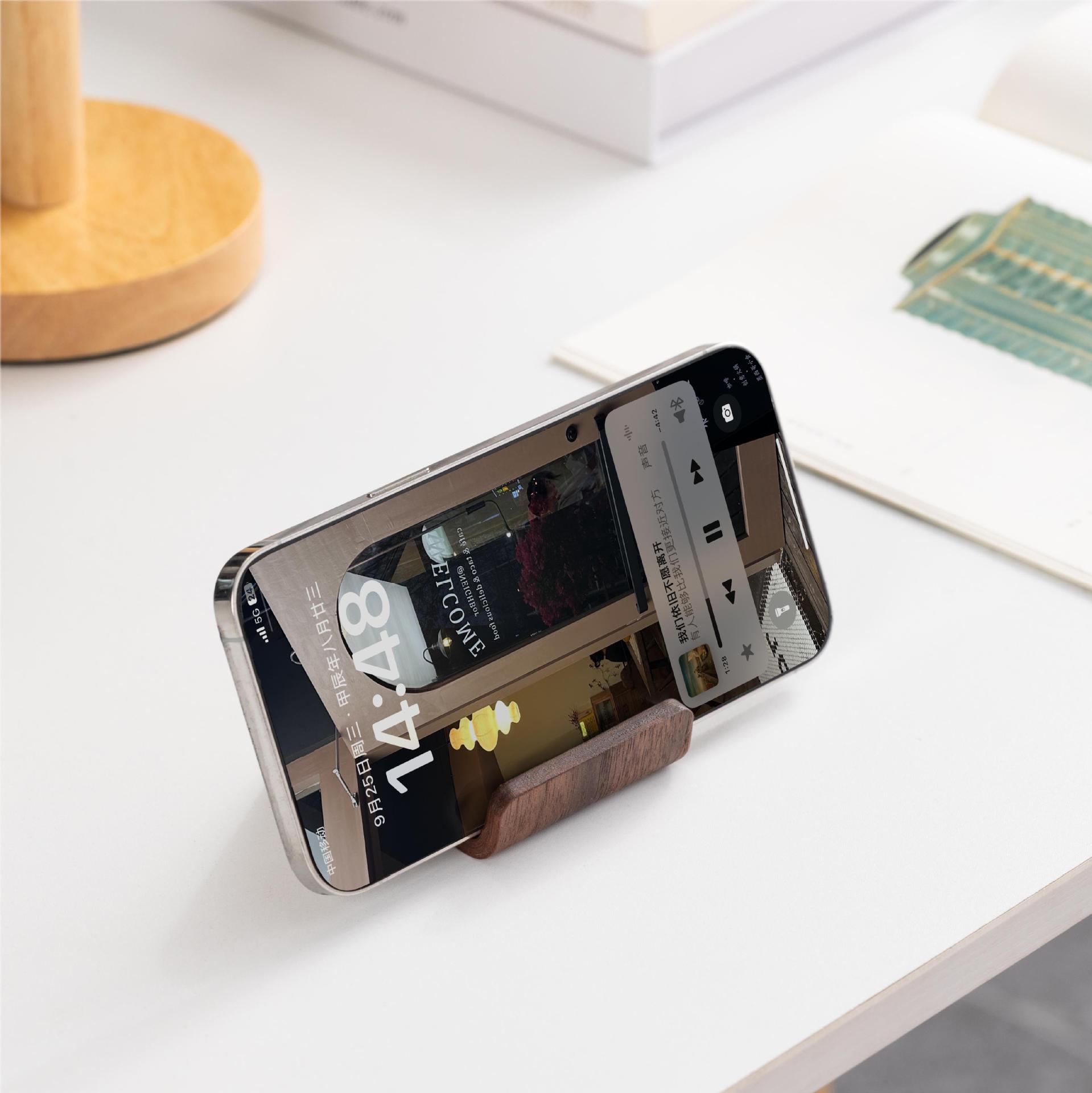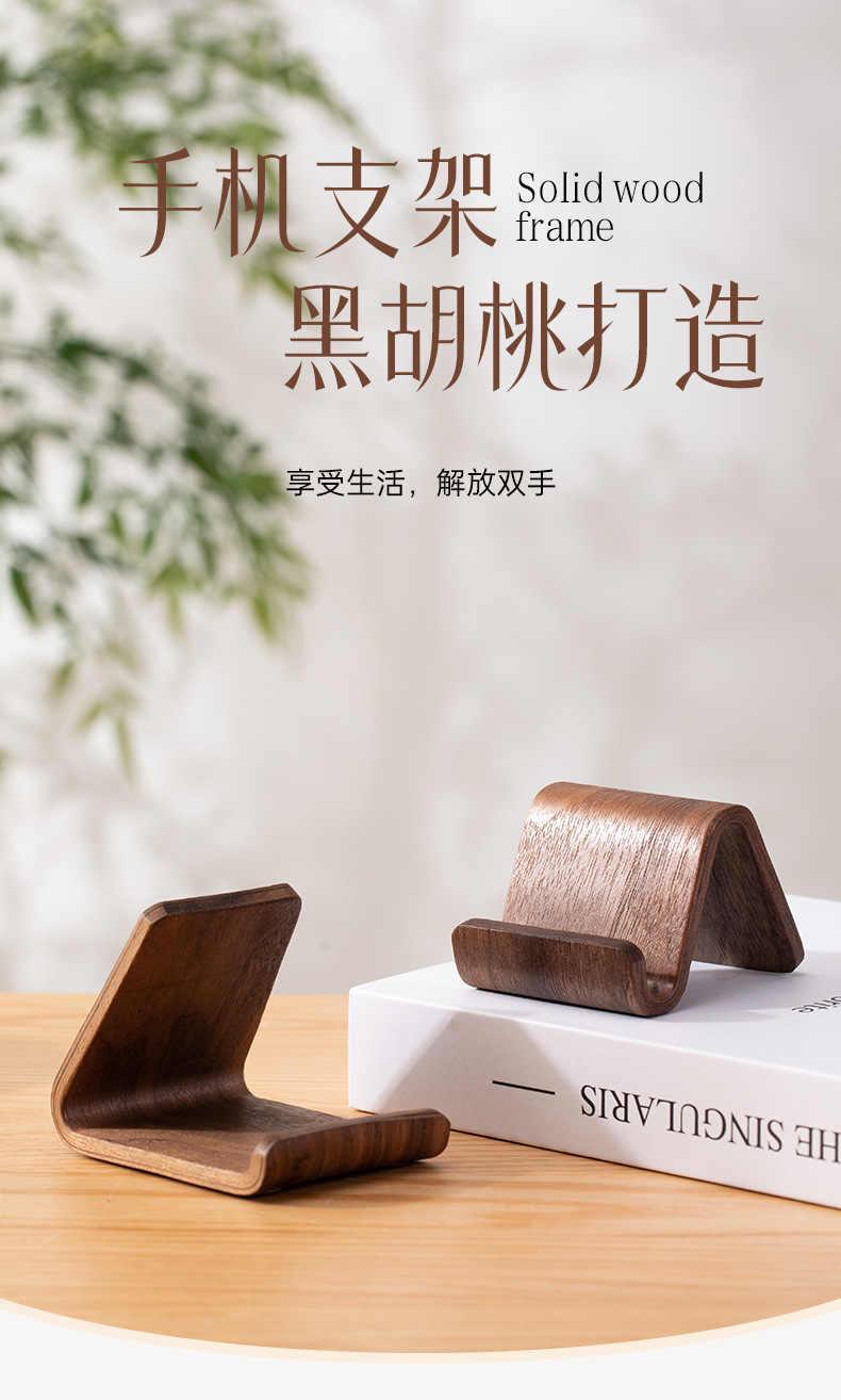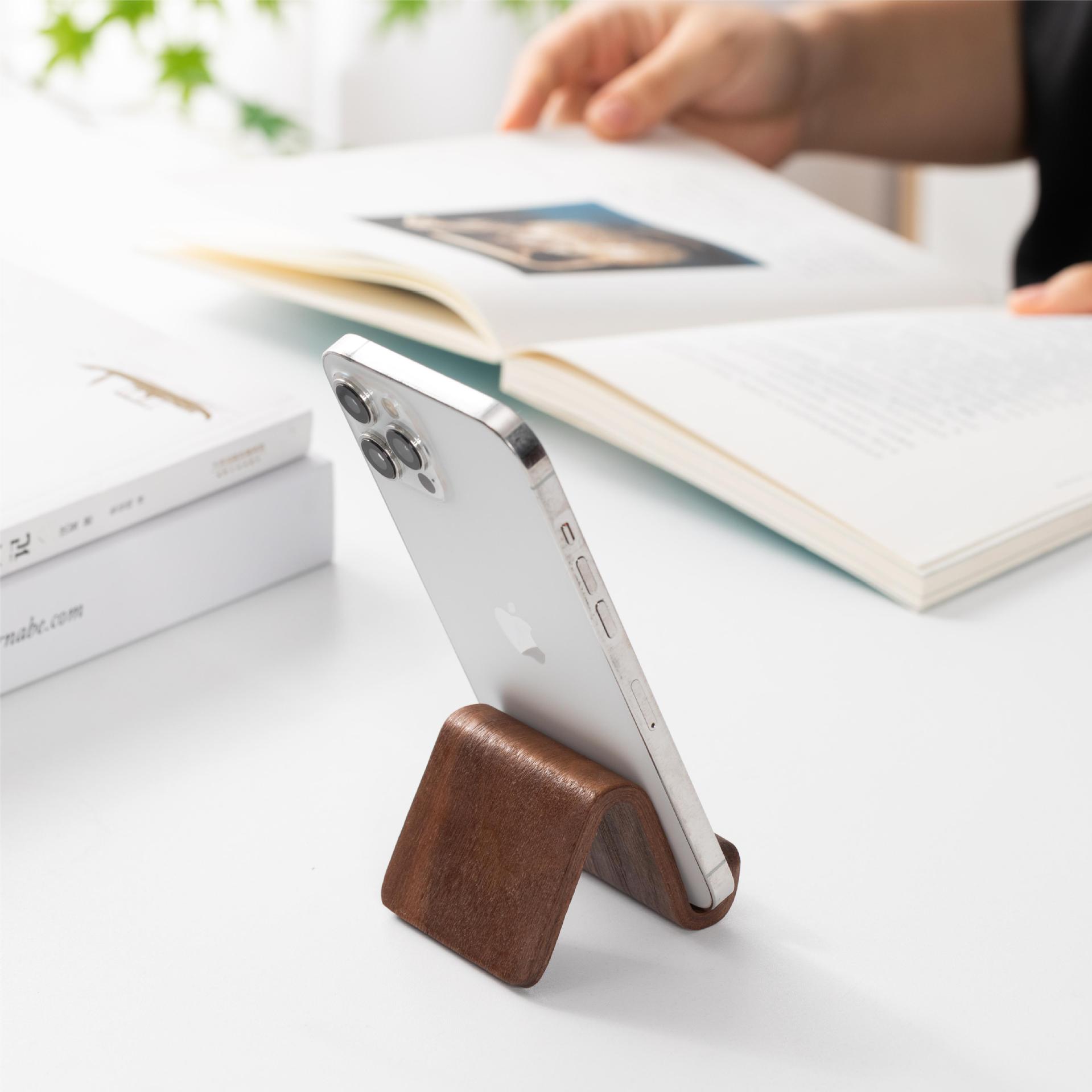 북미 검은 호두 나무 창조적 인 새로운 간단한 휴대 전화 스탠드 데스크탑 지원 휴대 전화 랙 유니버설