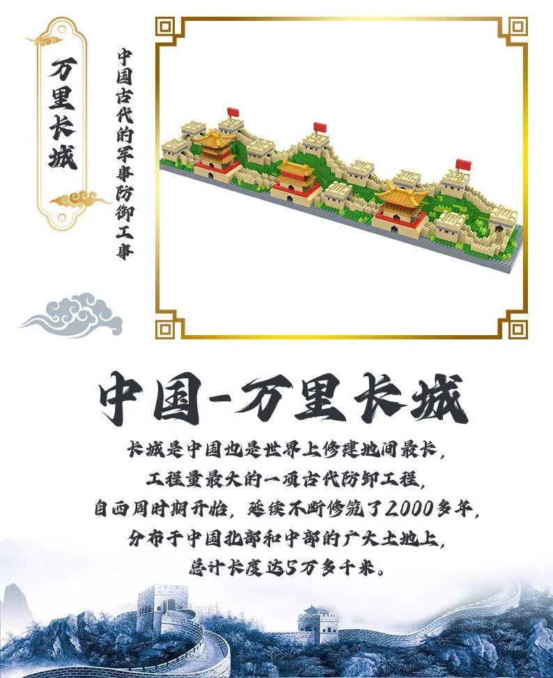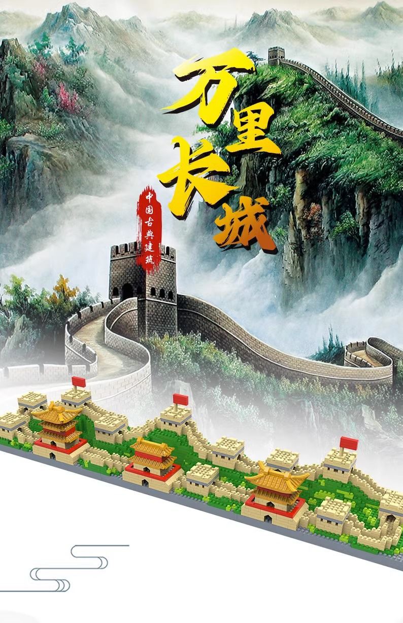 [제조업체 도매] 중국 만리장성 빌딩 블록 어려운 거대한 10000 조각 소년을위한 조립 장난감스토어 가기