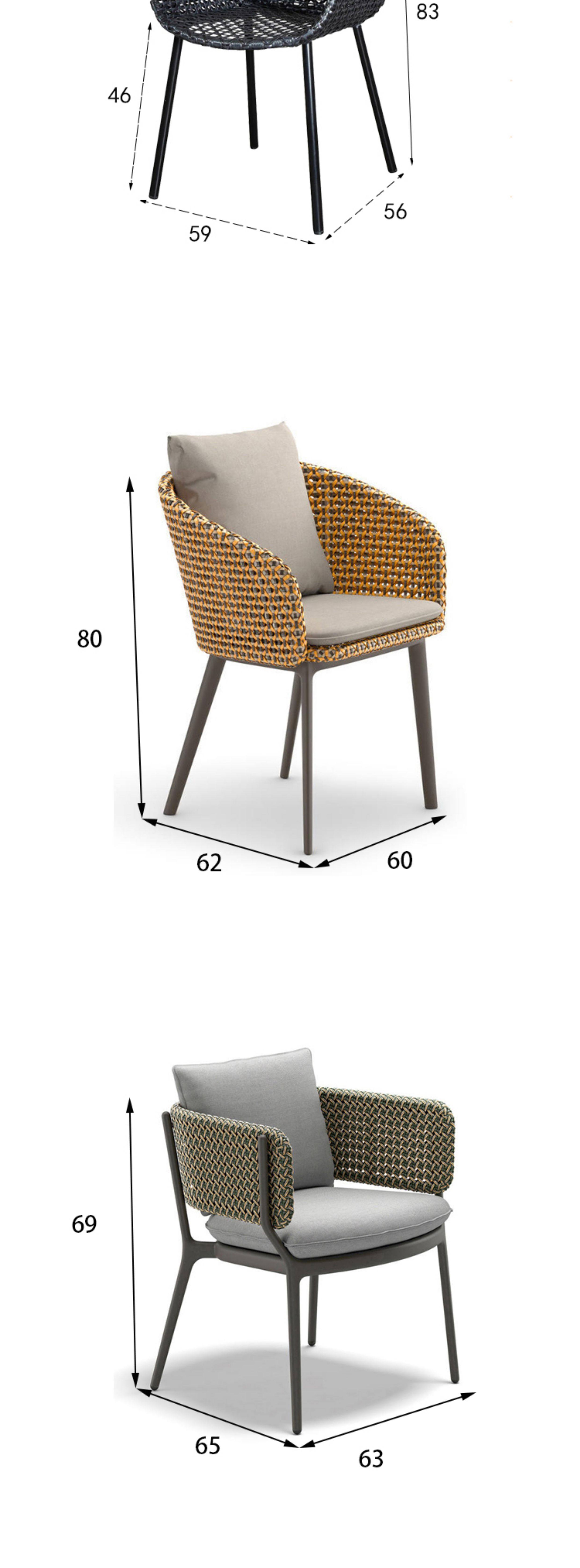 야외 테이블과 의자 등나무 다이닝 의자 발코니 작은 개방형 비방 선 스크린 안뜰 정원 6 자 조합 등나무 알루미늄 합금스토어 가기