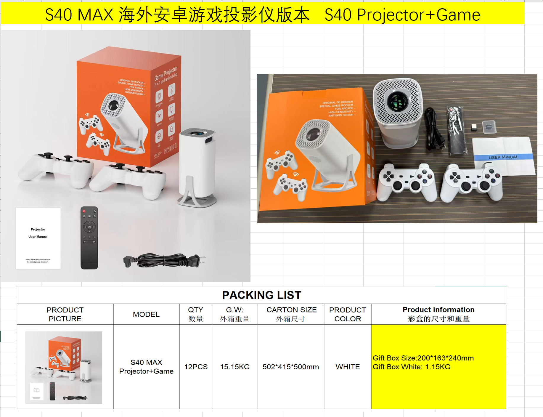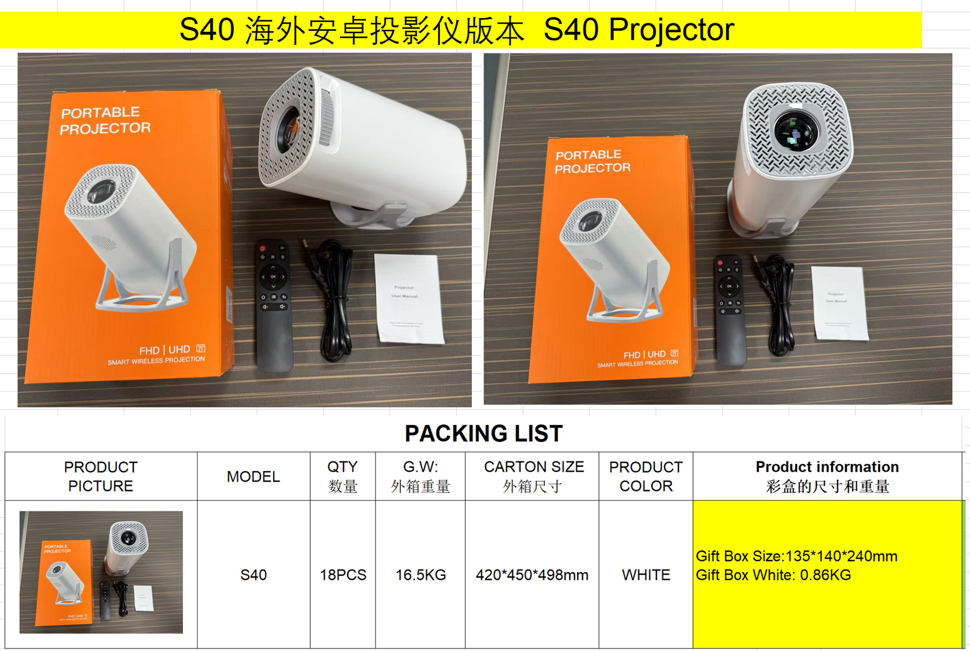 국경을 넘는 새로운 게임 버전 휴대용 프로젝터 S40 4K 안드로이드 13 WIFI 고화질 가정용 게임기