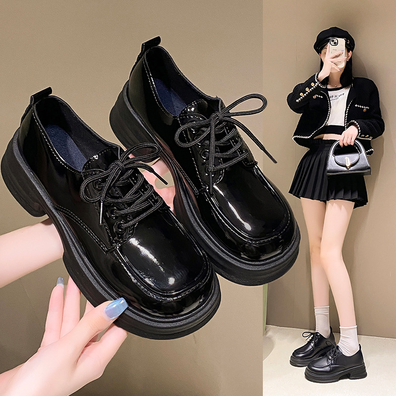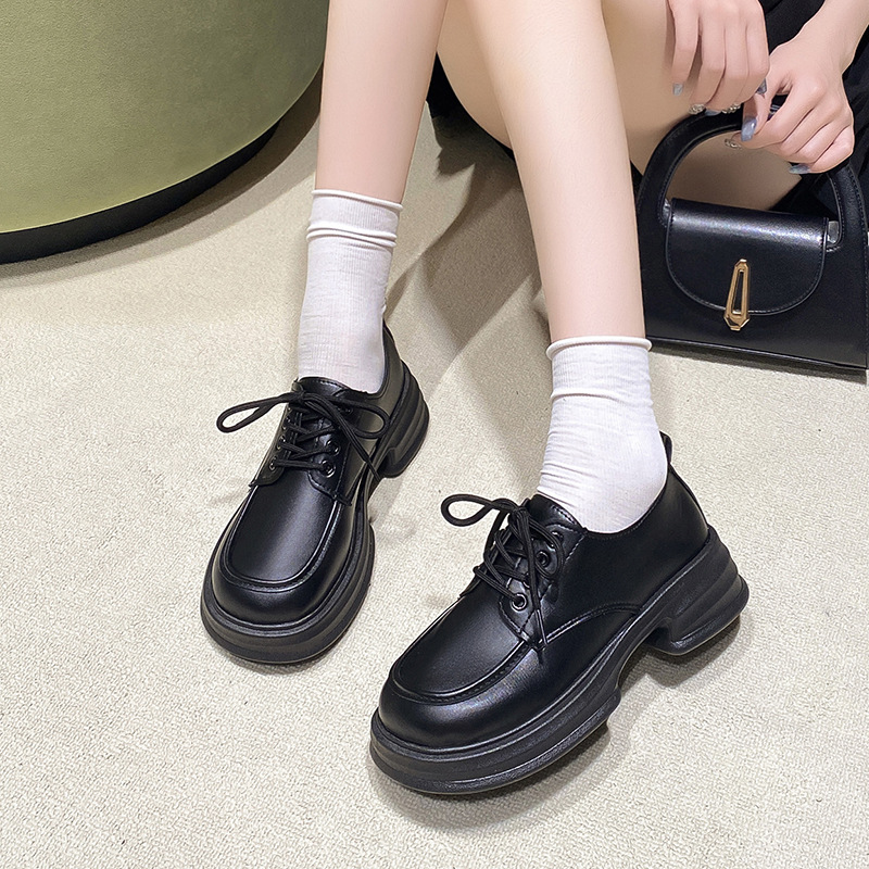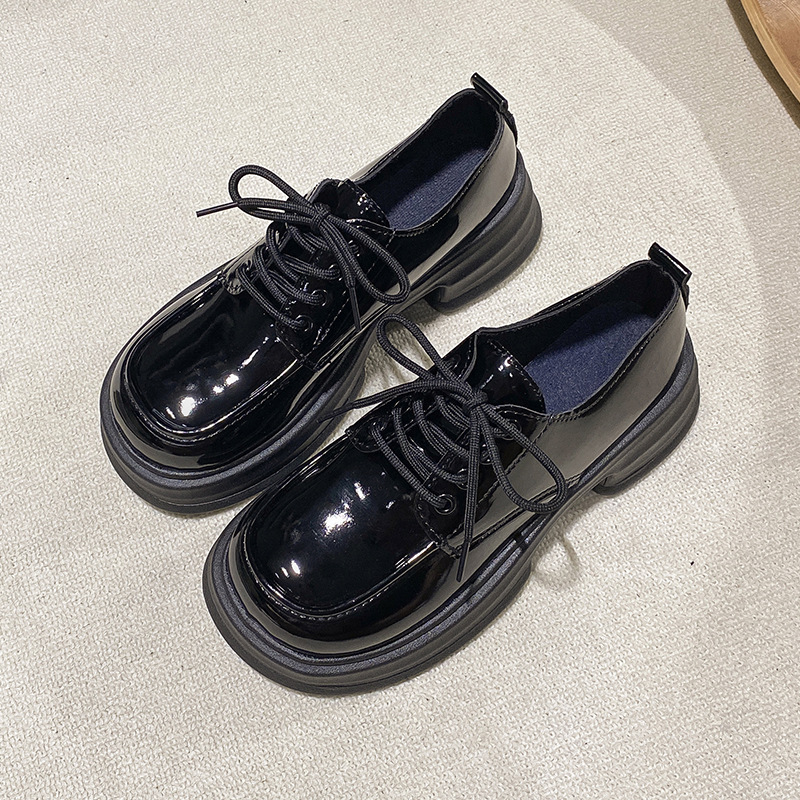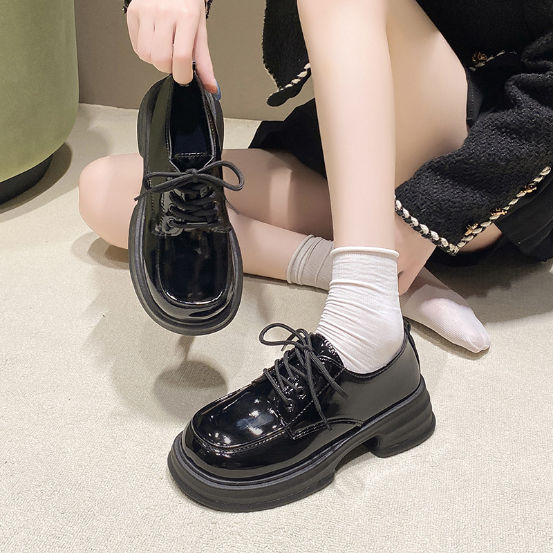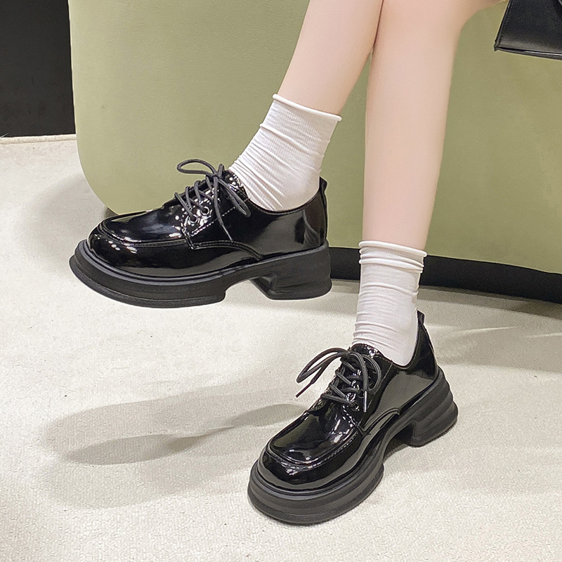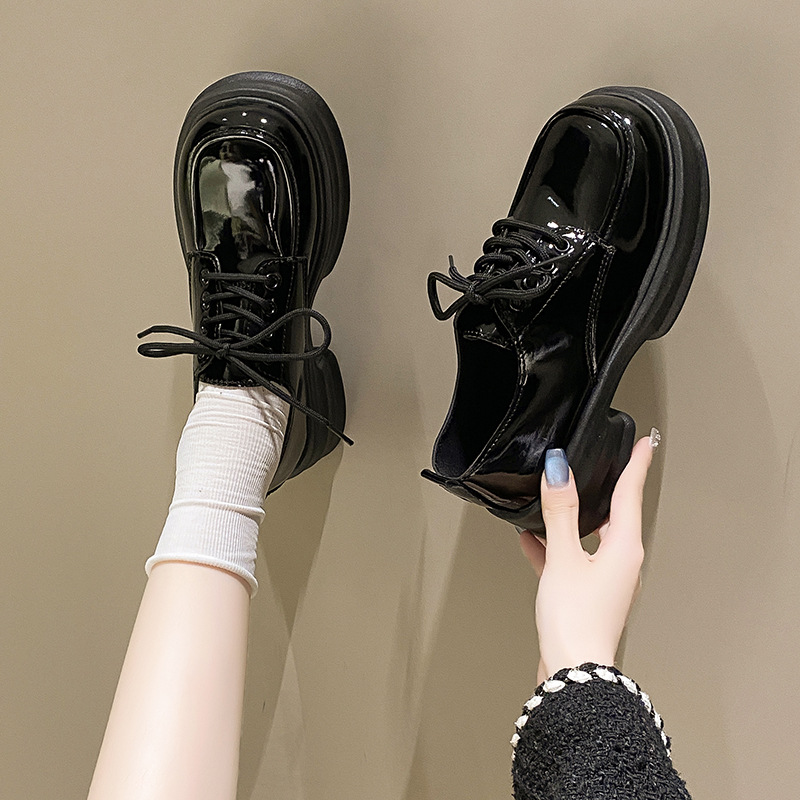 작은 두꺼운 바닥 두꺼운 힐 작은 가죽 신발 여성의 2024 겨울 새로운 레트로 영국 스타일 올 매치 레이스 업 로퍼