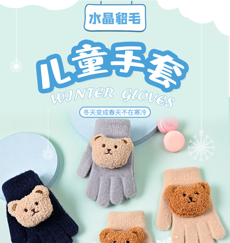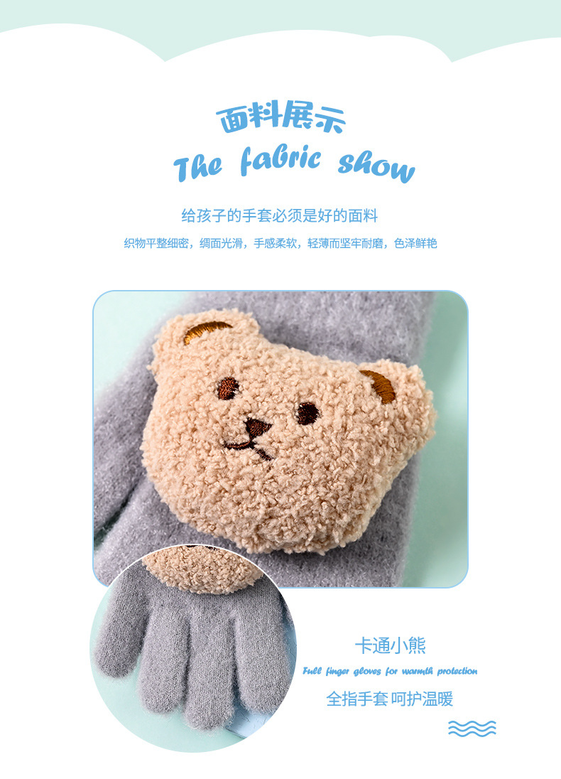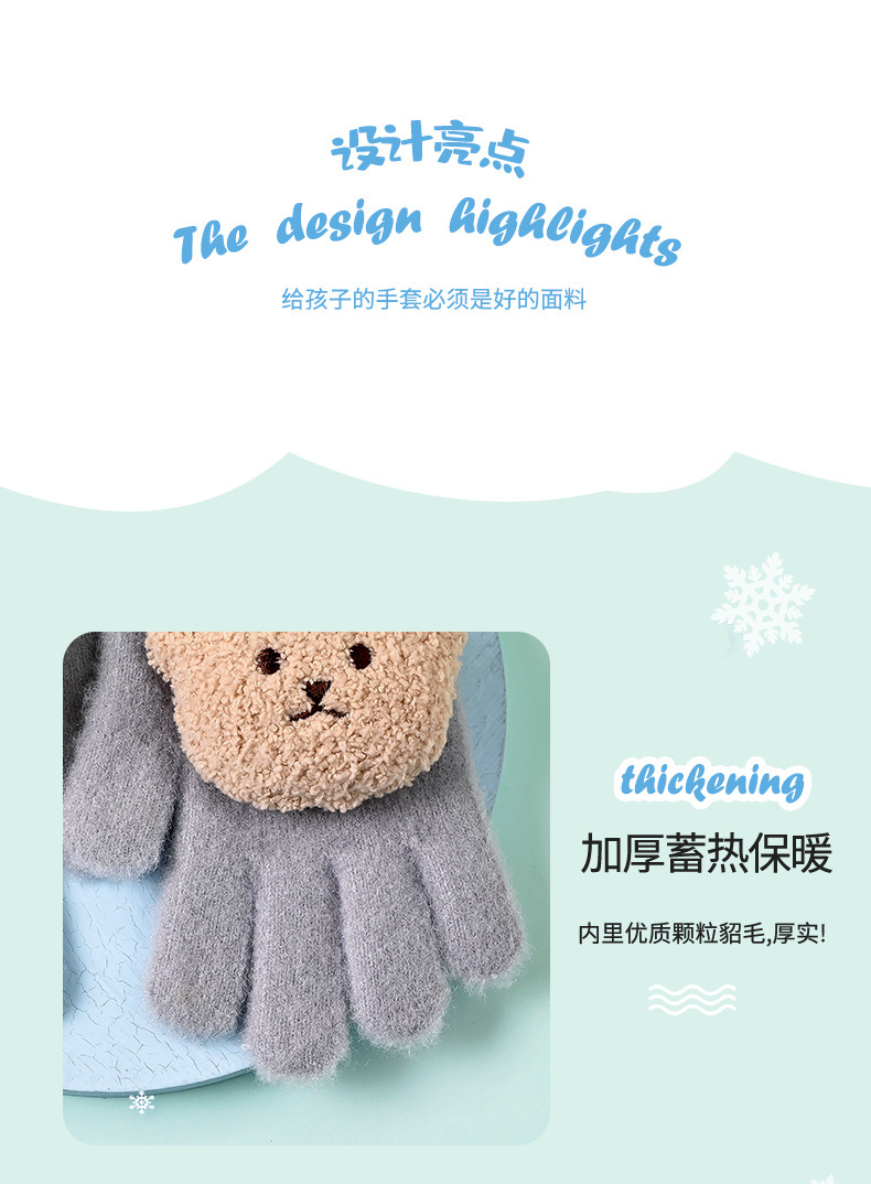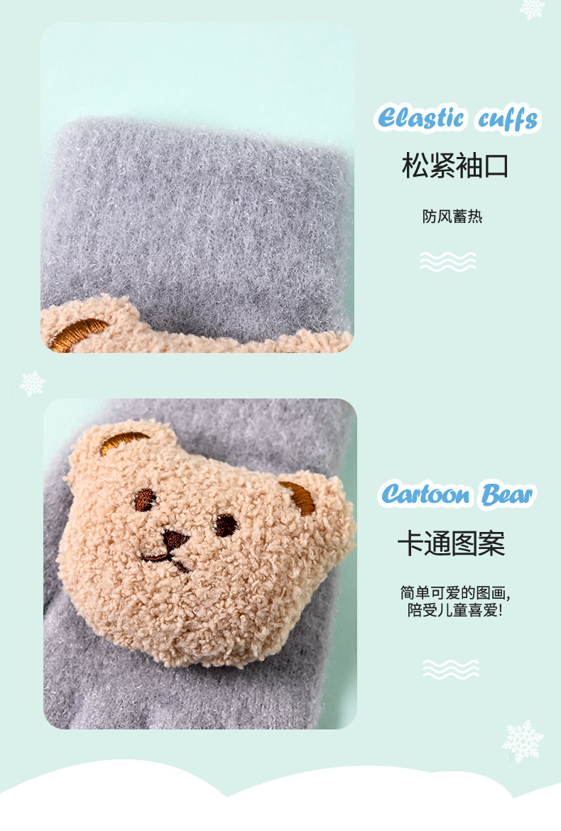 새로운 어린이 장갑 겨울 패션 슈퍼 귀여운 곰 만화 플러스 벨벳 따뜻한 아기 장갑 도매 중소 어린이스토어 가기