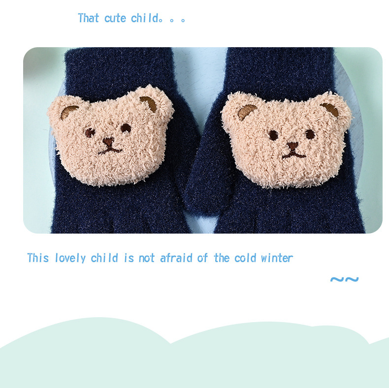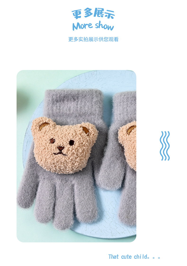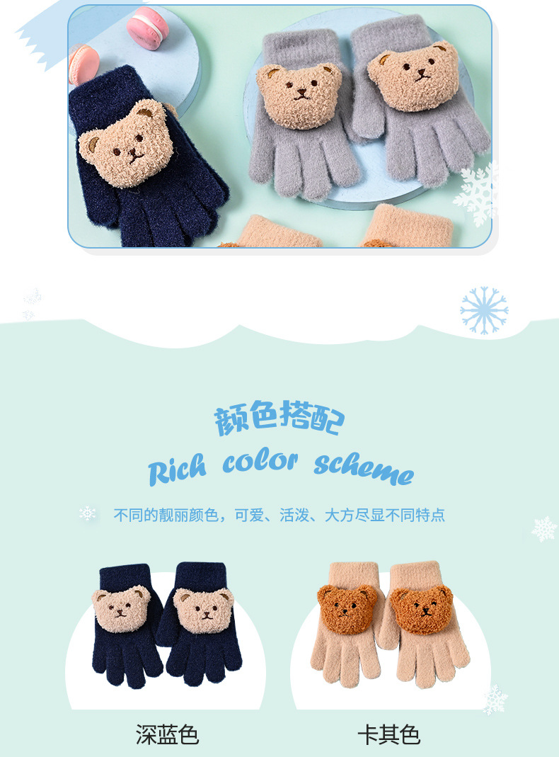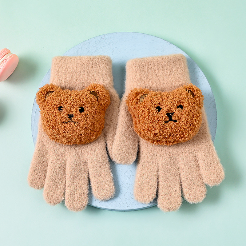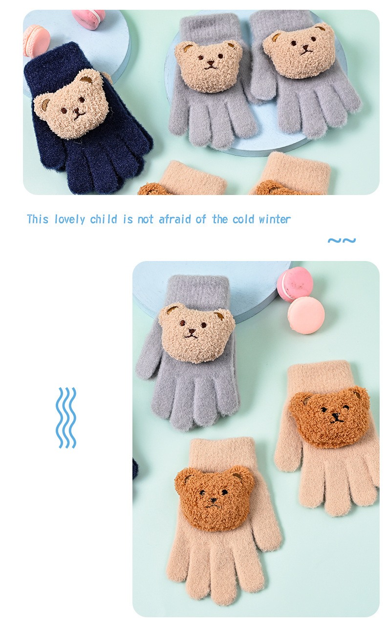 새로운 어린이 장갑 겨울 패션 슈퍼 귀여운 곰 만화 플러스 벨벳 따뜻한 아기 장갑 도매 중소 어린이스토어 가기
