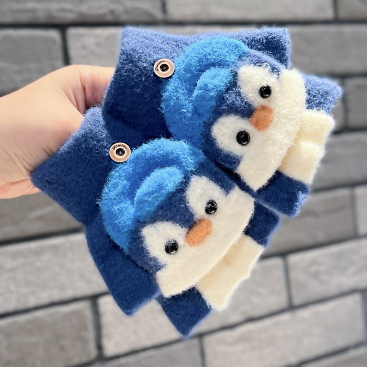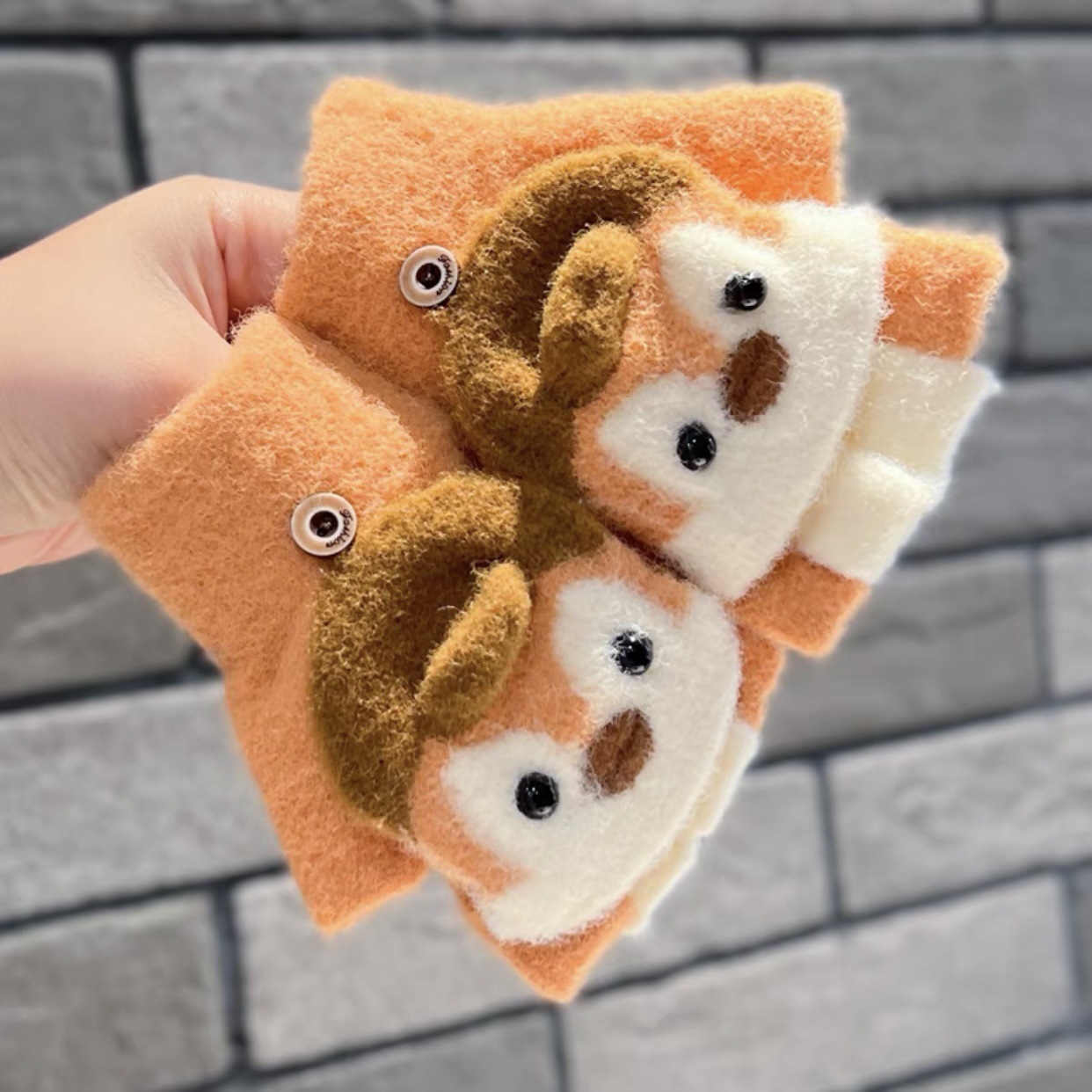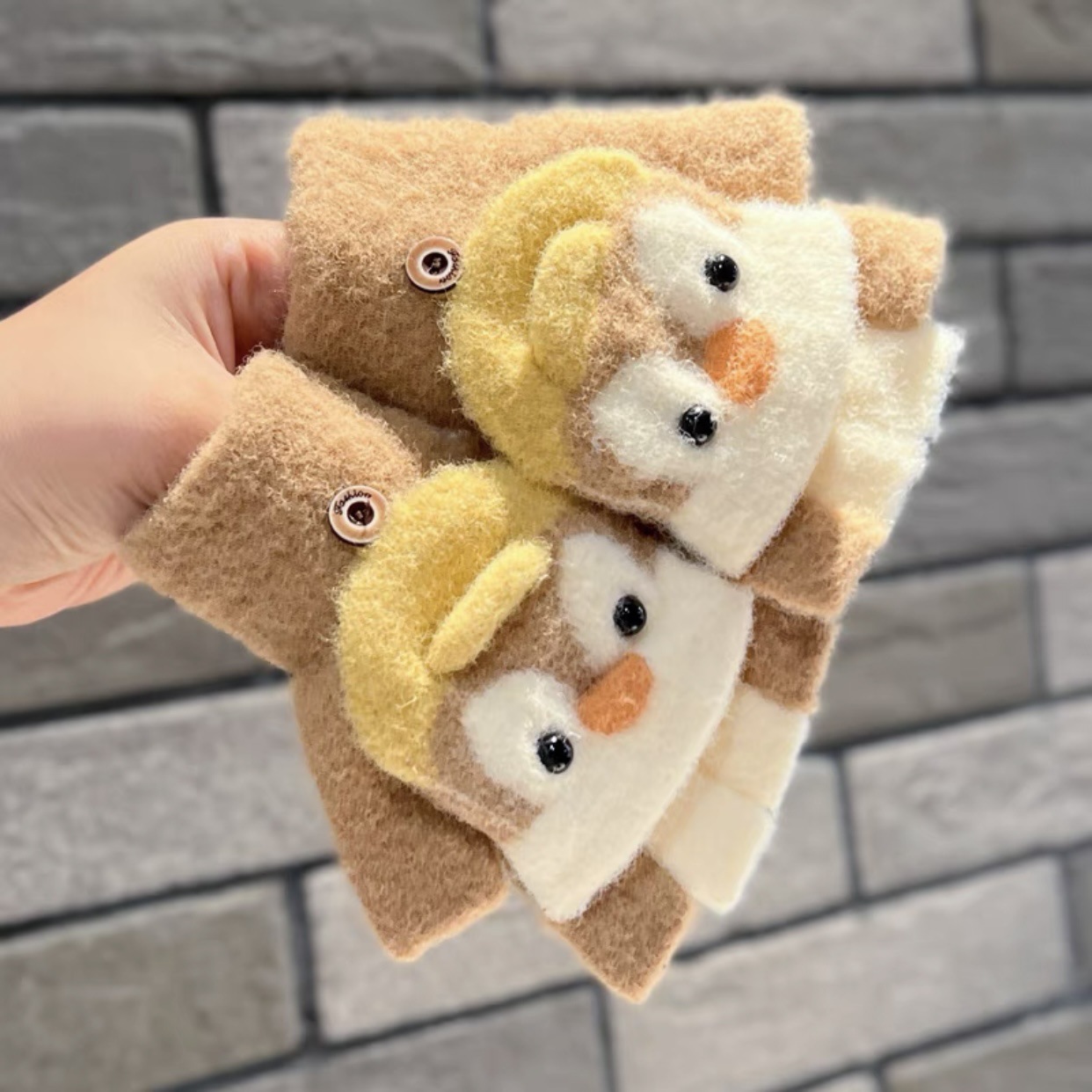 어린이 장갑 겨울 소년의 두꺼운 따뜻한 만화 반 손가락 플립 커버 학생 승마 및 글쓰기