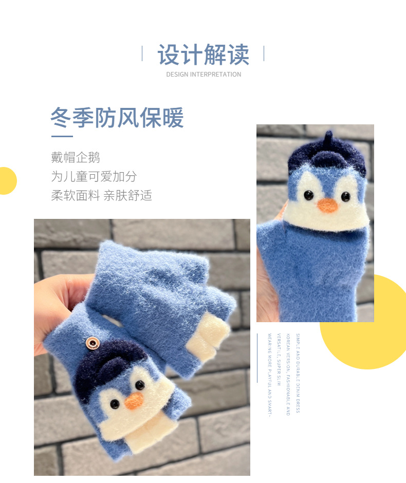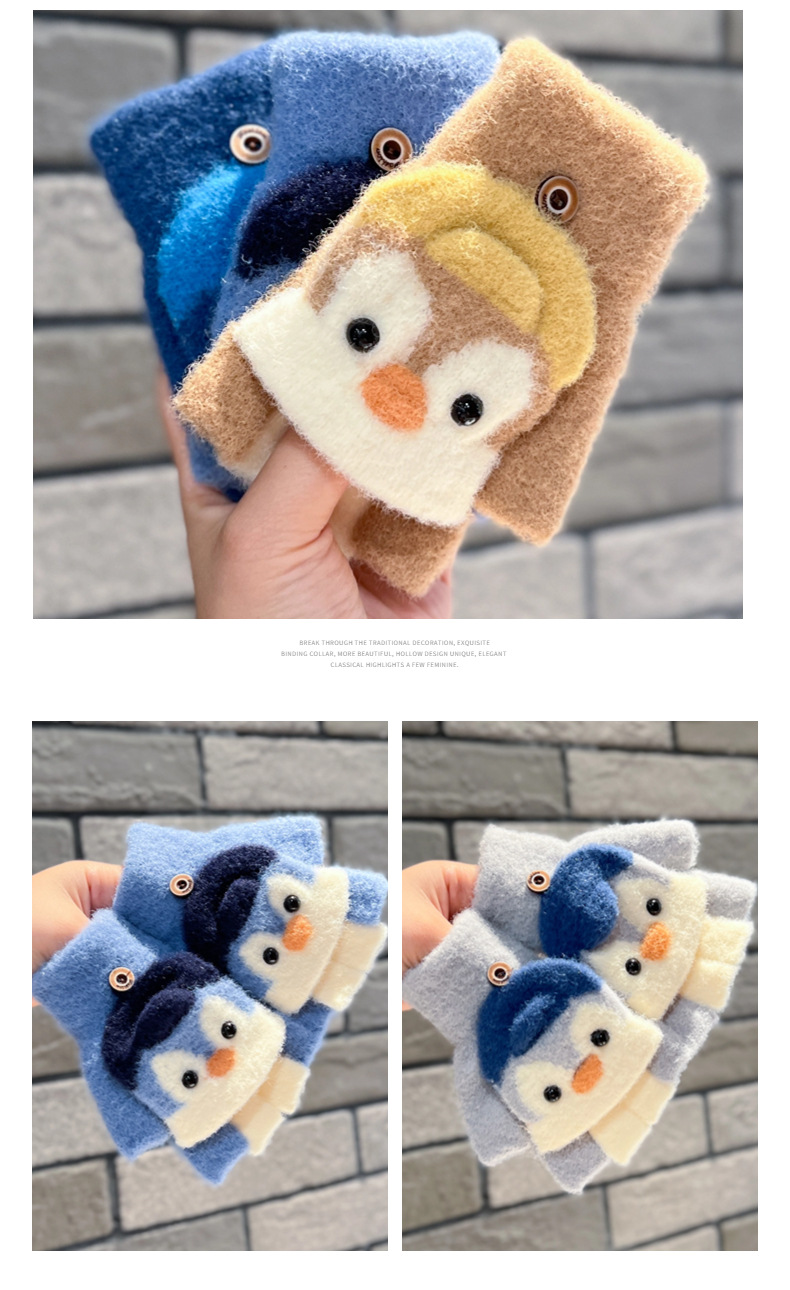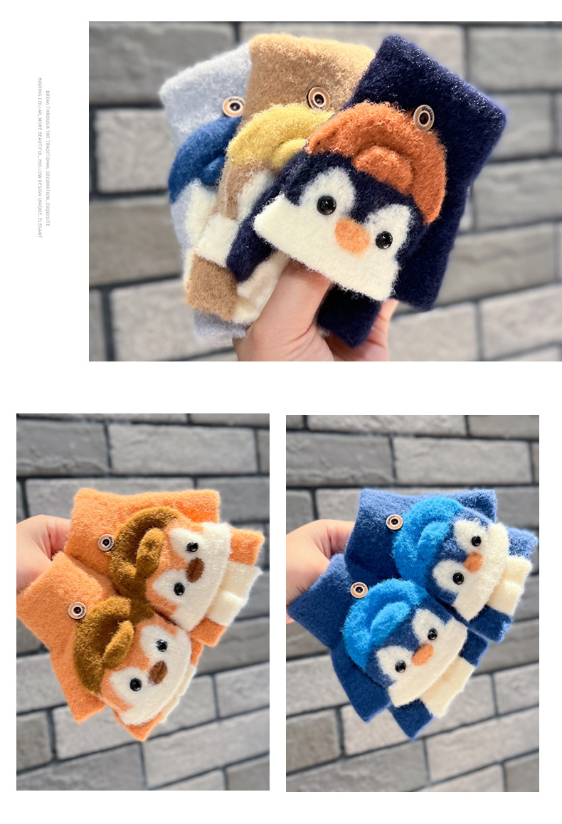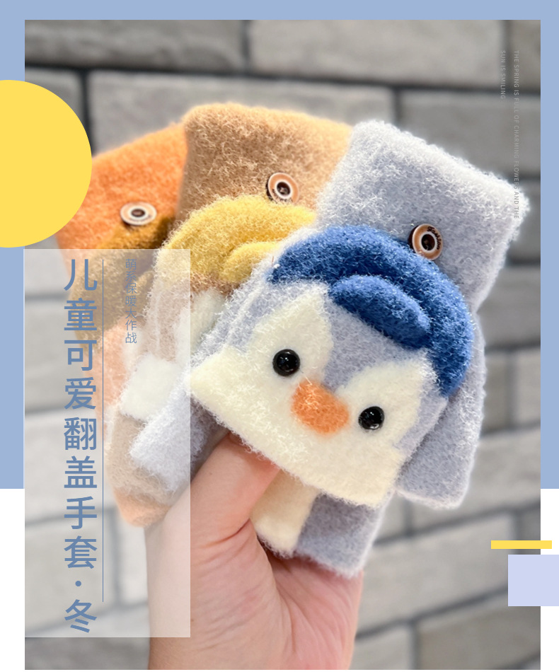 어린이 장갑 겨울 소년의 두꺼운 따뜻한 만화 반 손가락 플립 커버 학생 승마 및 글쓰기스토어 가기