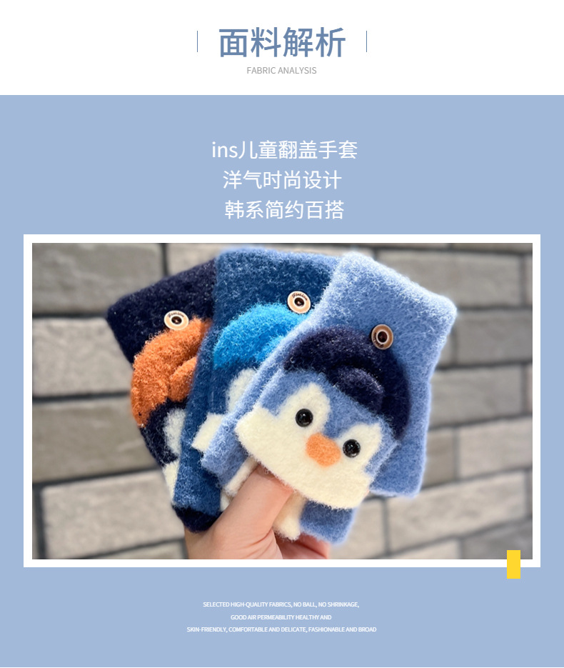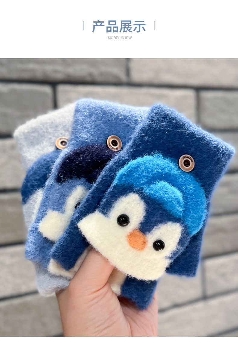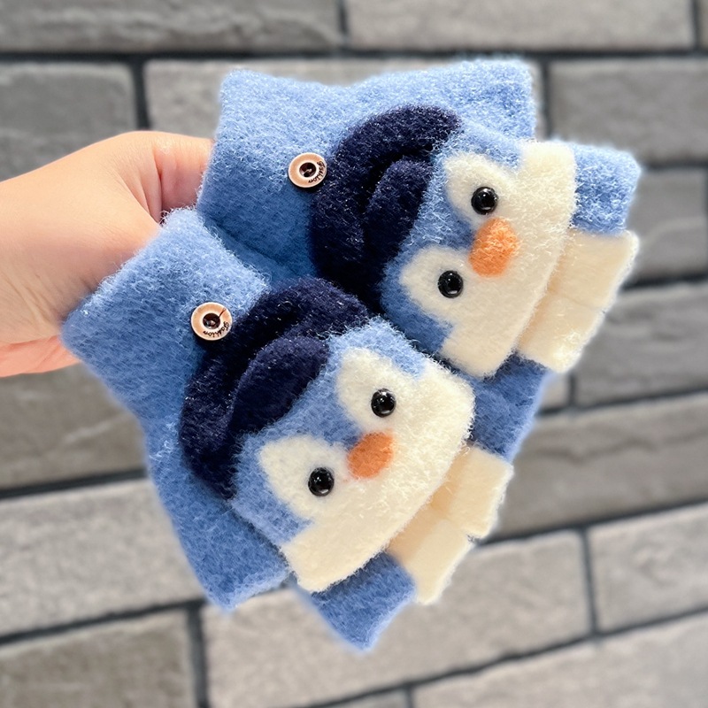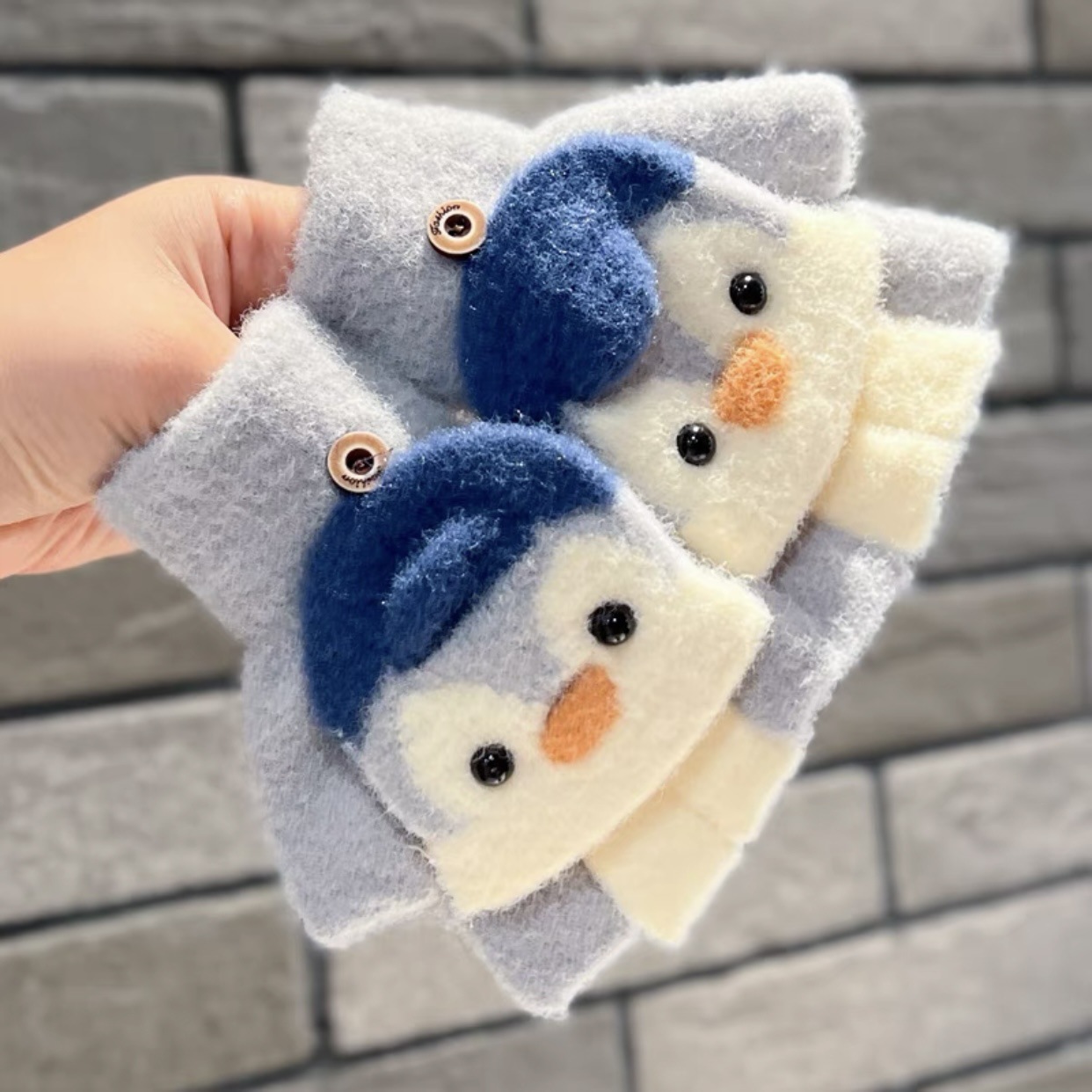 어린이 장갑 겨울 소년의 두꺼운 따뜻한 만화 반 손가락 플립 커버 학생 승마 및 글쓰기스토어 가기