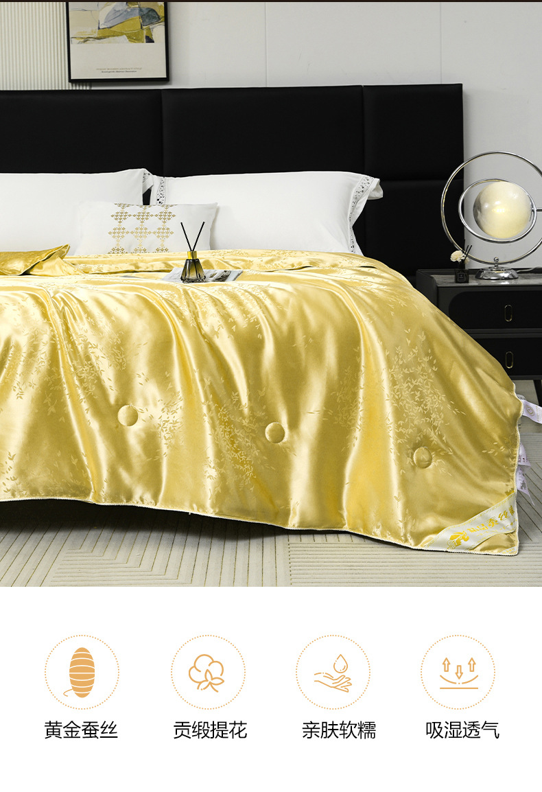 라이브 방송용 고급 새틴 황금 실크 이불, 실크 면 이불심, 봄 가을 두꺼운 겨울 이불, 싱글/더블 여름 이불, 에어컨용 사계절 이불, 부드러운스토어 가기