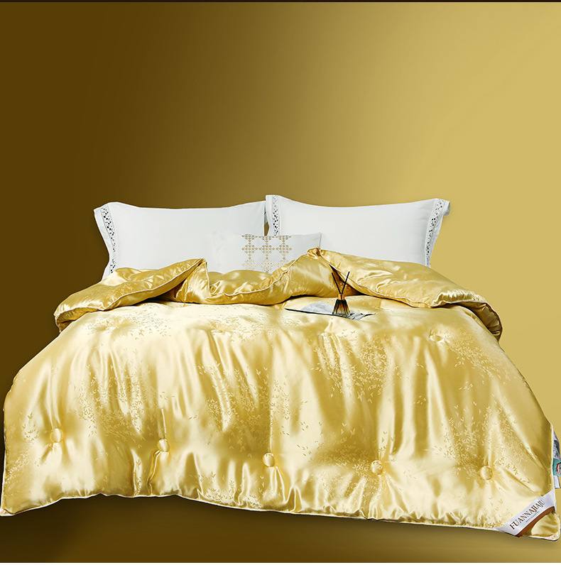 라이브 방송용 고급 새틴 황금 실크 이불, 실크 면 이불심, 봄 가을 두꺼운 겨울 이불, 싱글/더블 여름 이불, 에어컨용 사계절 이불, 부드러운