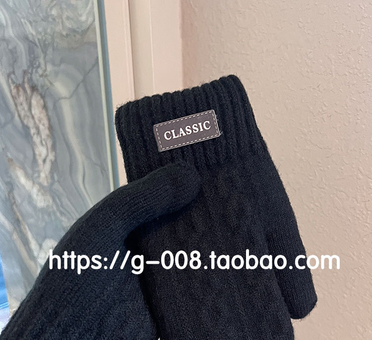 기모 두꺼운 따뜻한 장갑 겨울 남자의 방풍 및 방한 양모 니트 더블 레이어 멀티 손가락 야외 사이클링 타이드스토어 가기