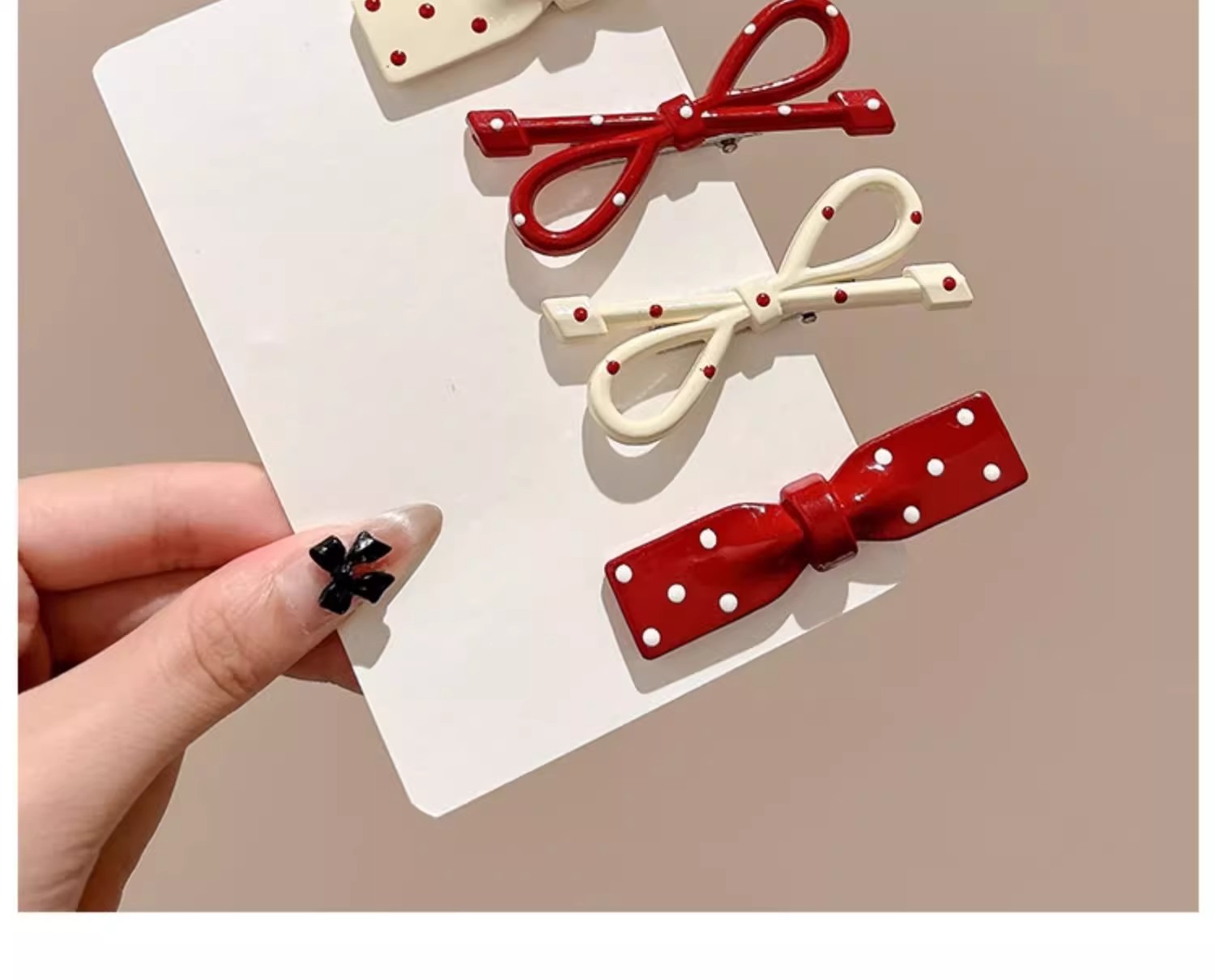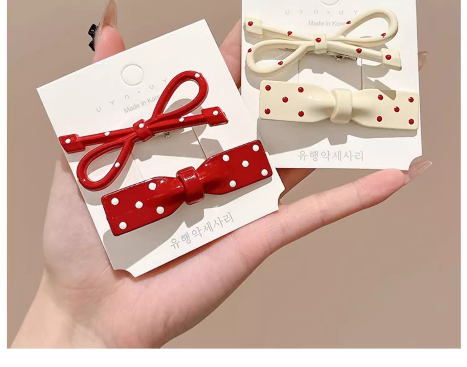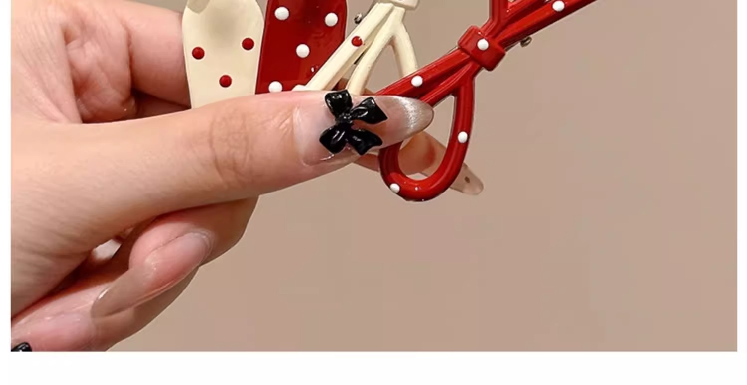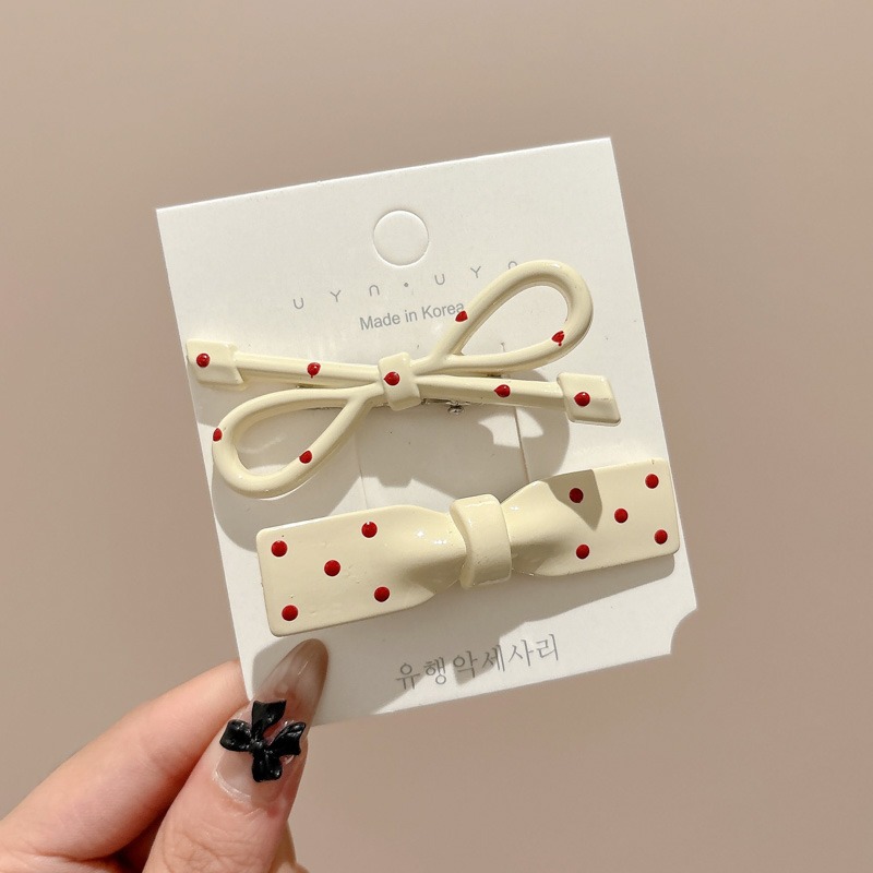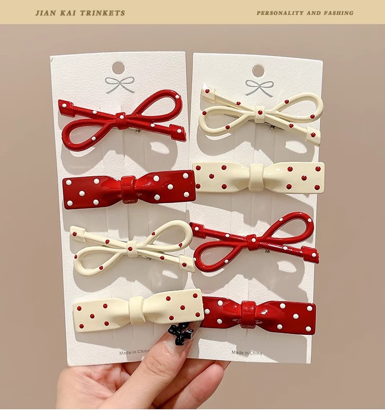 Ankora Red Wave Dot Bow 헤어핀 여성용 사이드 브로큰 헤어 뱅 클립 덕빌 클립 귀여운 한 단어 클립 클립 헤어핀스토어 가기