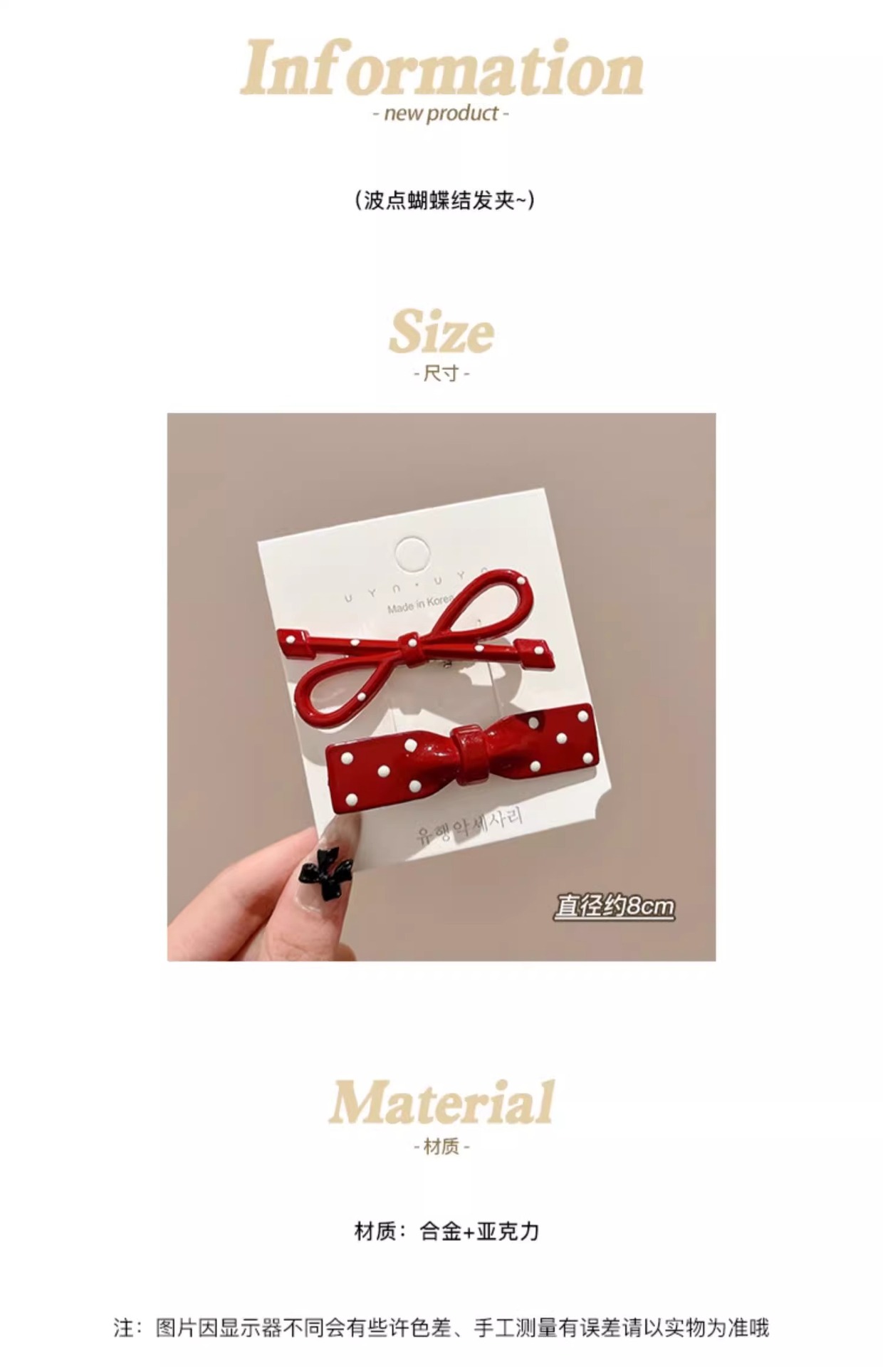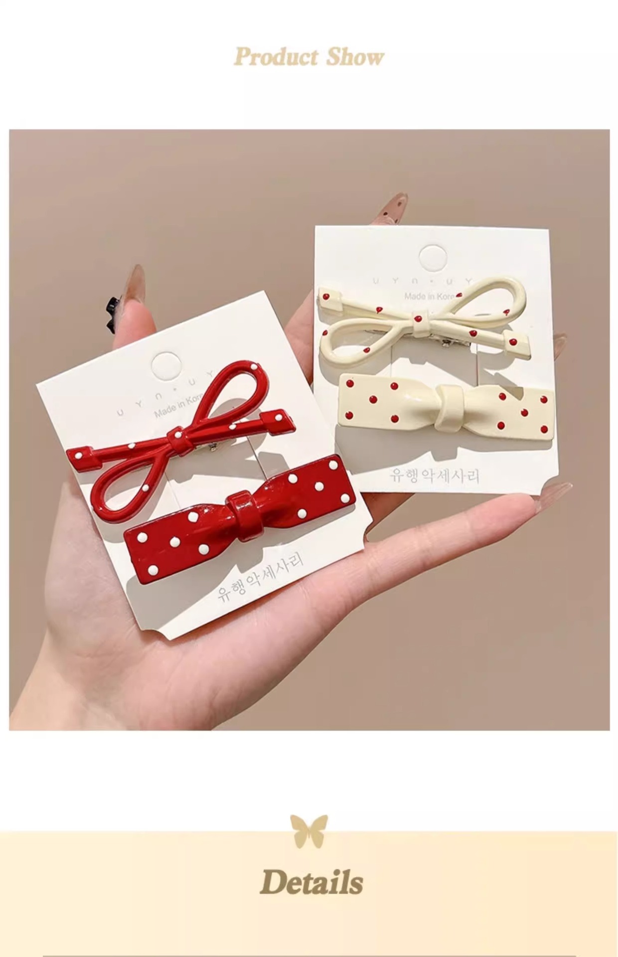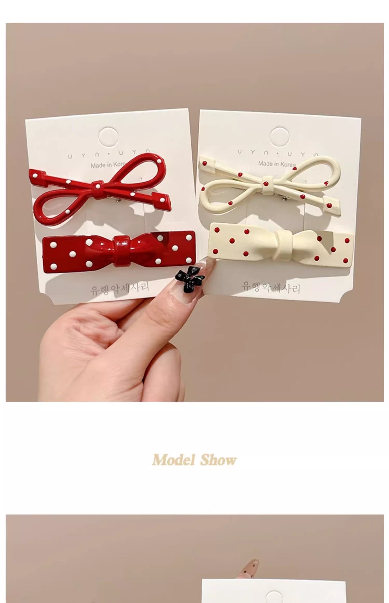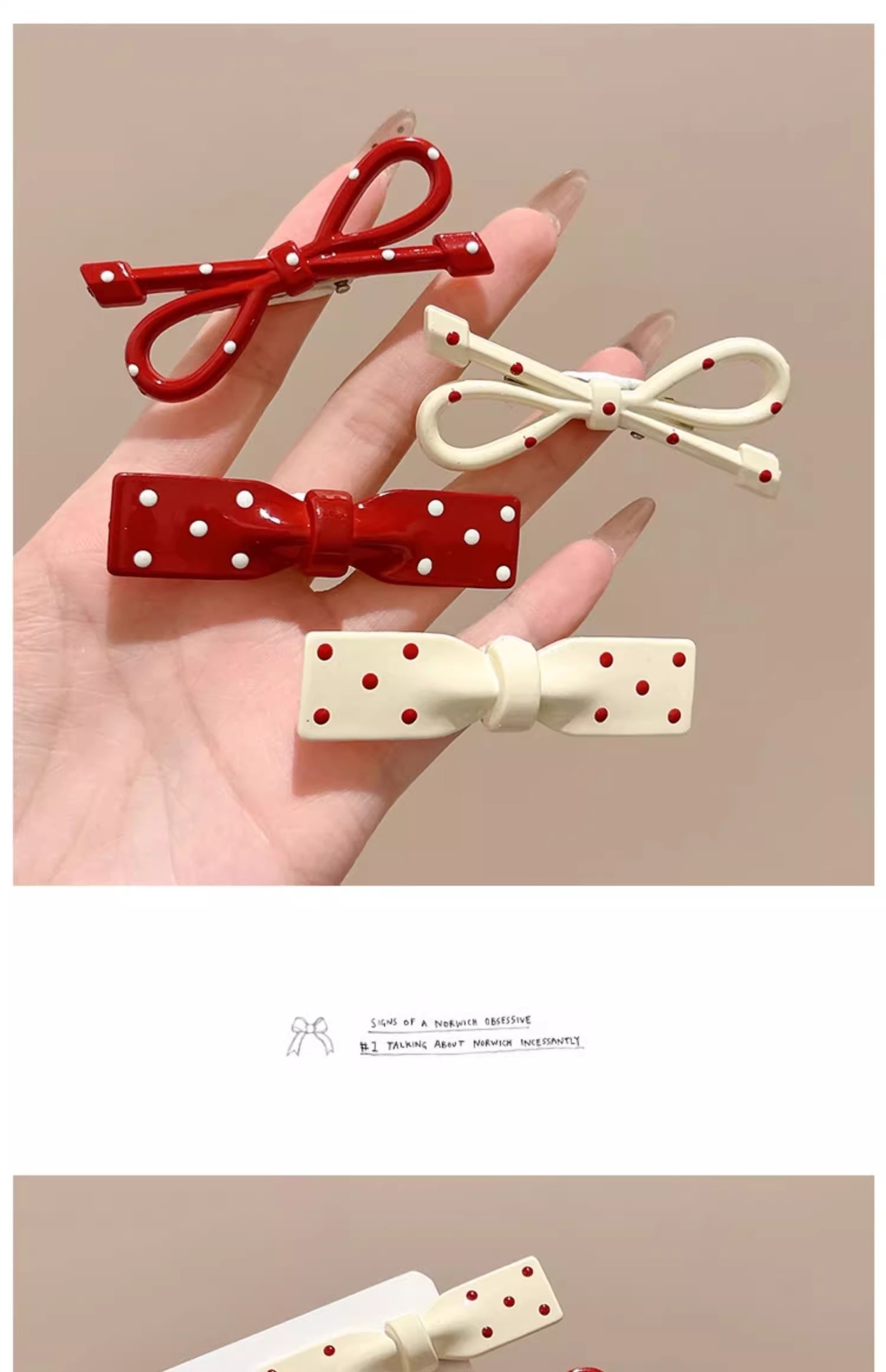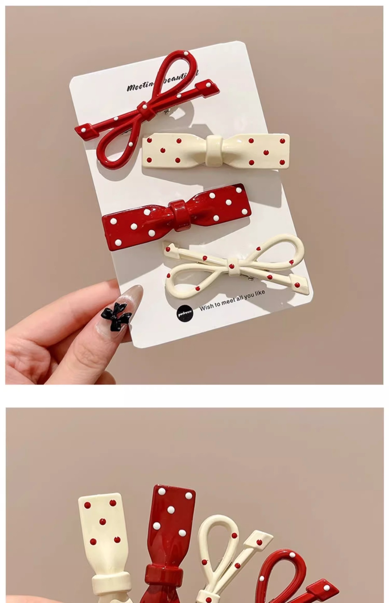 Ankora Red Wave Dot Bow 헤어핀 여성용 사이드 브로큰 헤어 뱅 클립 덕빌 클립 귀여운 한 단어 클립 클립 헤어핀스토어 가기