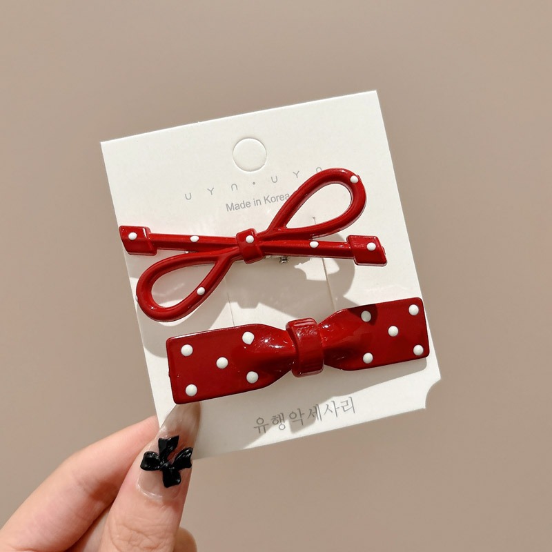 Ankora Red Wave Dot Bow 헤어핀 여성용 사이드 브로큰 헤어 뱅 클립 덕빌 클립 귀여운 한 단어 클립 클립 헤어핀