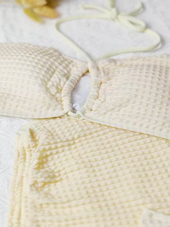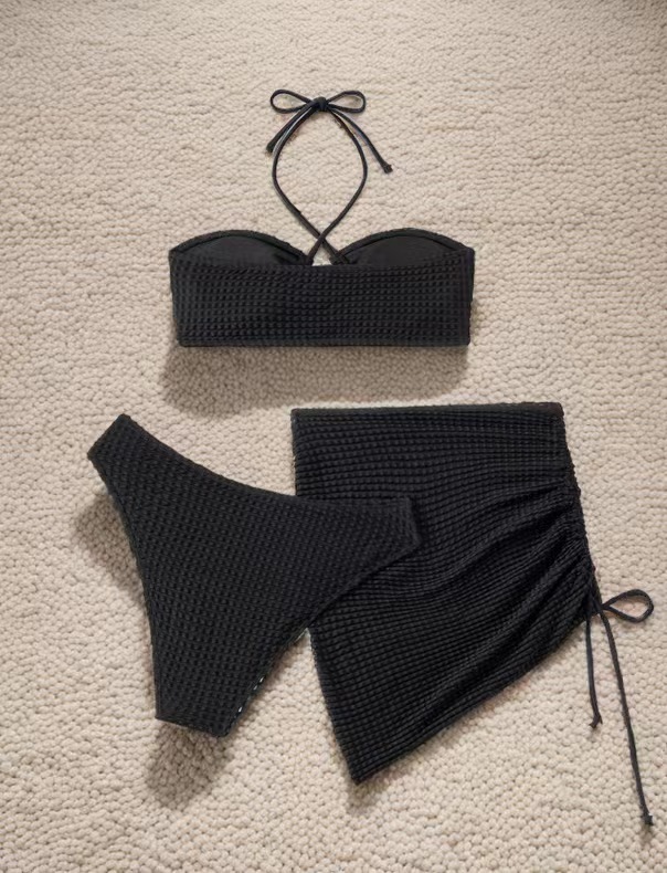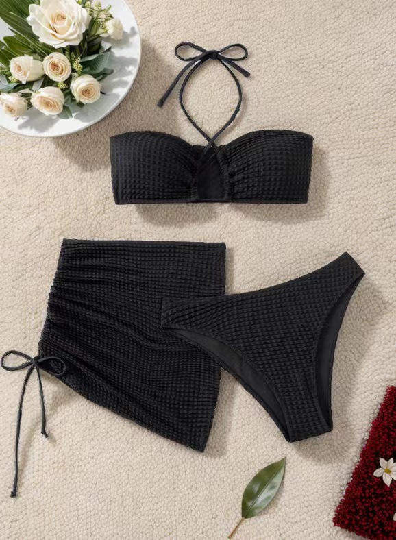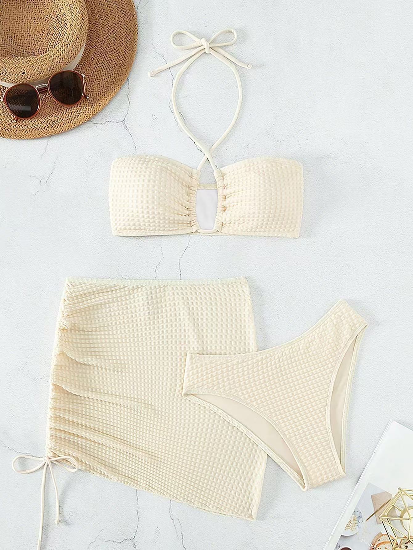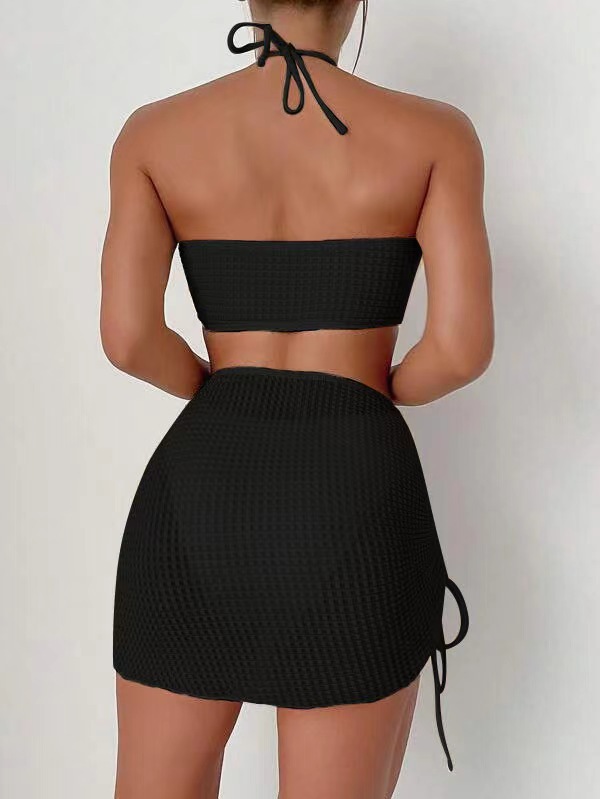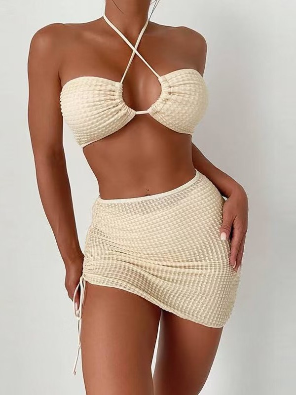 유럽과 미국의 국경 간 단색 새로운 스타일 홀터넥 섹시한 수영복 스커트 3피스 스플릿 비키니 수영복 러시아