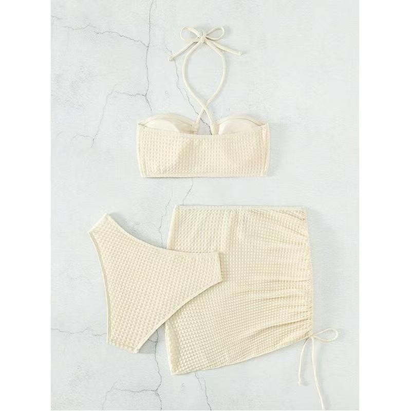 유럽과 미국의 국경 간 단색 새로운 스타일 홀터넥 섹시한 수영복 스커트 3피스 스플릿 비키니 수영복 러시아스토어 가기
