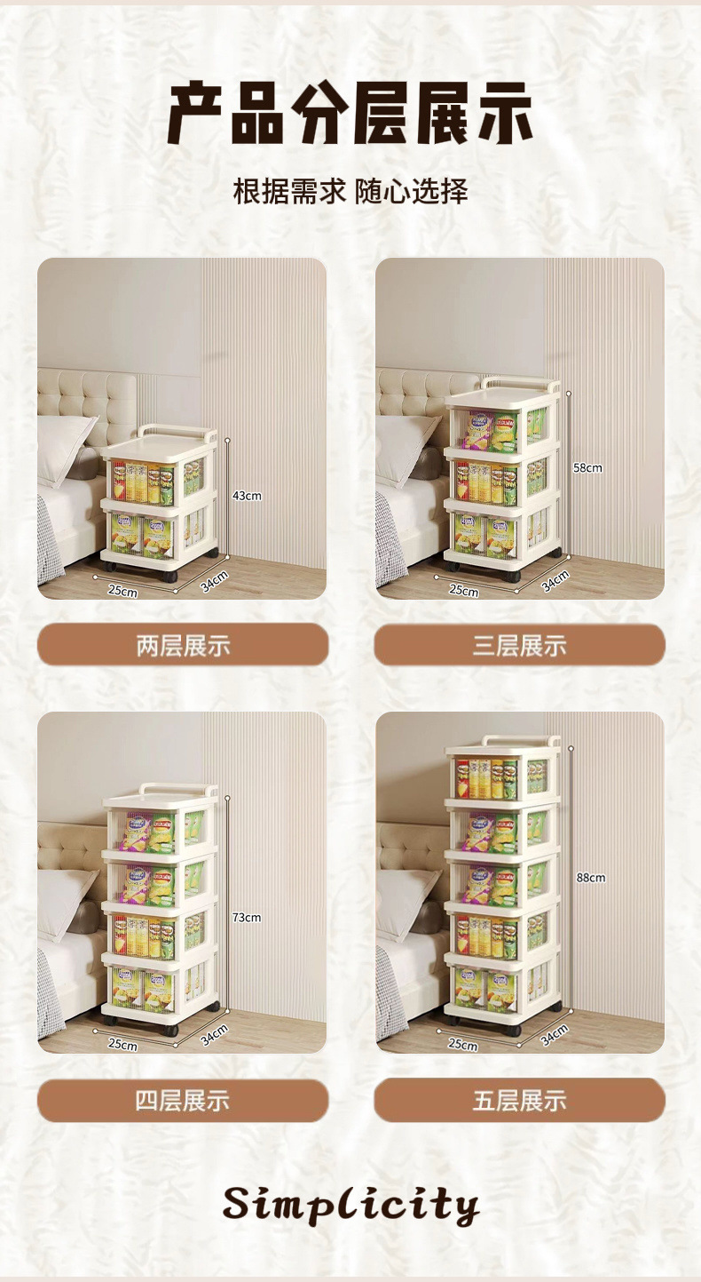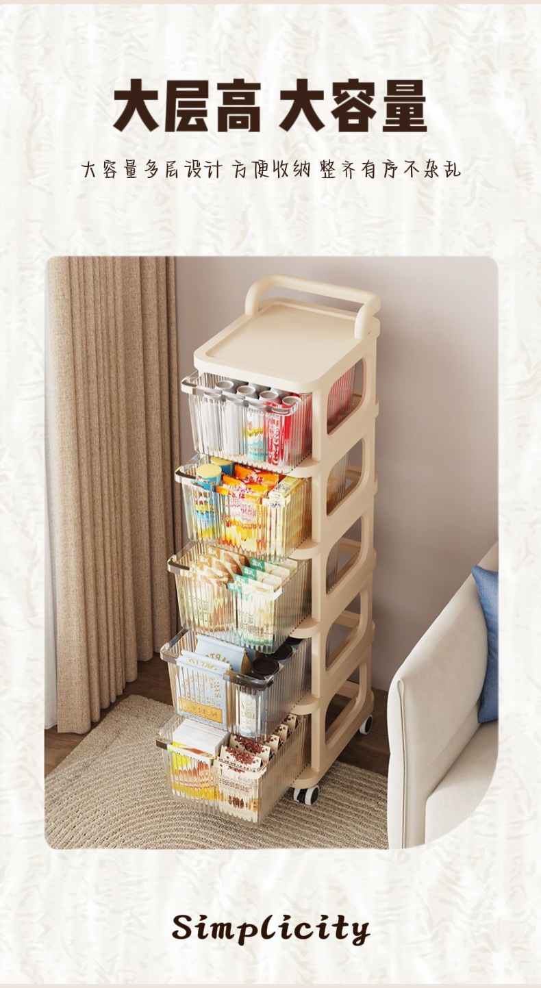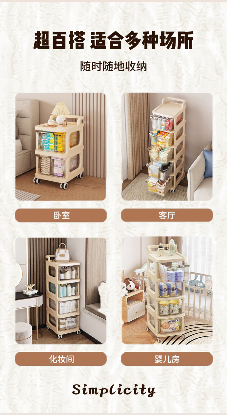 스낵 카트 보관 랙 아기 제품 저장 캐비닛 가정용 선반 거실 아기 장난감 보관 랙 바퀴