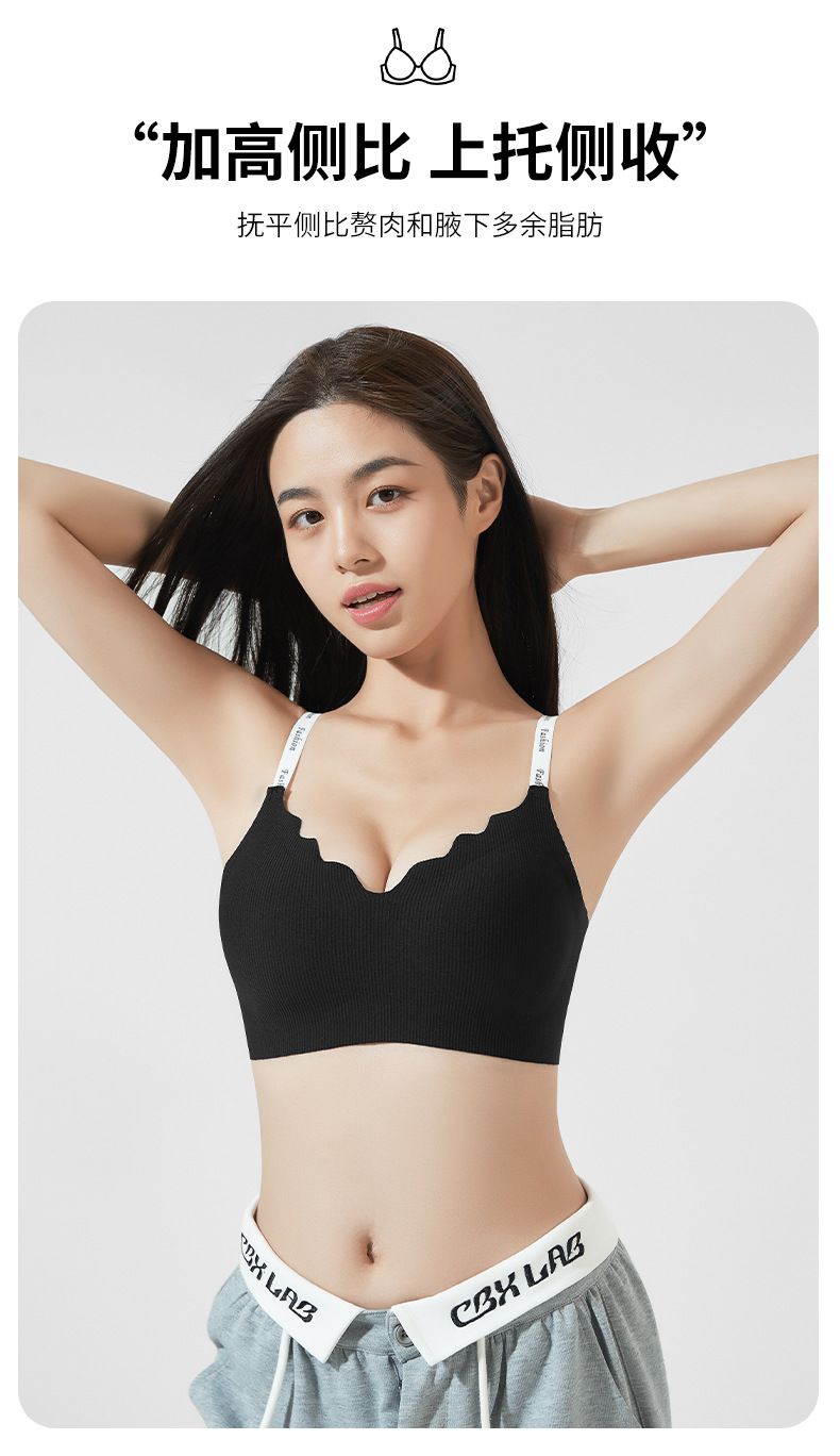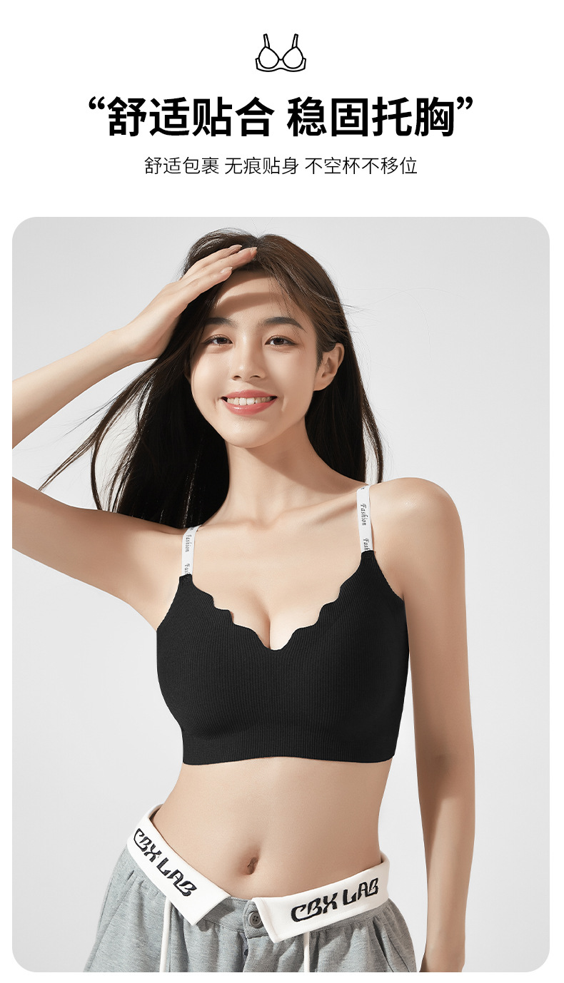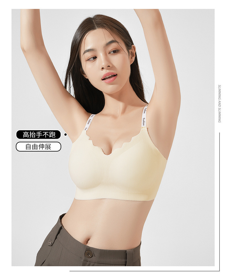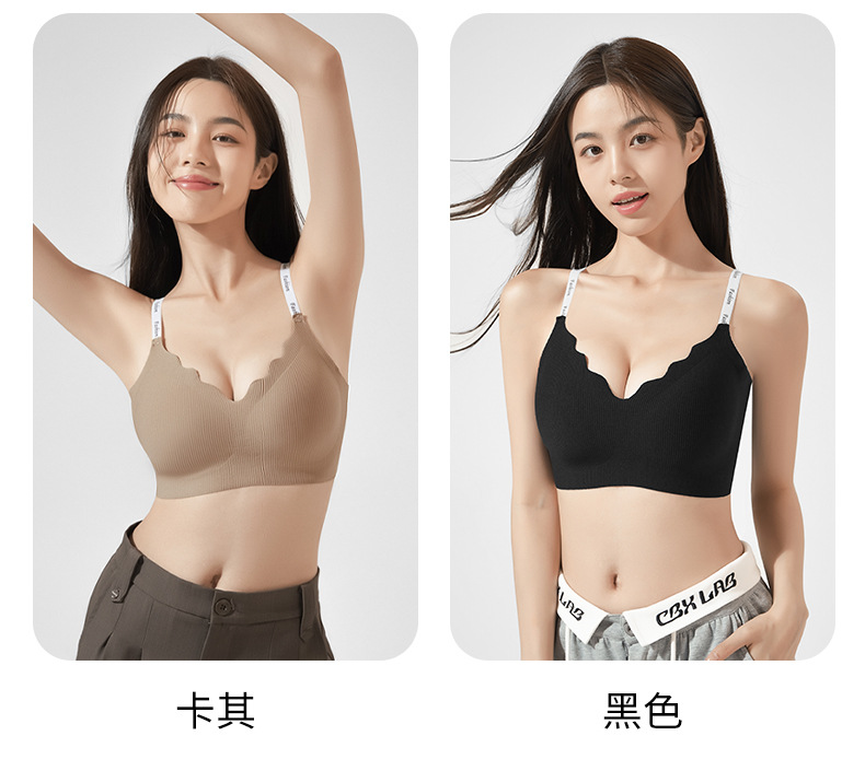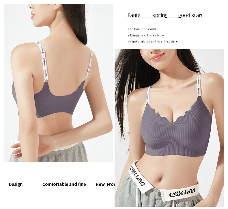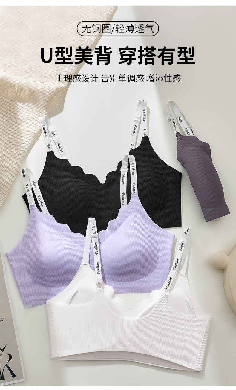 스틸 링 스포츠 U-백 스트랩 대비 컬러 작은 조끼 편지 어깨 끈 브래지어없이 모인 새로운 원활한 속옷 소녀스토어 가기