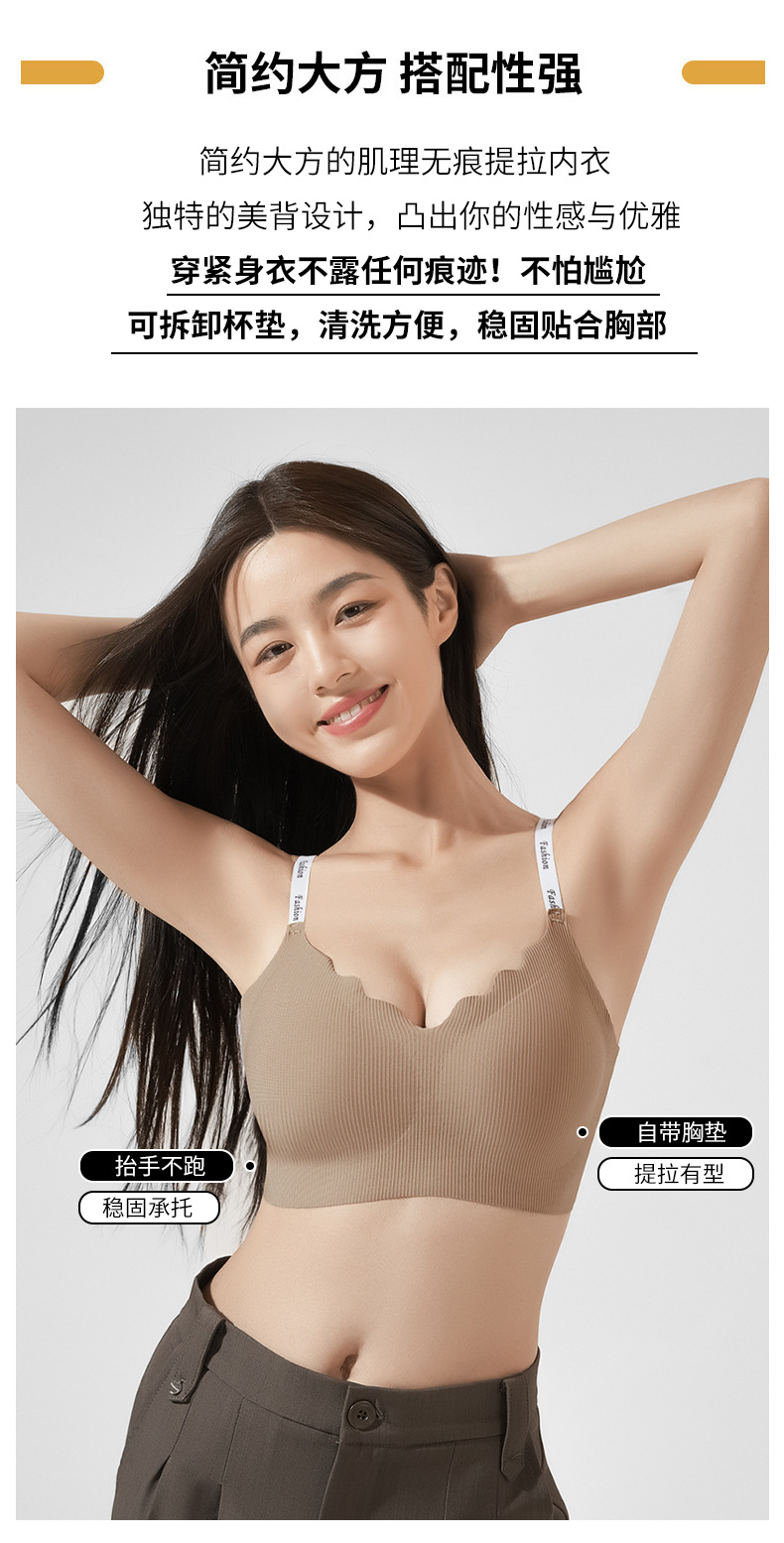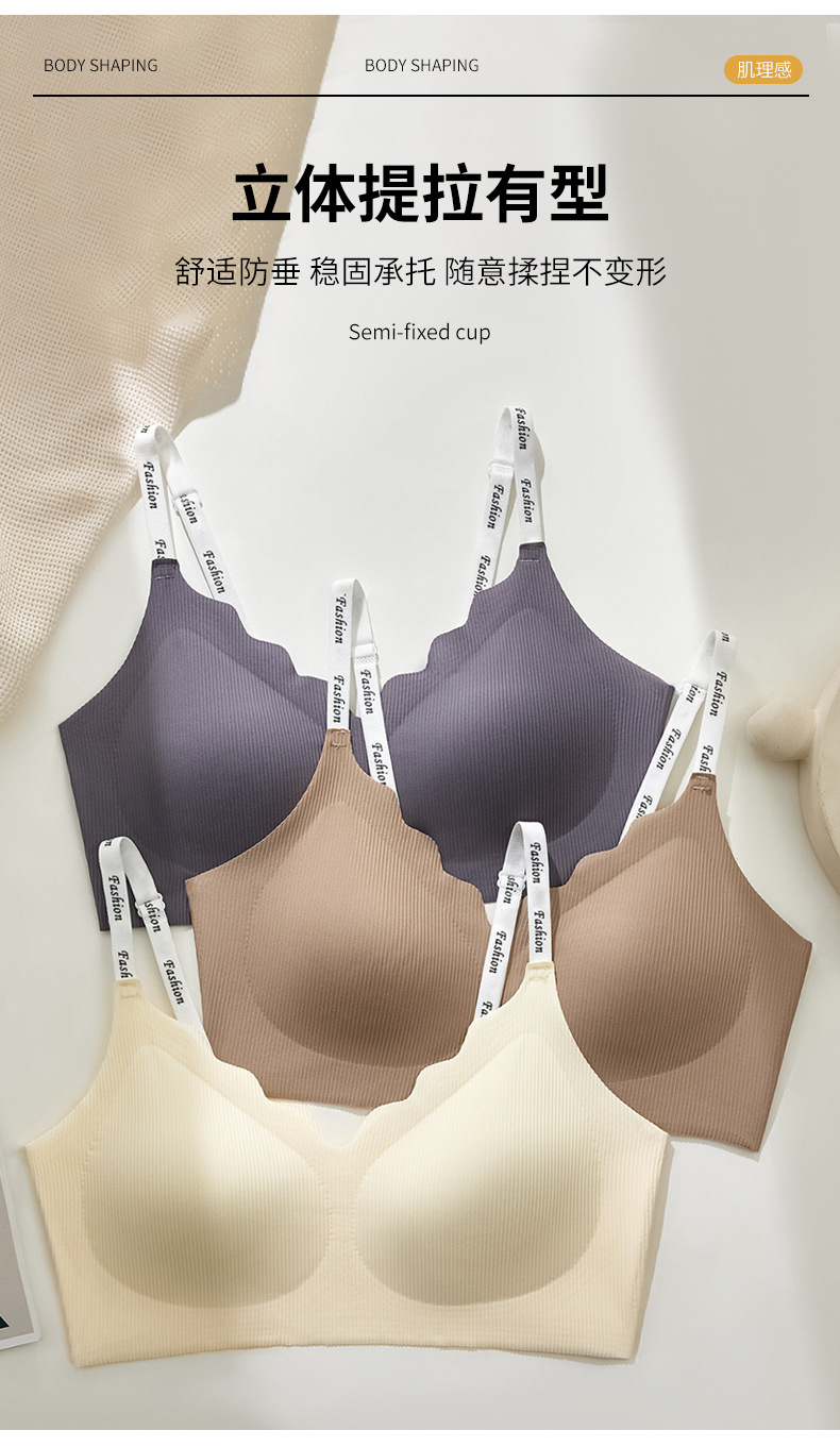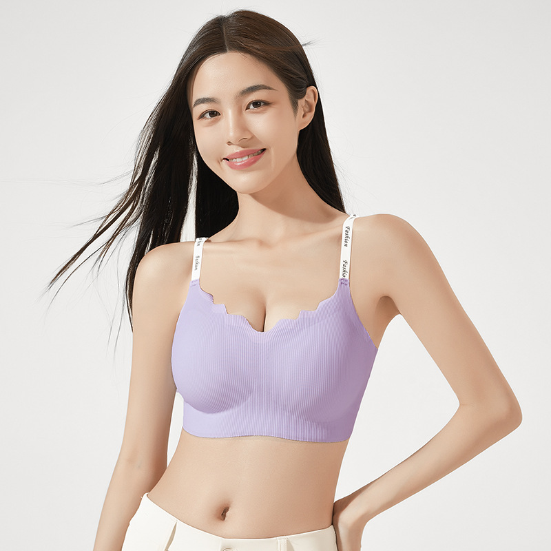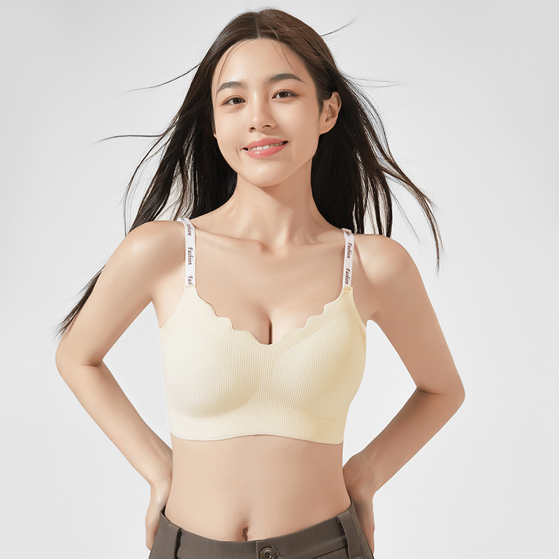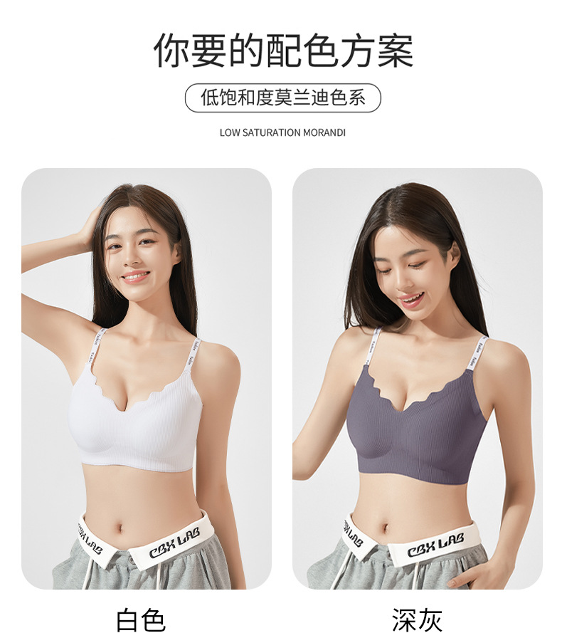 스틸 링 스포츠 U-백 스트랩 대비 컬러 작은 조끼 편지 어깨 끈 브래지어없이 모인 새로운 원활한 속옷 소녀스토어 가기