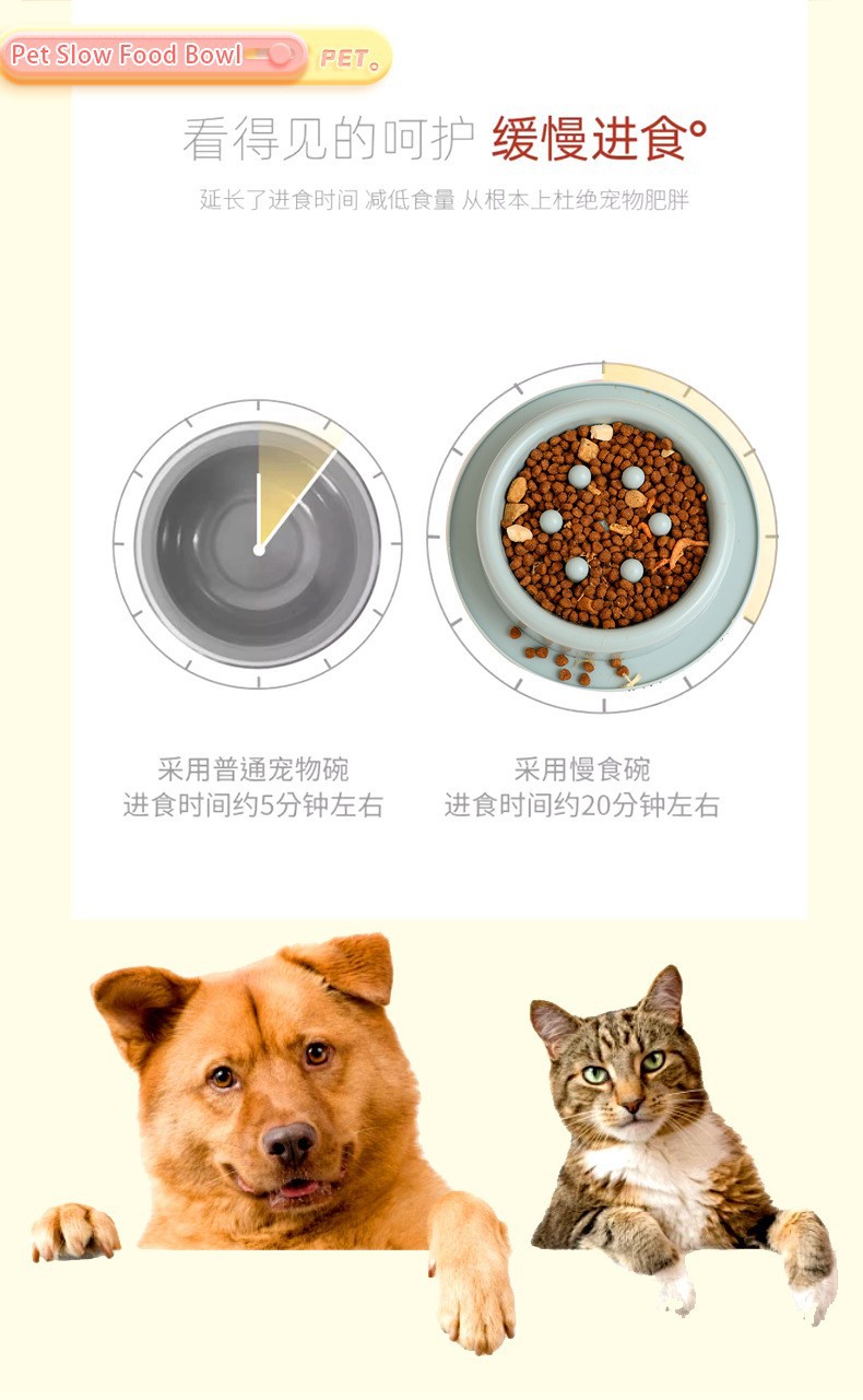 애완 동물 느린 음식 그릇 안티 질식 사발 고양이 사발 개 그릇 안티 노크 슬로우 푸드 보울 피더 애완 동물 용품 도매 대외 무역스토어 가기