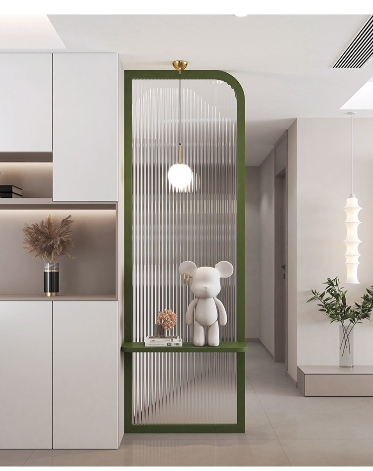 프랑스 크림 스타일 거실 입구 스크린 입구 욕실 캐비닛 아크 라이트 럭셔리 물 골판지 유리 파티션