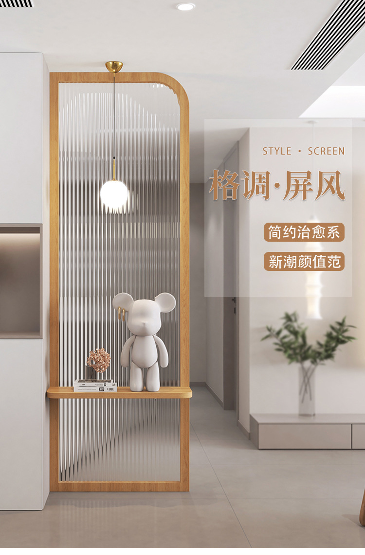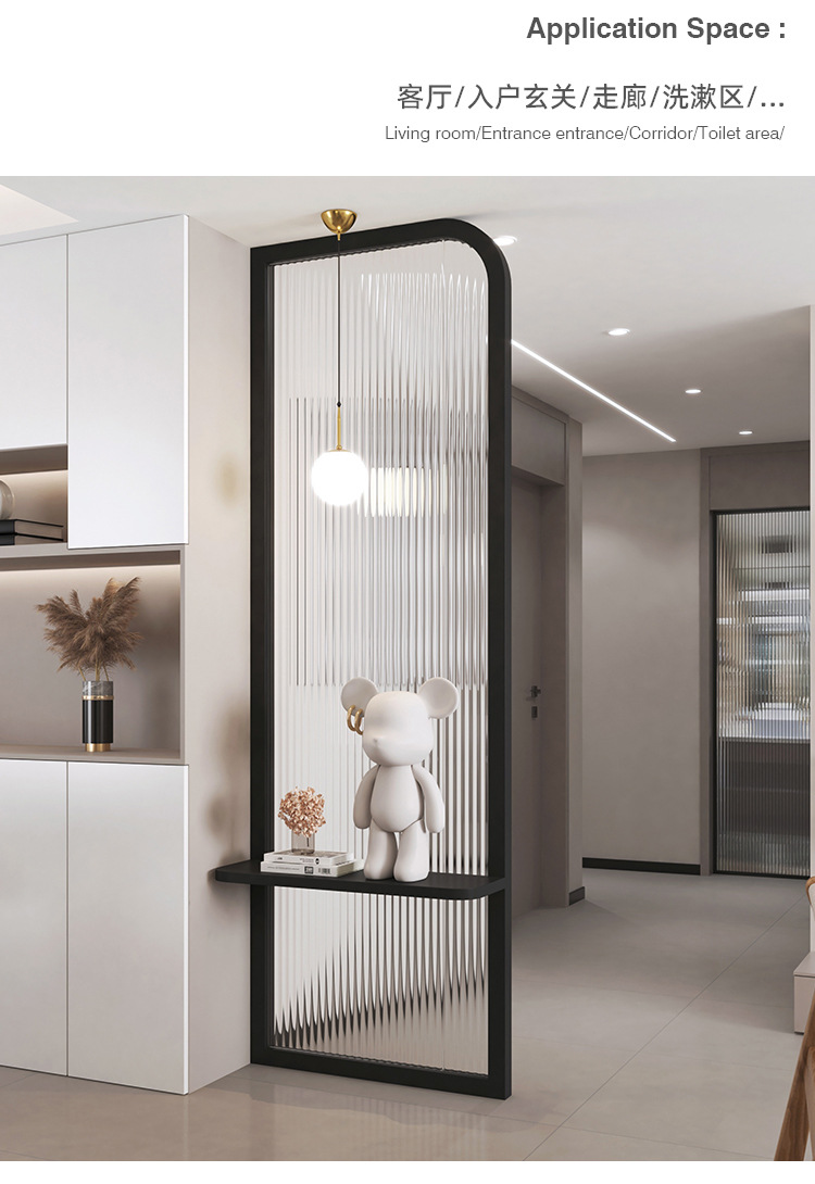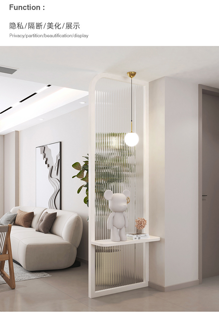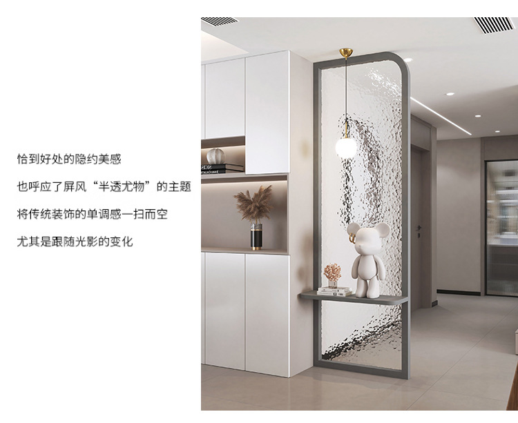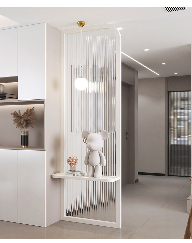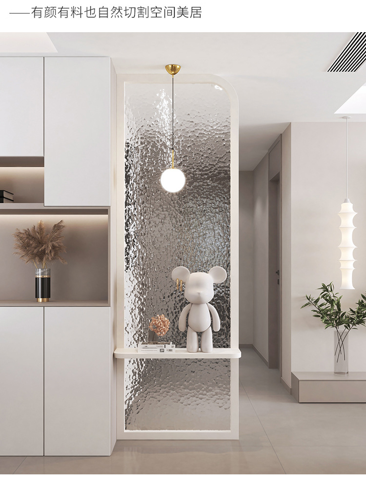 프랑스 크림 스타일 거실 입구 스크린 입구 욕실 캐비닛 아크 라이트 럭셔리 물 골판지 유리 파티션스토어 가기