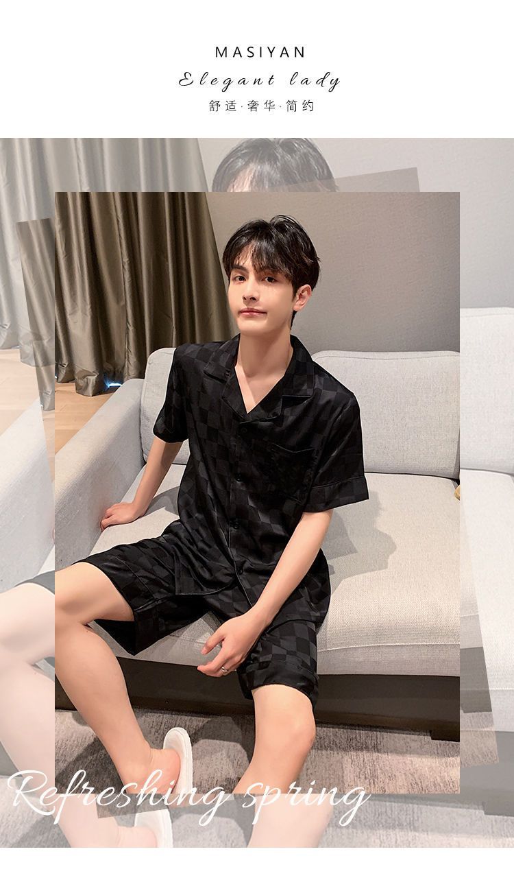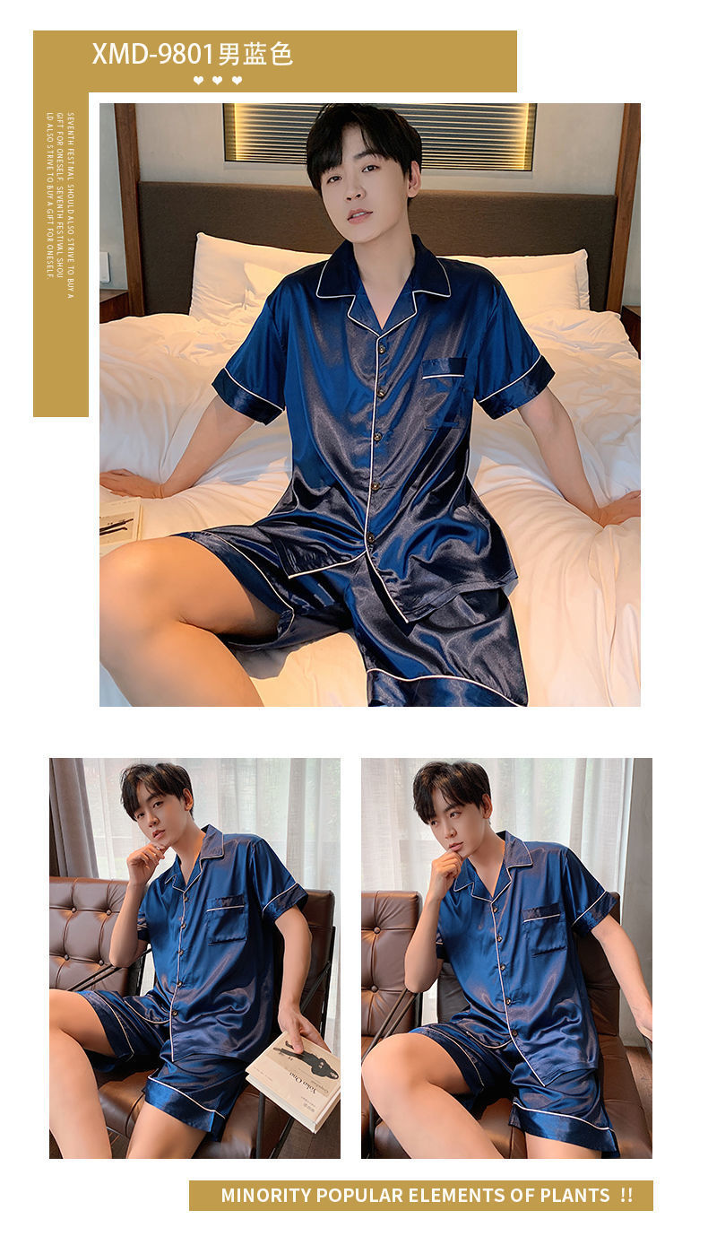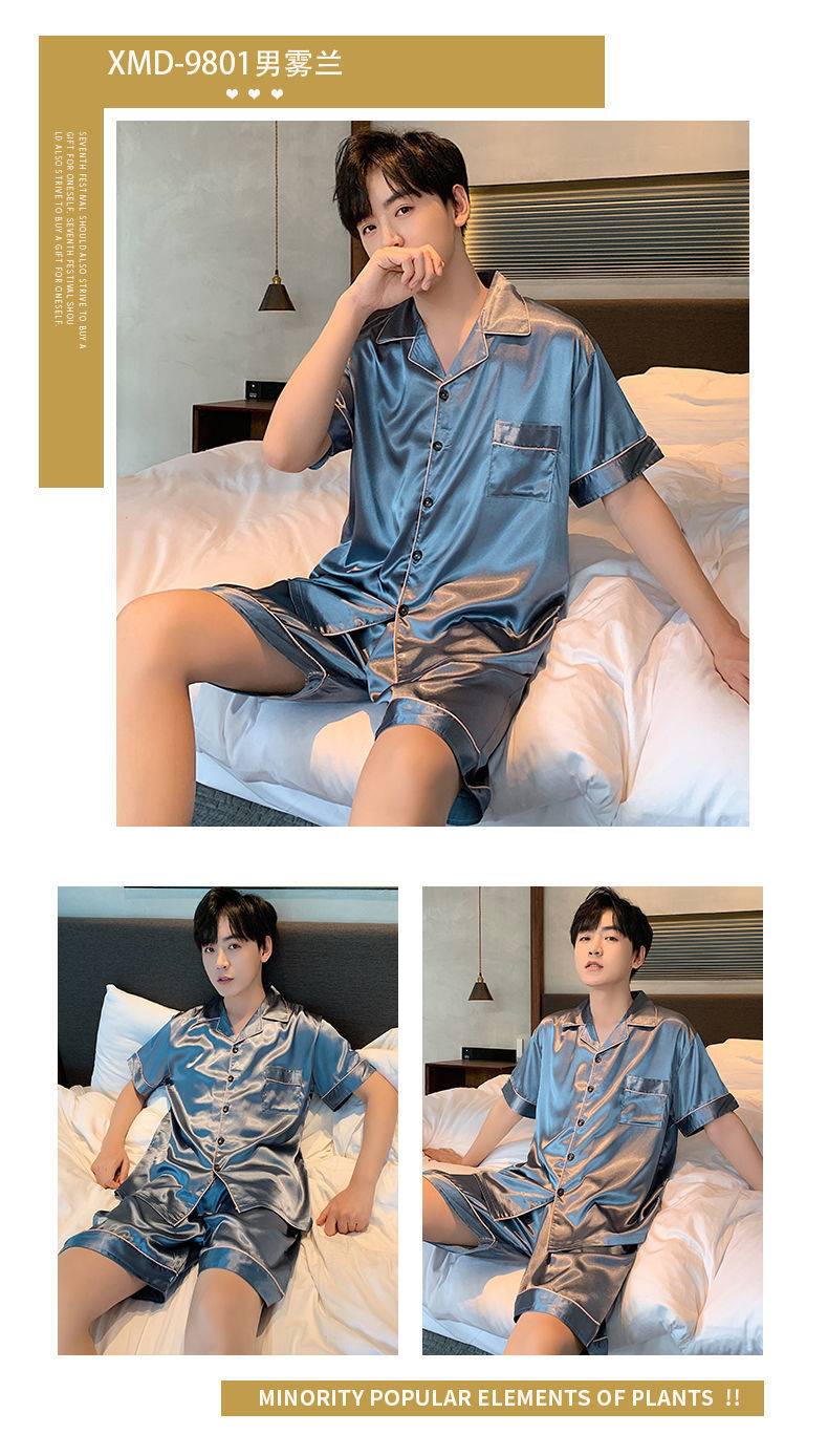 플러스 사이즈 잠옷 남자 여름 아이스 실크 얇은 반팔 반바지 여름 럭셔리 한국 캐주얼 홈 의류 세트