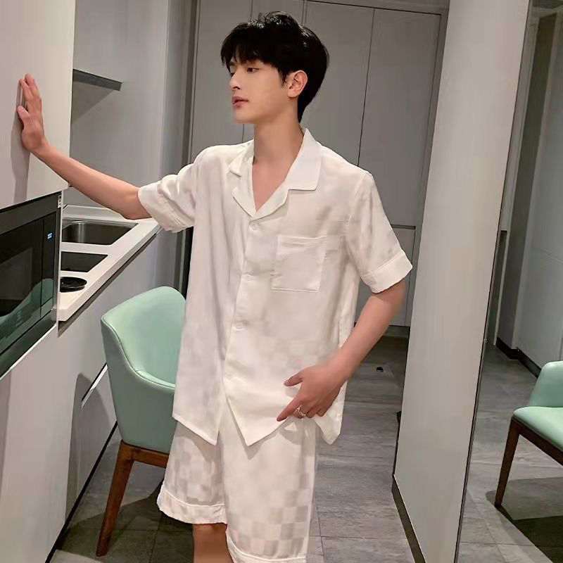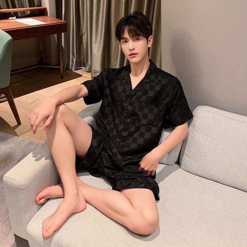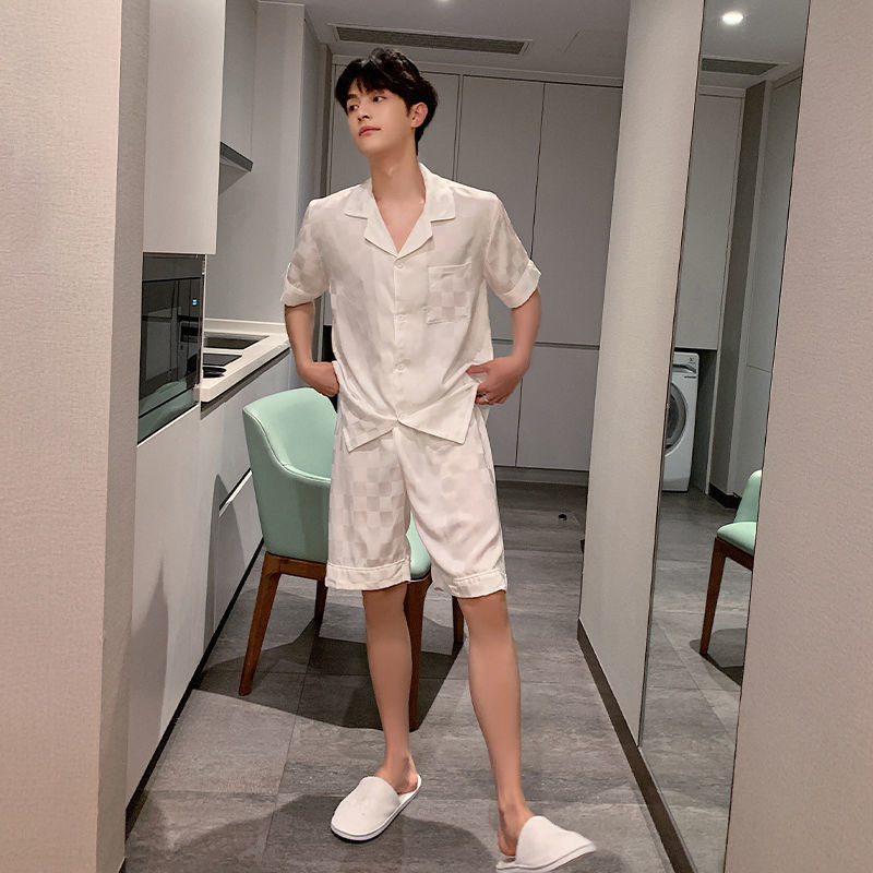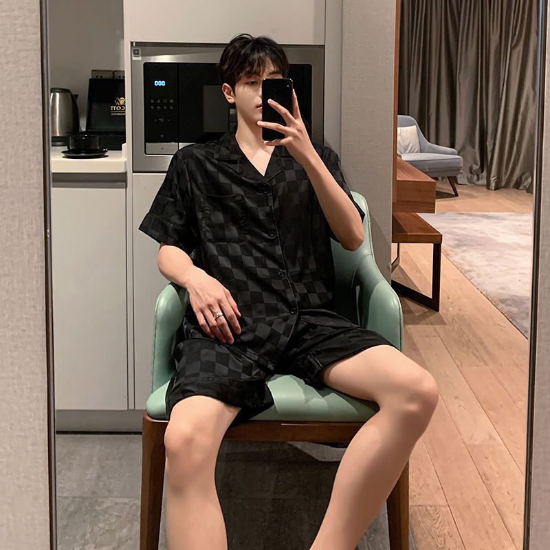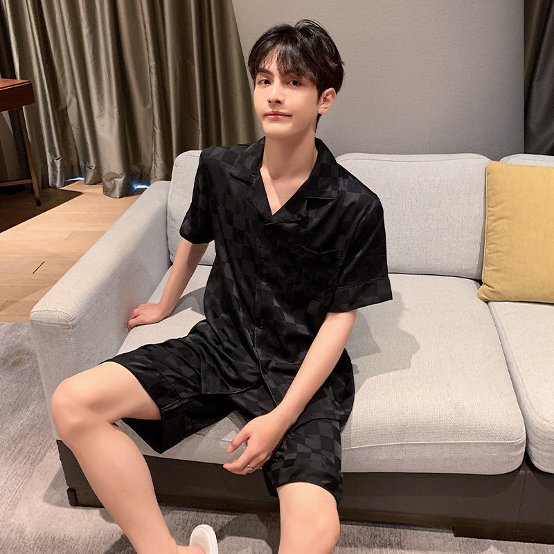 플러스 사이즈 잠옷 남자 여름 아이스 실크 얇은 반팔 반바지 여름 럭셔리 한국 캐주얼 홈 의류 세트