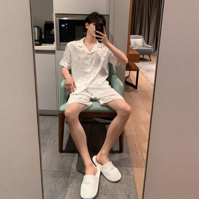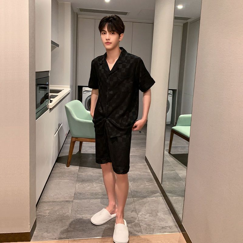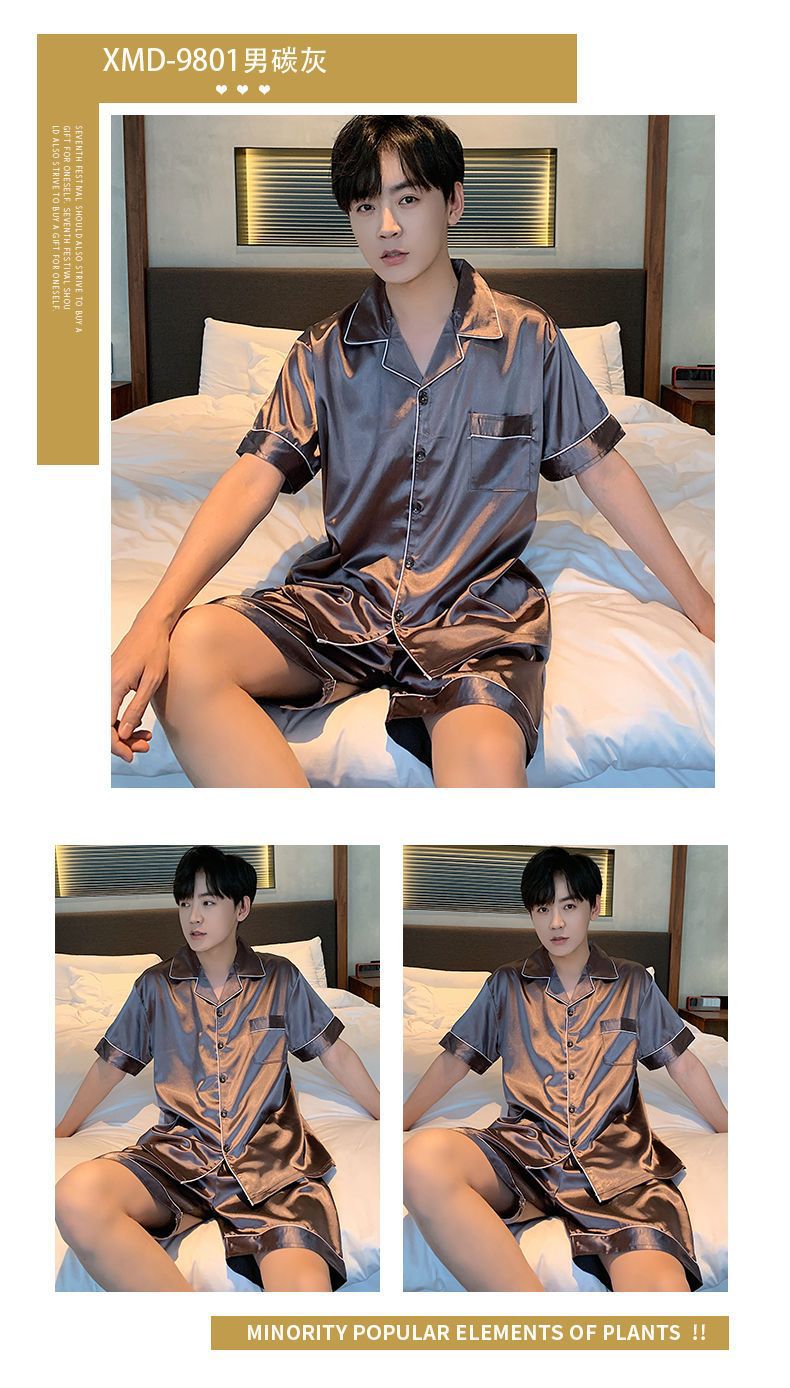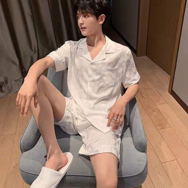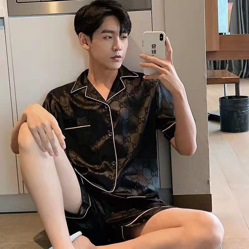 플러스 사이즈 잠옷 남자 여름 아이스 실크 얇은 반팔 반바지 여름 럭셔리 한국 캐주얼 홈 의류 세트스토어 가기