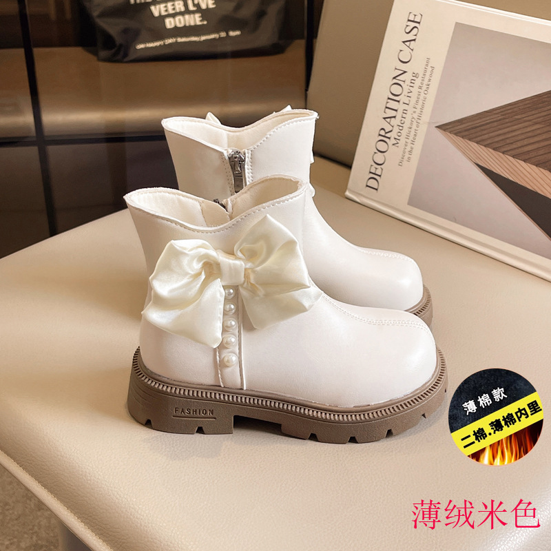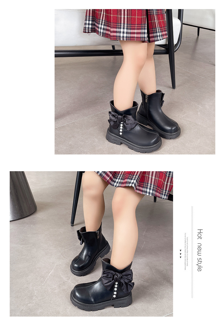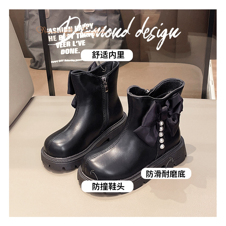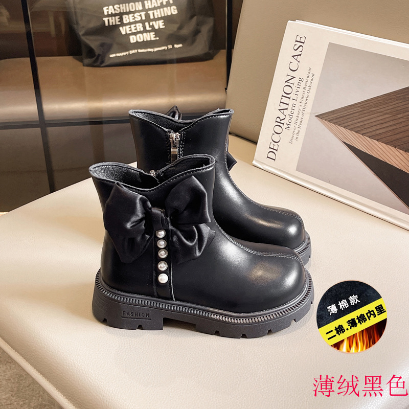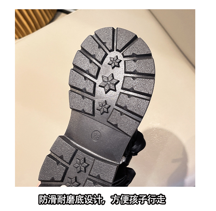 여자 신발 어린이 마틴 발목 부츠 기모 코튼 가죽 부츠 서양식 가을과 겨울 2024 새로운 공주 겨울