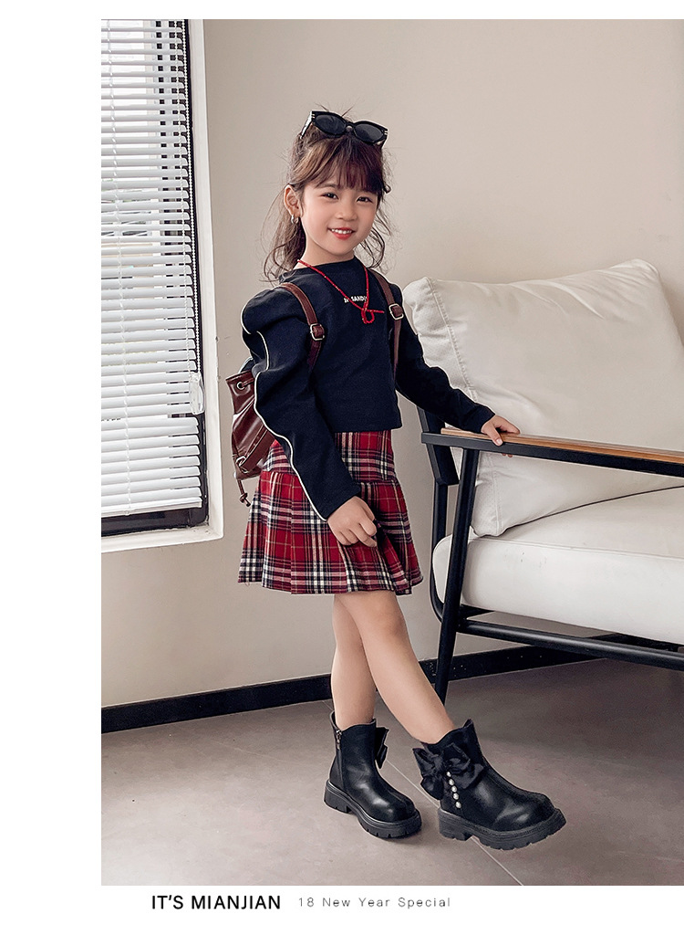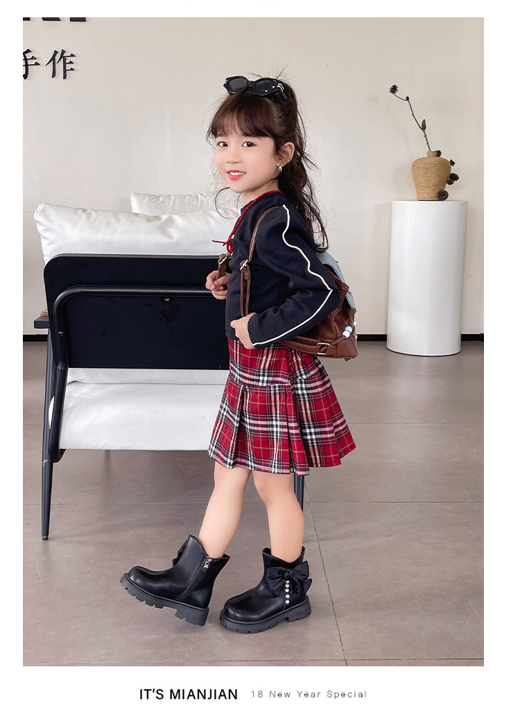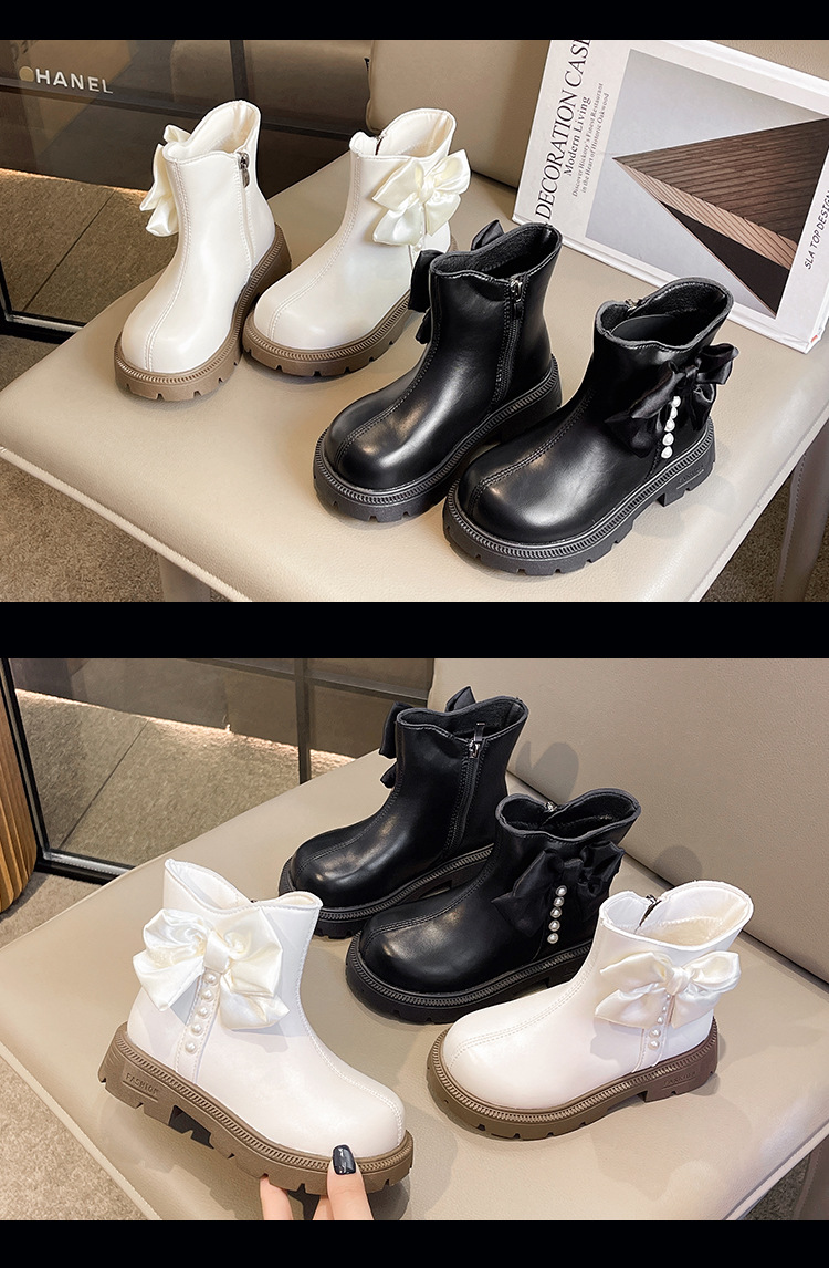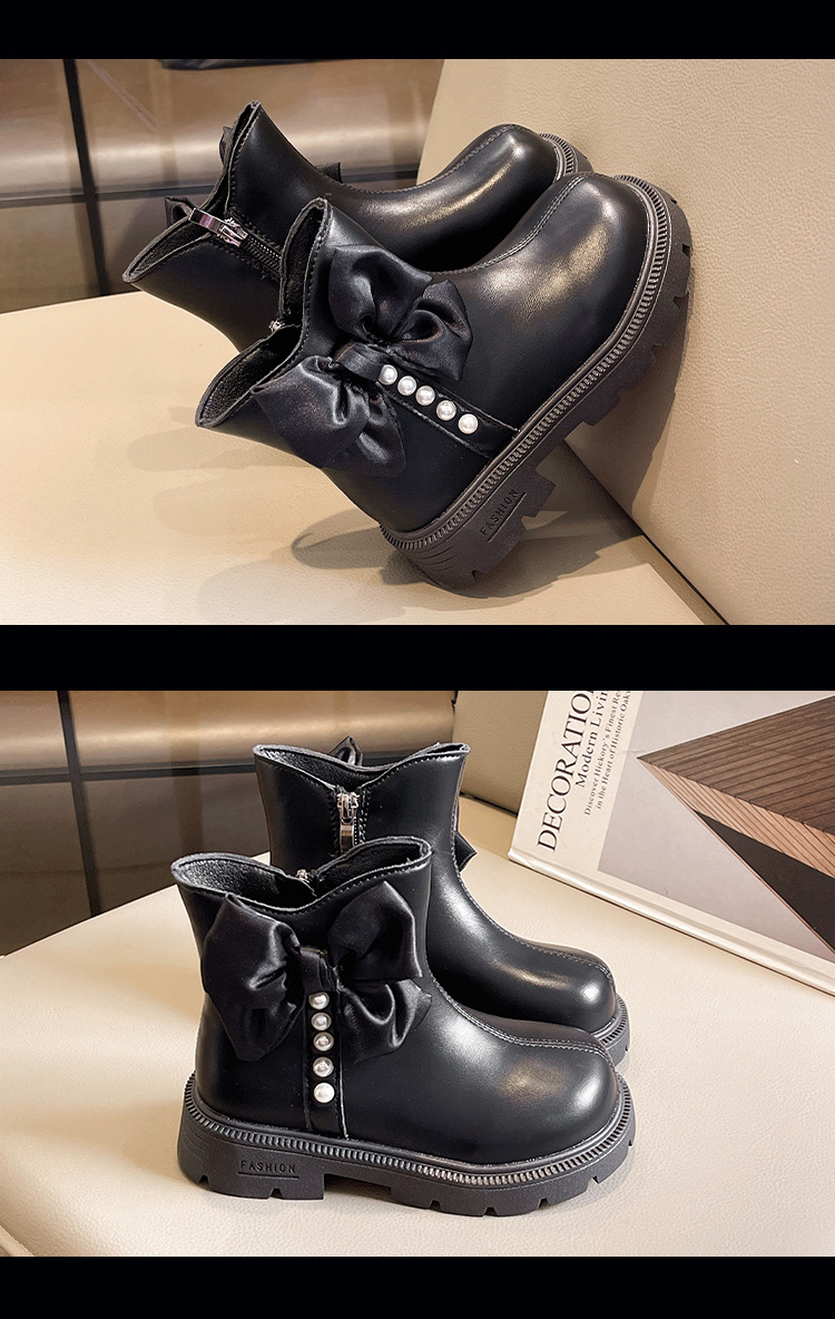 여자 신발 어린이 마틴 발목 부츠 기모 코튼 가죽 부츠 서양식 가을과 겨울 2024 새로운 공주 겨울