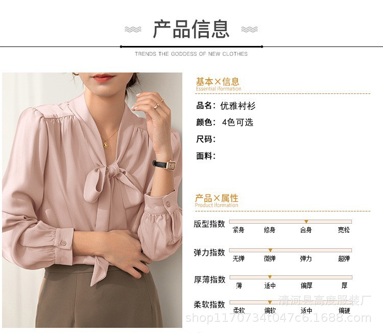 프랑스 스타일 여성용 리본 새틴 긴팔 셔츠 여성용 봄 스타일 틈새 통근 전문 기질 리본 탑