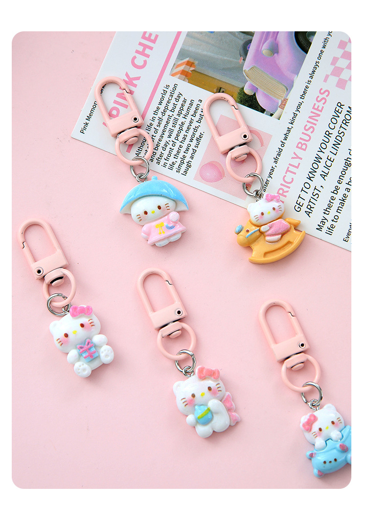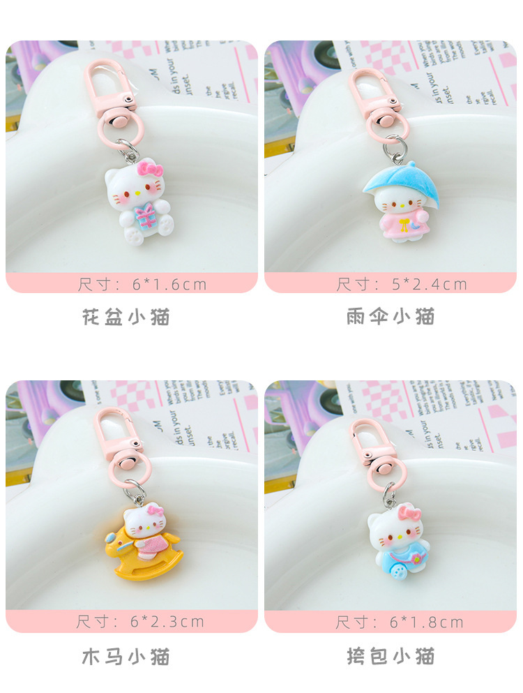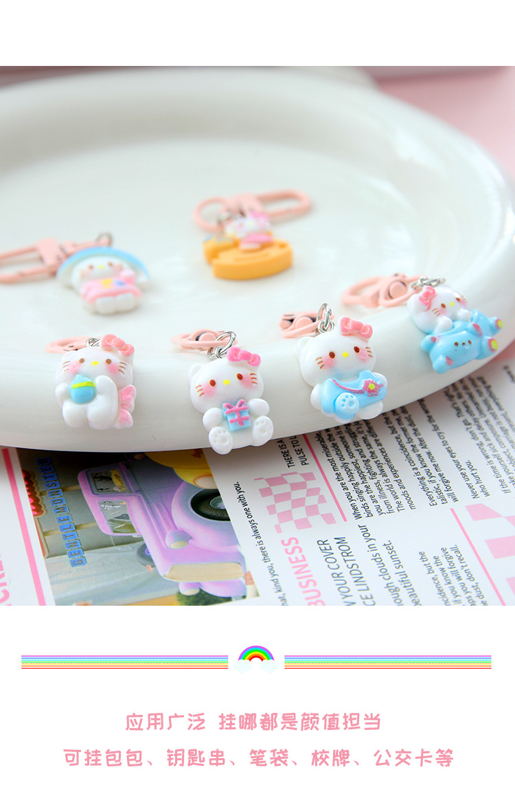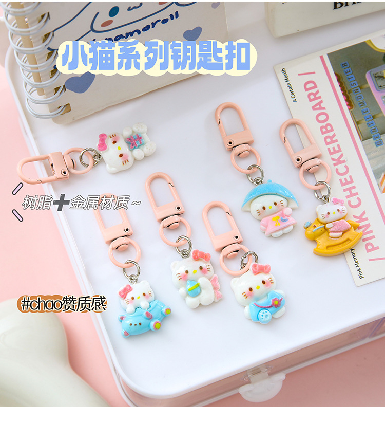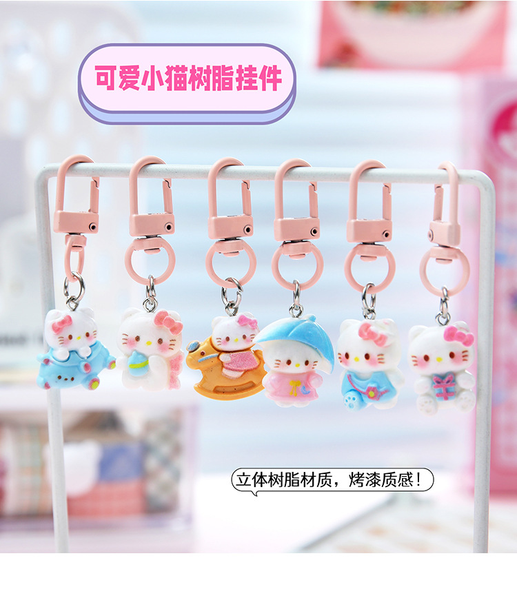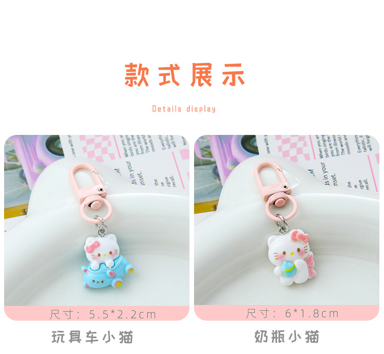 새로운 변종 KT 고양이 키 체인 귀여운 만화 수지 펜던트 백 교수형 작은 선물 커플 키 체인스토어 가기